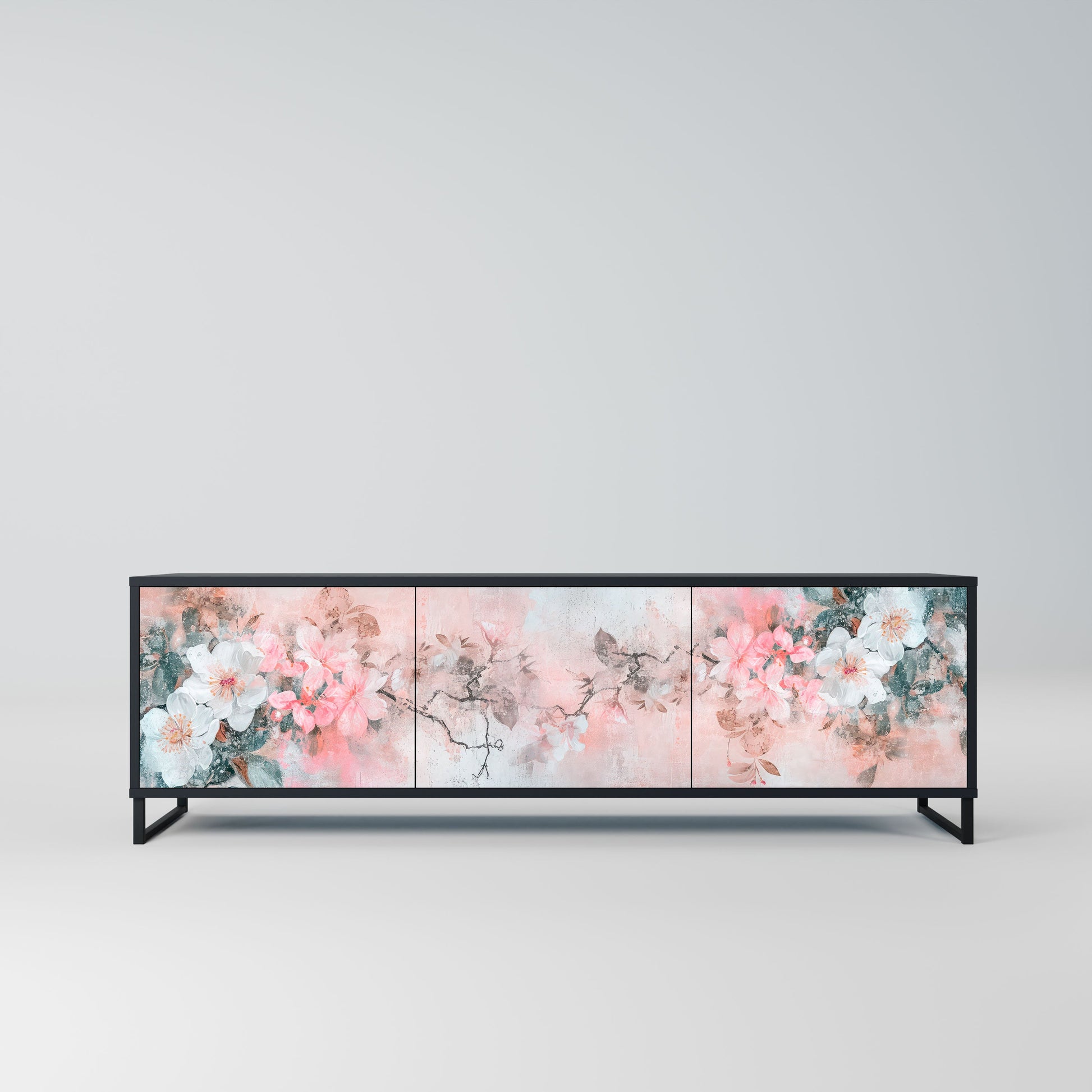 CHERRY BLOSSOM 3-Door TV Stand in Black Finish