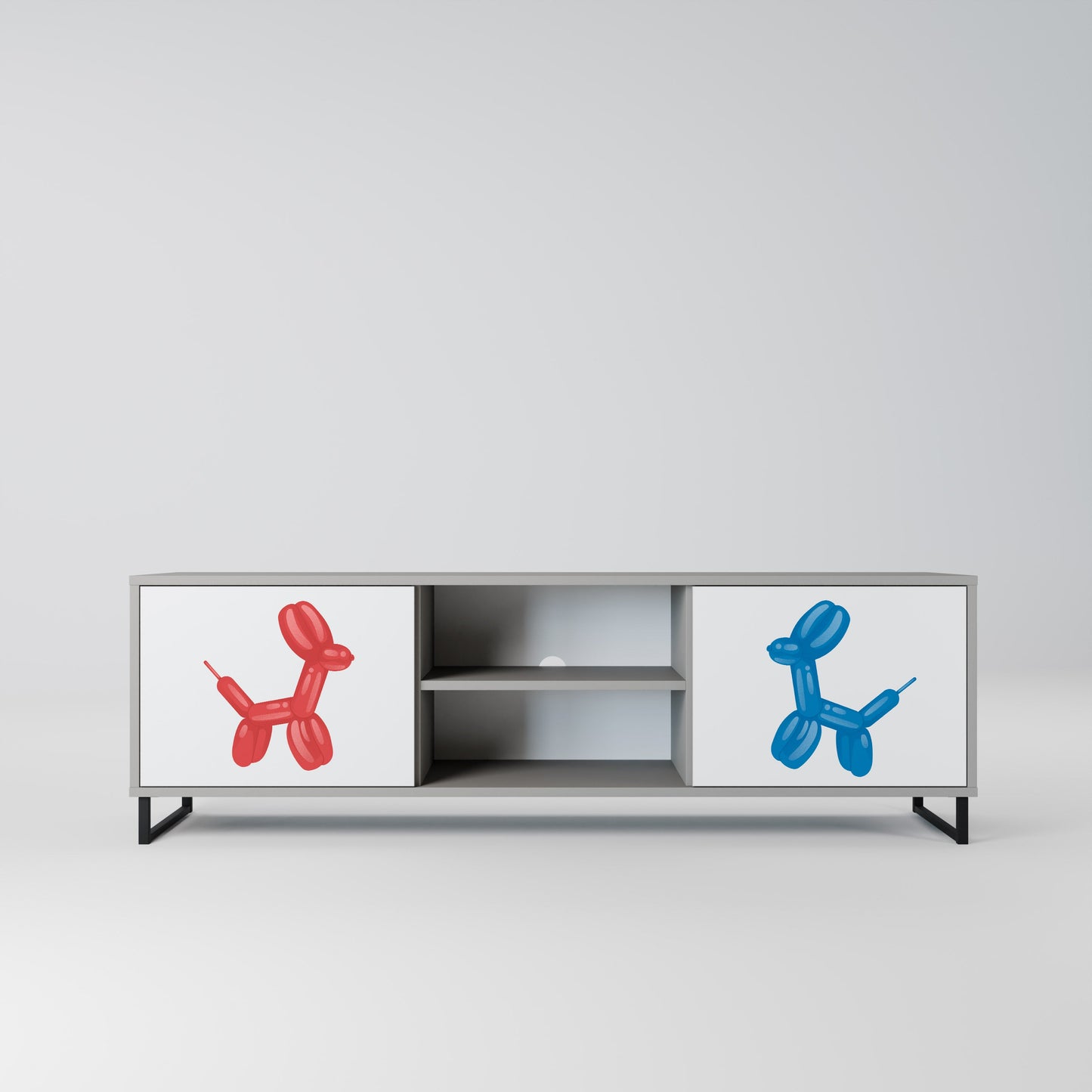 Minimalist design and functionality in one – our 2-door TV stand with a grey body is the perfect solution for fans of modern and industrial interiors alike. Its compact size and unique design make it an ideal choice for the living room, offering stylish and practical storage.