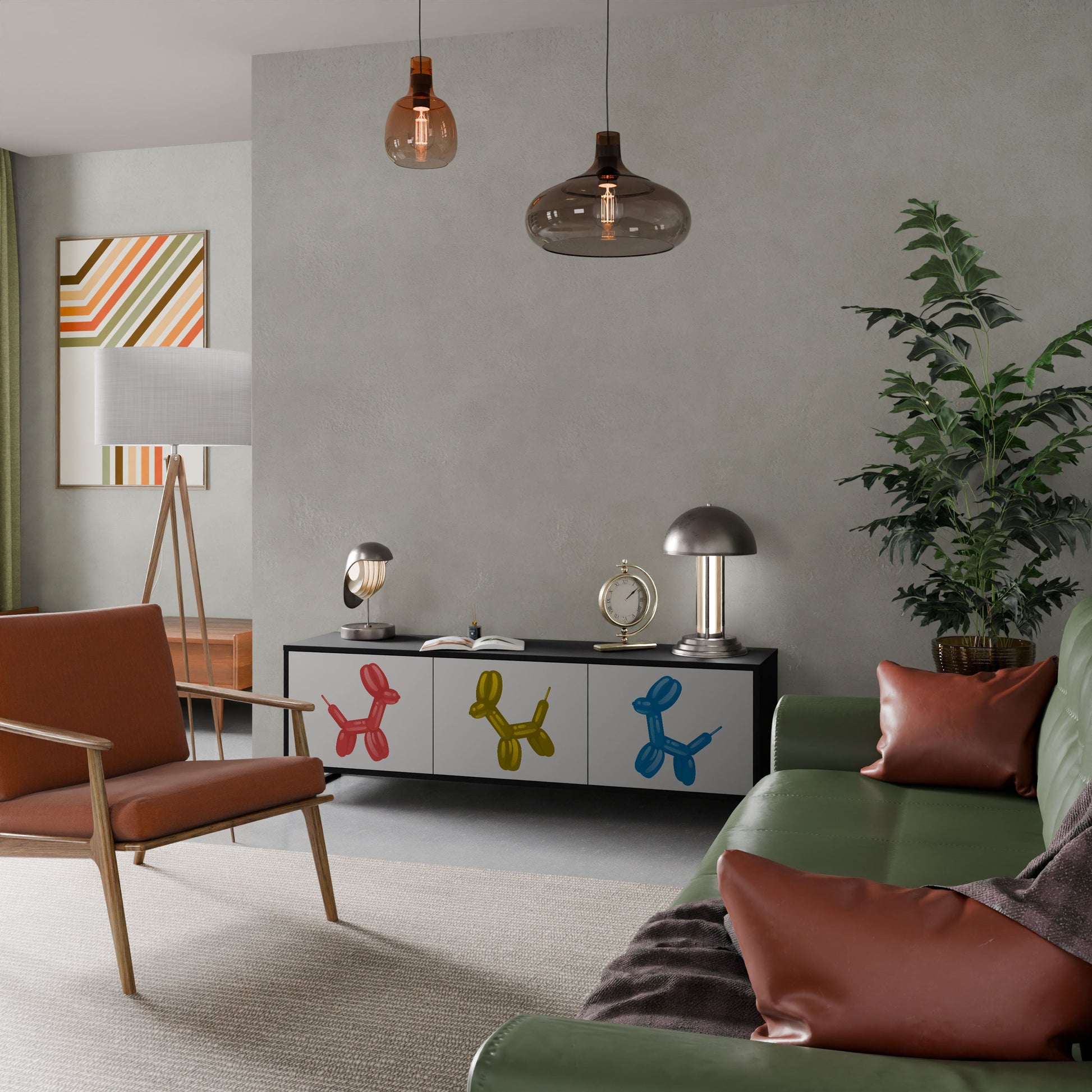 The black body of the stand creates a bold, modern accent that pairs beautifully with industrial and minimalist arrangements. The fronts with a designer print add character and uniqueness, making this piece not only practical but also a standout decorative element.