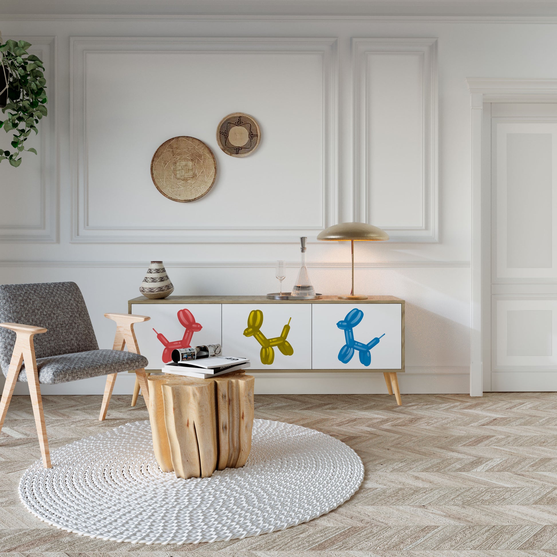 Discover the perfect solution for storage and organization with our 3-door TV stand. Crafted from durable materials, combining wooden legs with a laminated body, this cabinet is both stylish and functional. The wooden doors with an attractive print add a touch of elegance, making it an excellent choice for any interior.