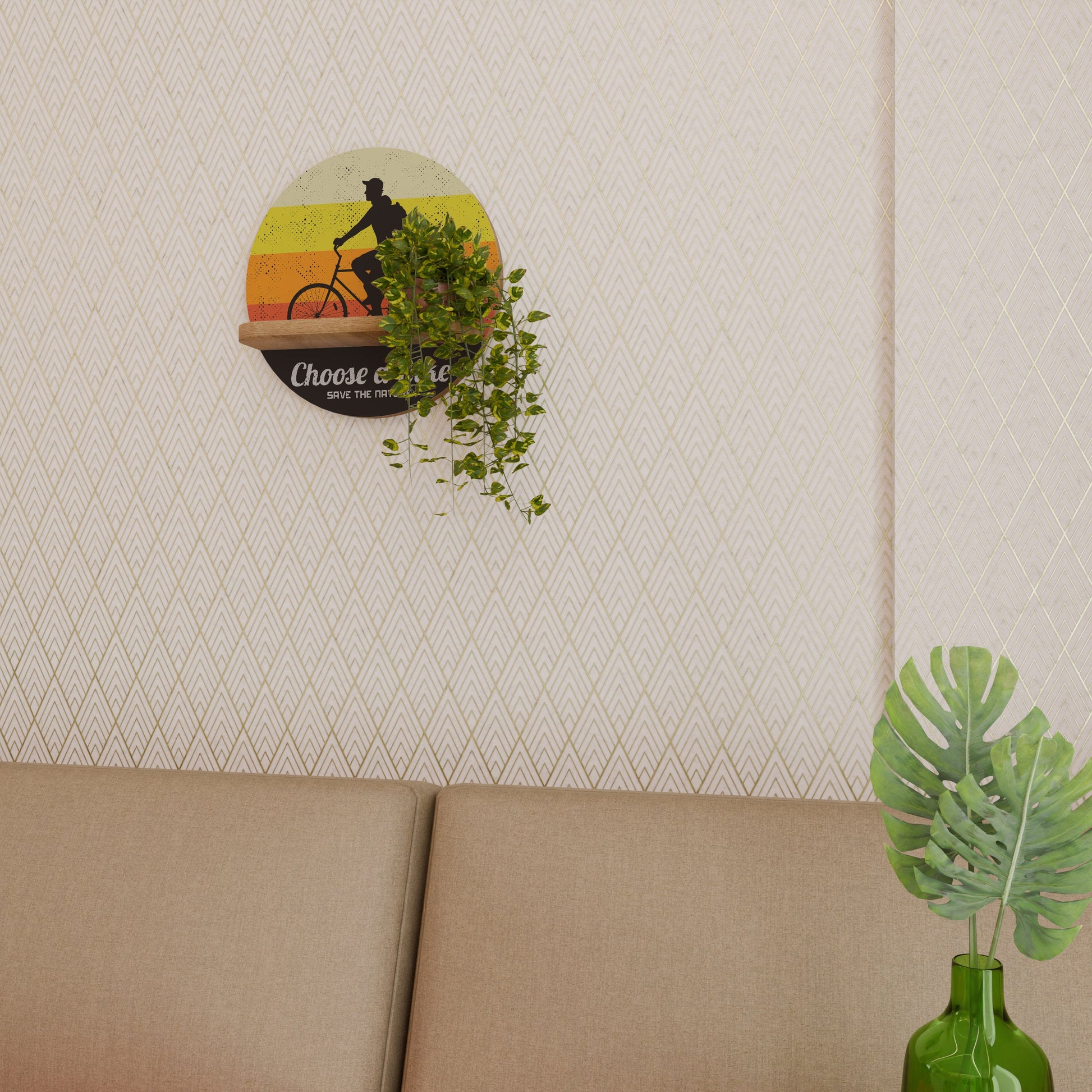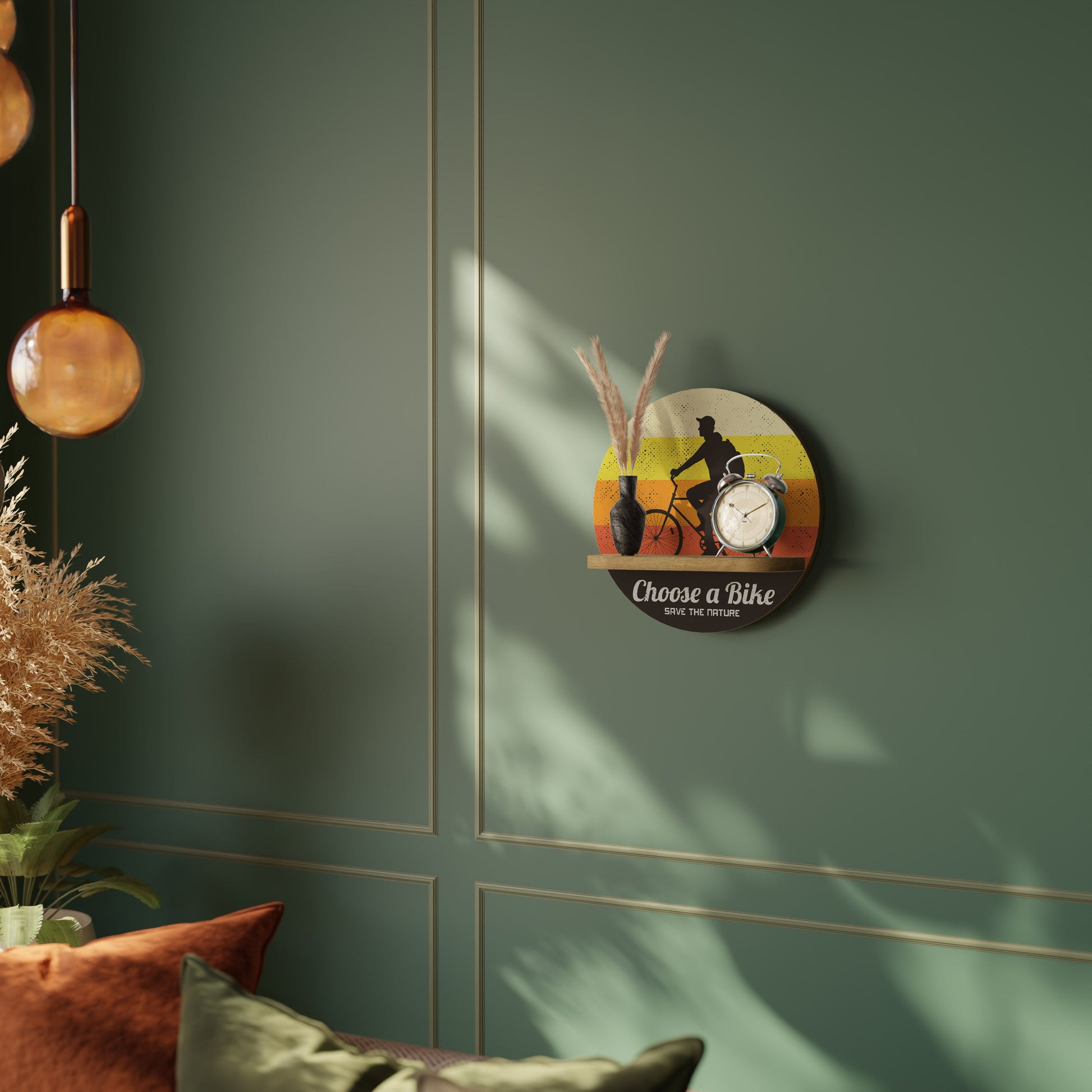 CHOOSE A BIKE Round Art Shelf In Oak Effect