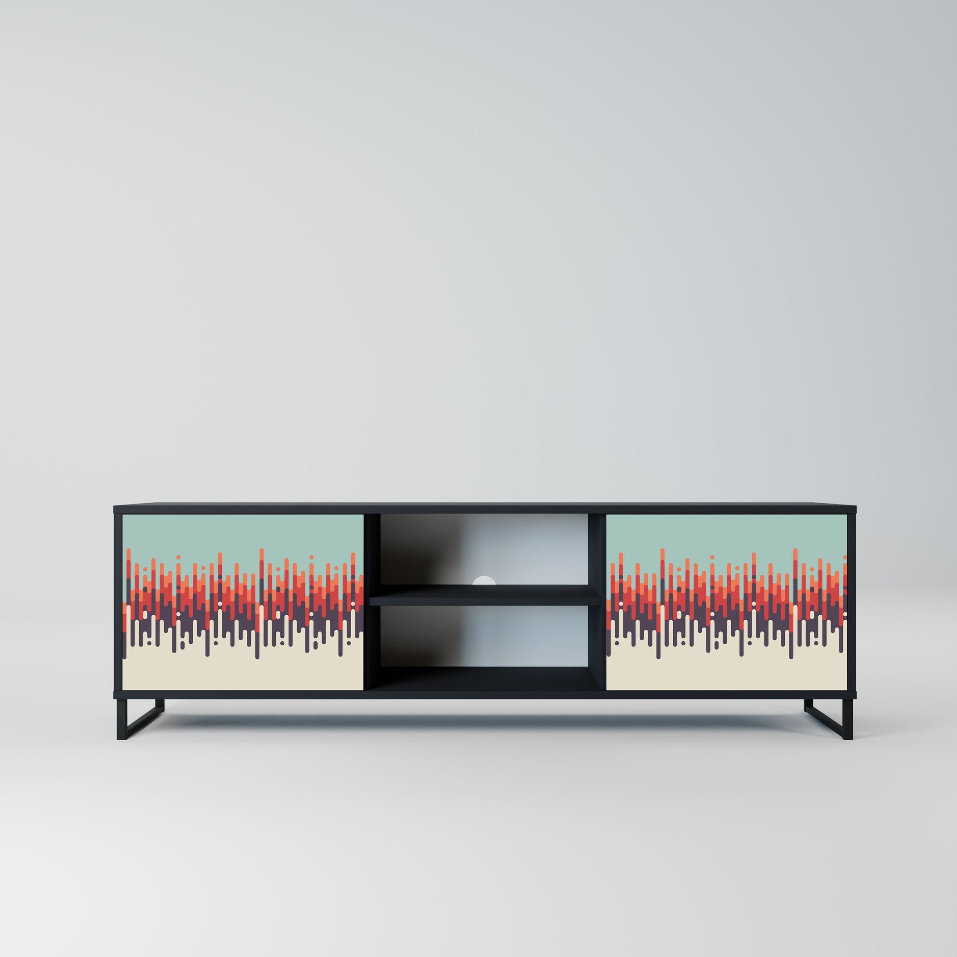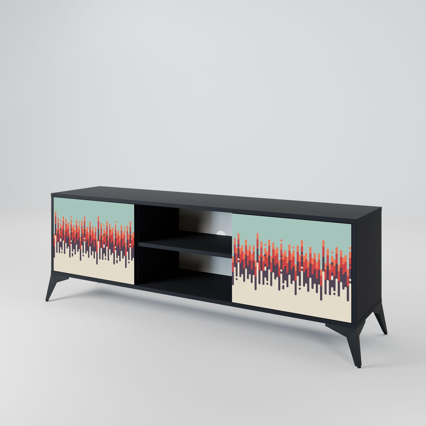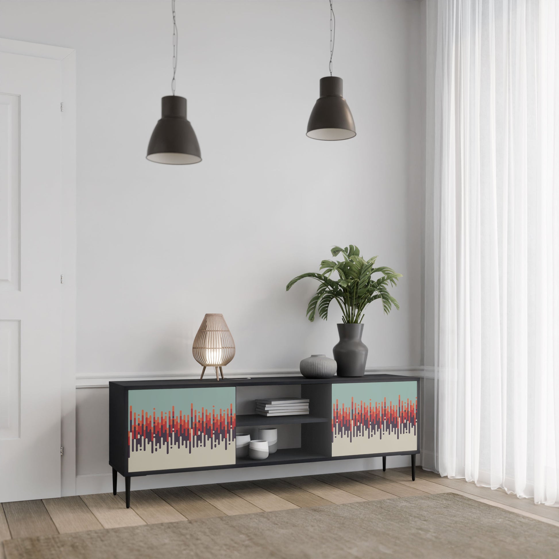 The black body gives the TV stand an elegant, modern look, while the fronts with an exceptional print draw attention, making it the focal point of any room. The spacious interior provides room for electronic devices, cables, remotes, and other accessories, helping you maintain order and organization.