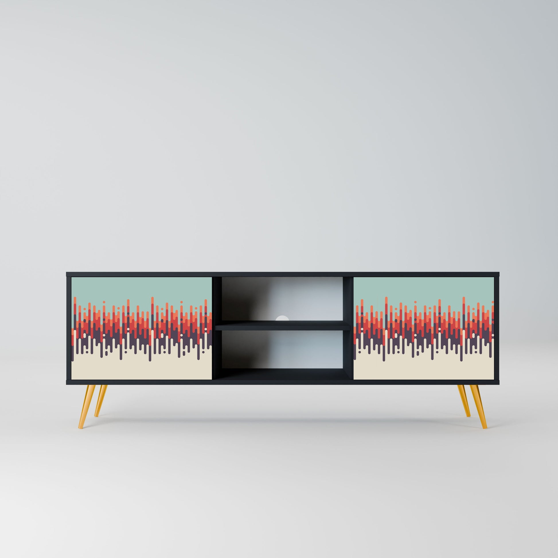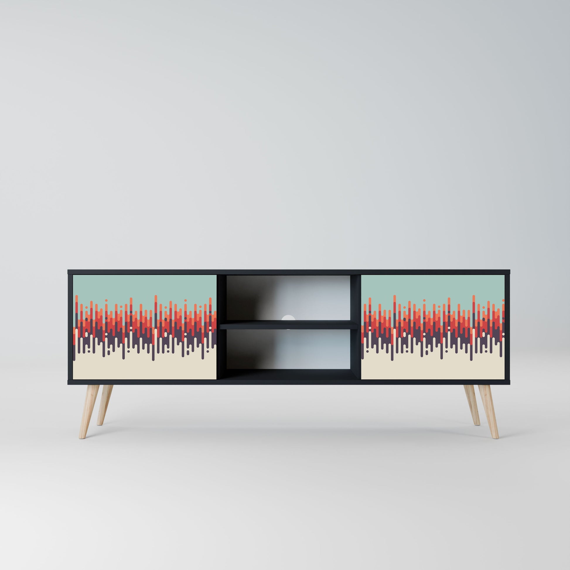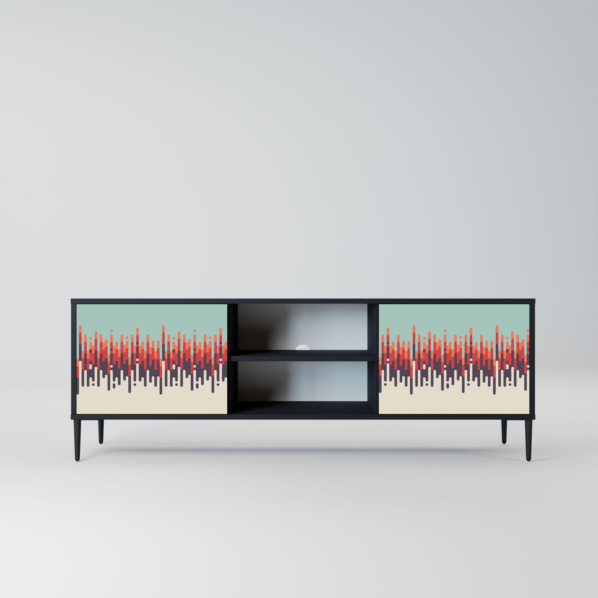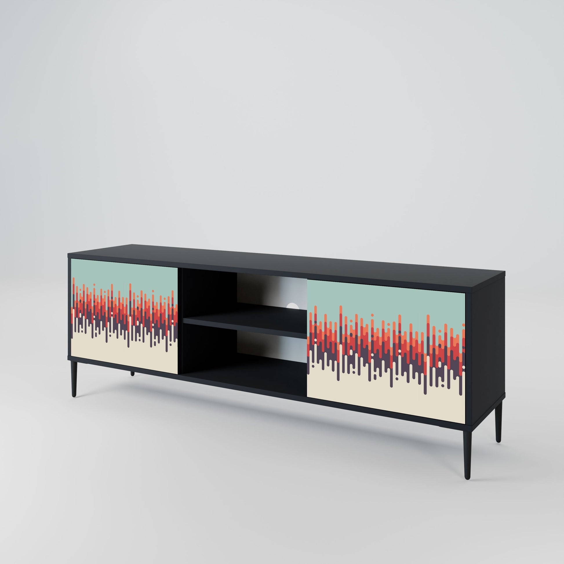 The black body gives the TV stand an elegant, modern look, while the fronts with an exceptional print draw attention, making it the focal point of any room. The spacious interior provides room for electronic devices, cables, remotes, and other accessories, helping you maintain order and organization.