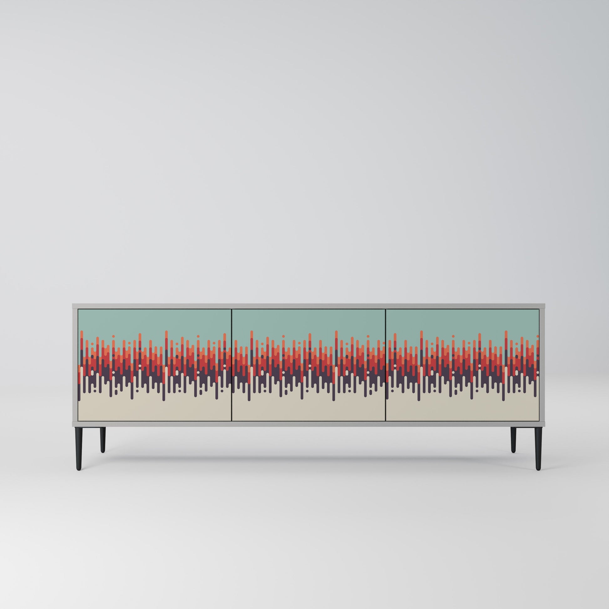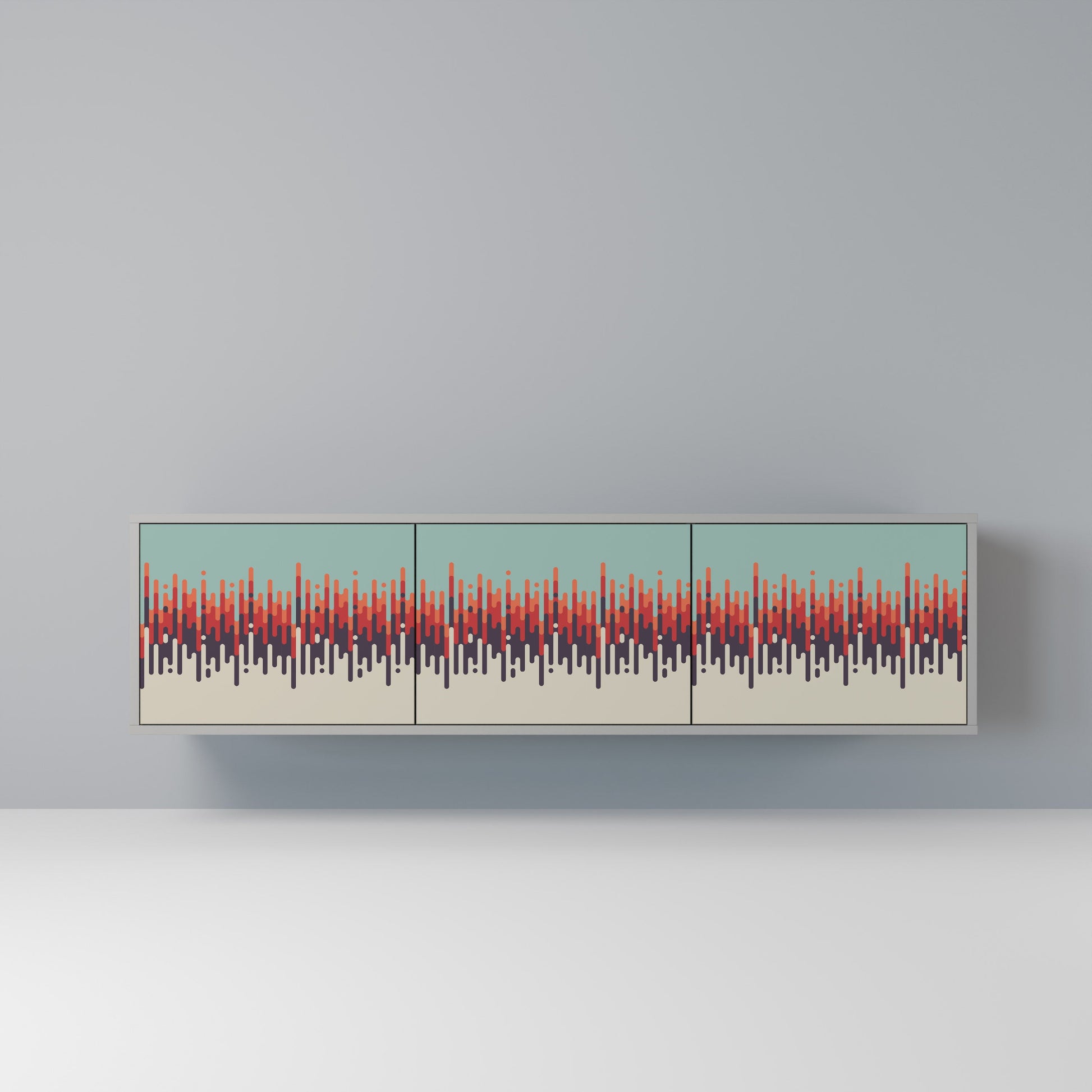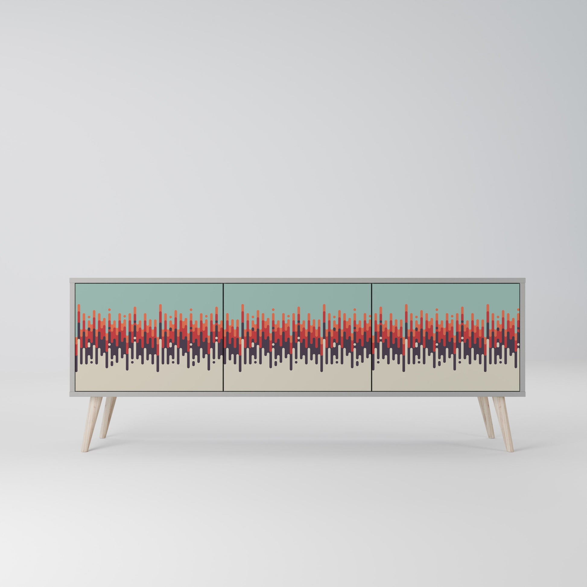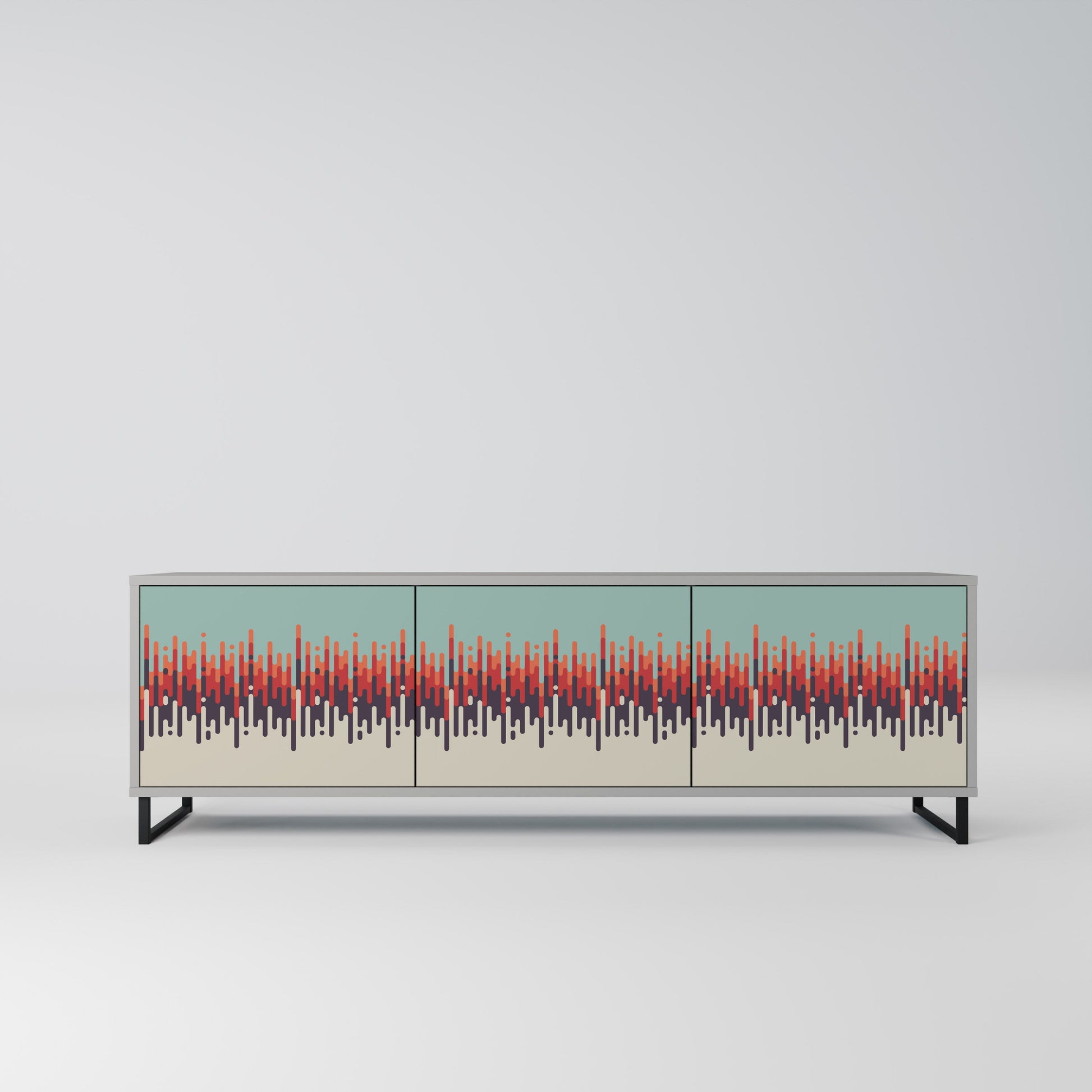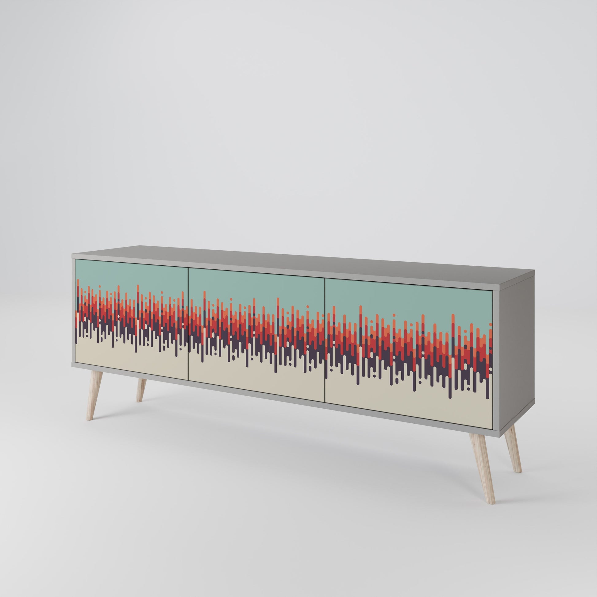 The grey body of the stand creates a refined, modern accent that pairs beautifully with industrial and minimalist arrangements. The fronts with a designer print add character and uniqueness, making this piece not only practical but also a standout decorative element.