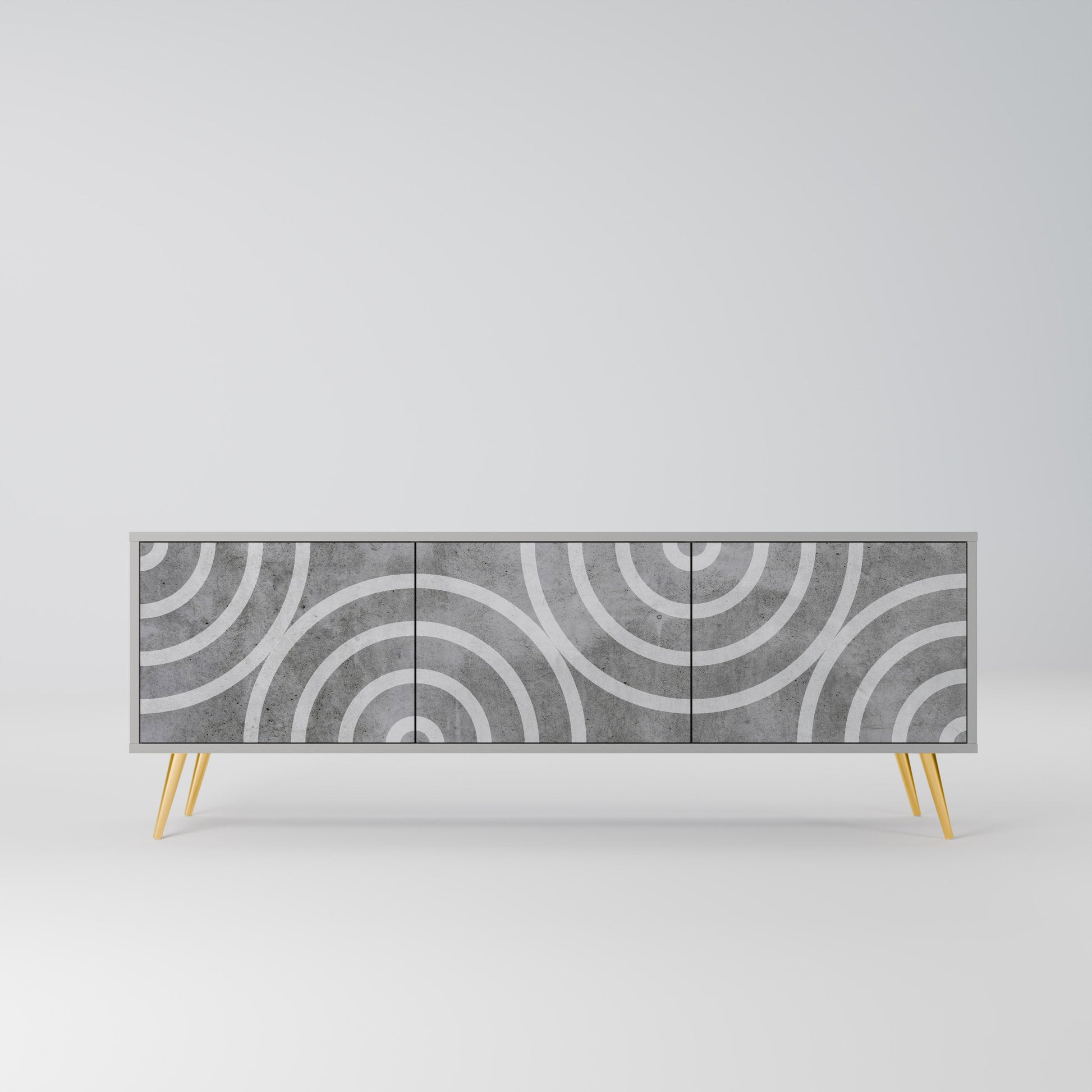 CIRCLE CONCRETE 3-Door TV Stand in Grey Finish