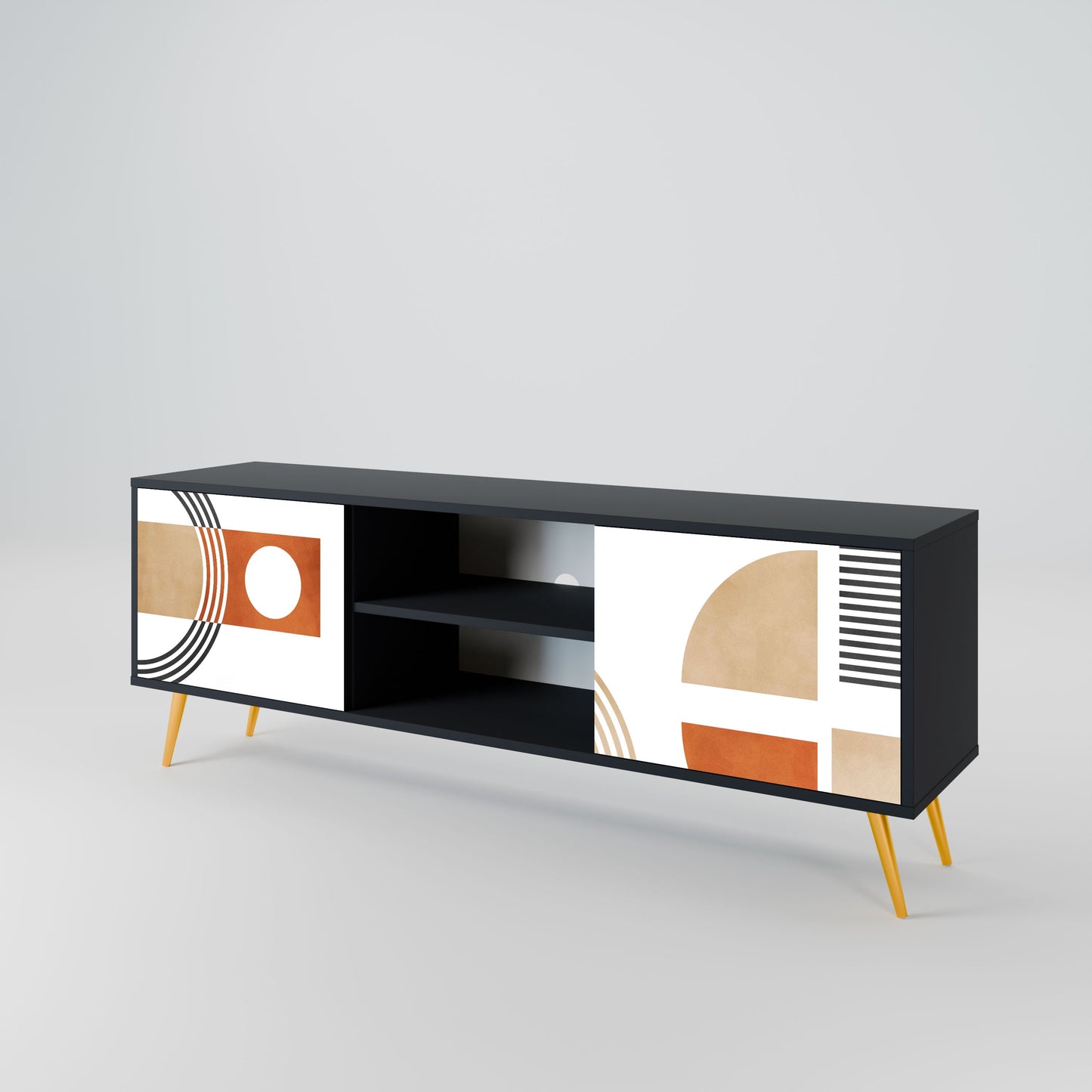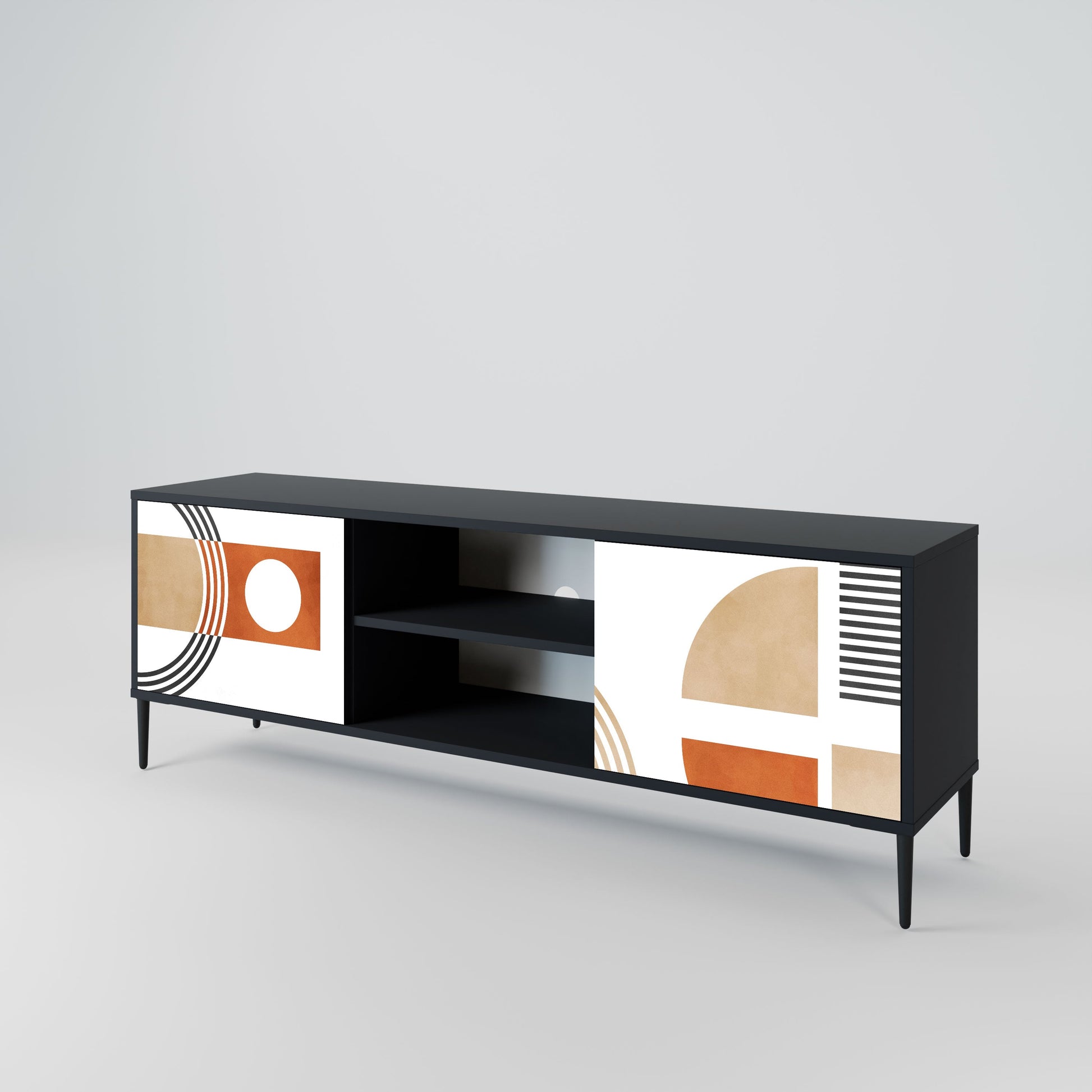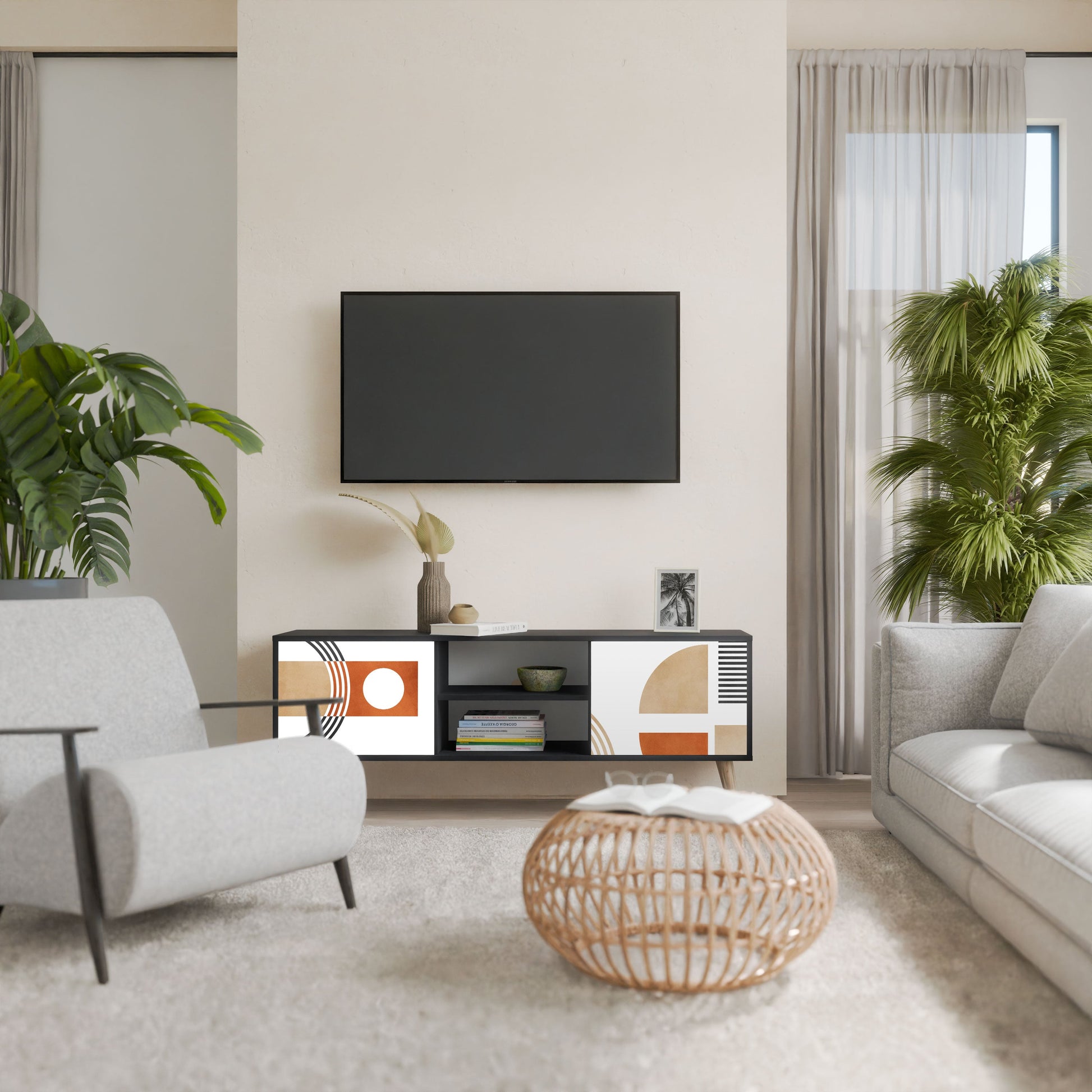 The black body gives the TV stand an elegant, modern look, while the fronts with an exceptional print draw attention, making it the focal point of any room. The spacious interior provides room for electronic devices, cables, remotes, and other accessories, helping you maintain order and organization.