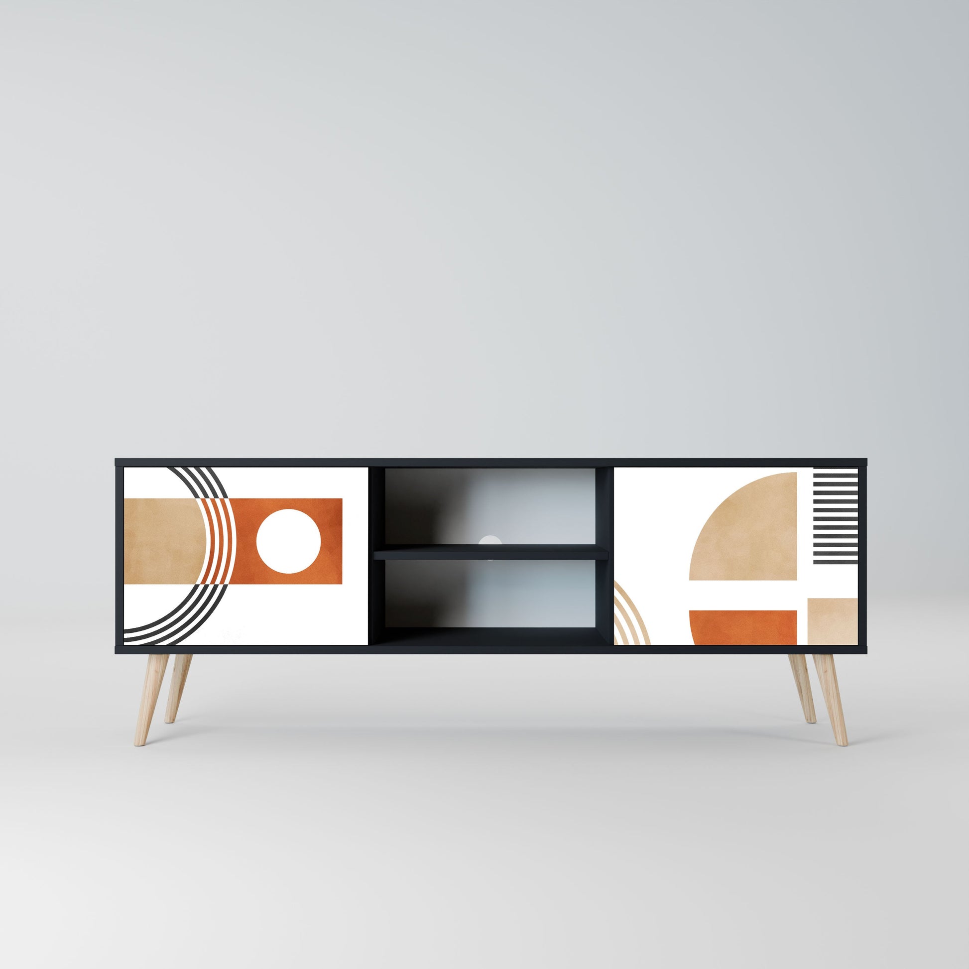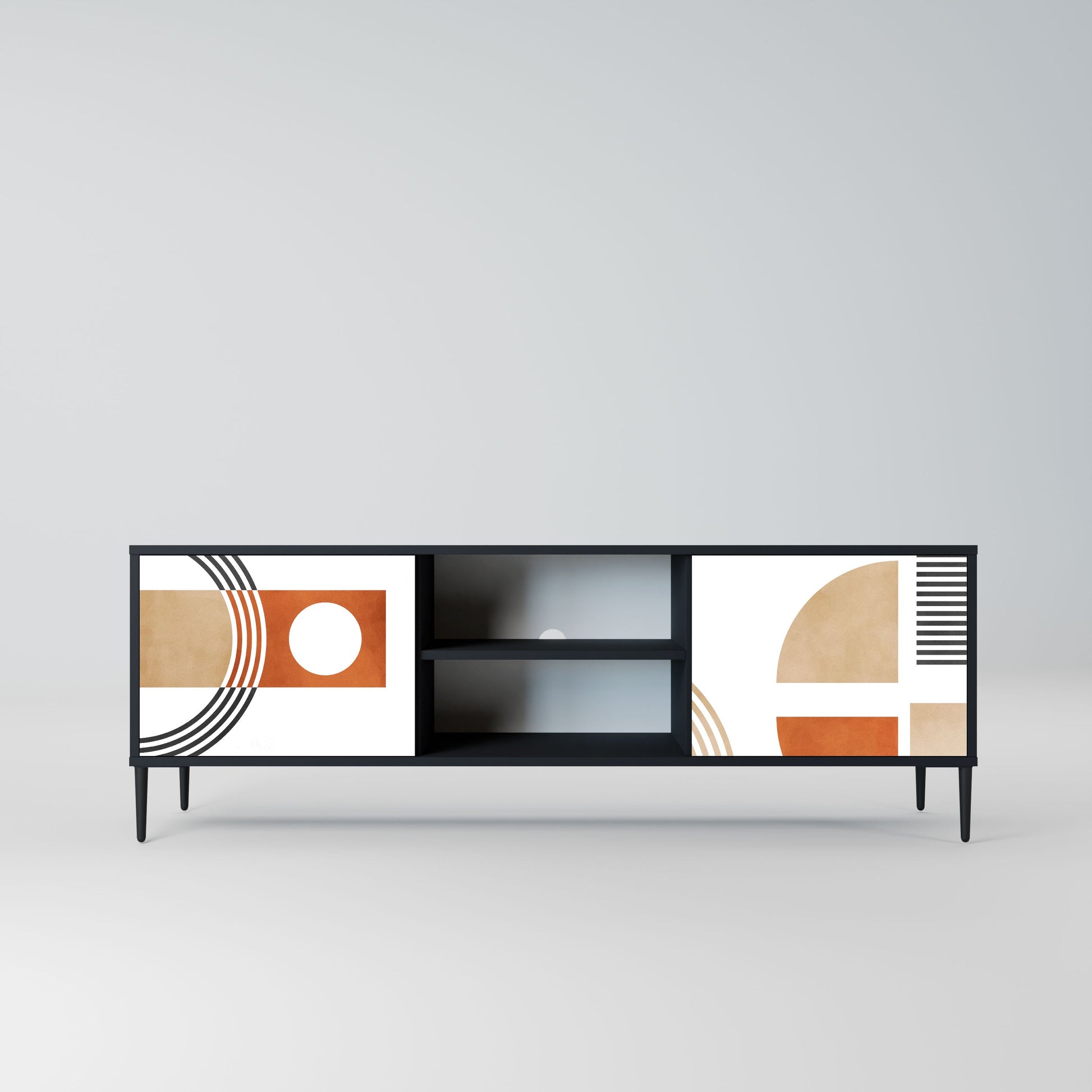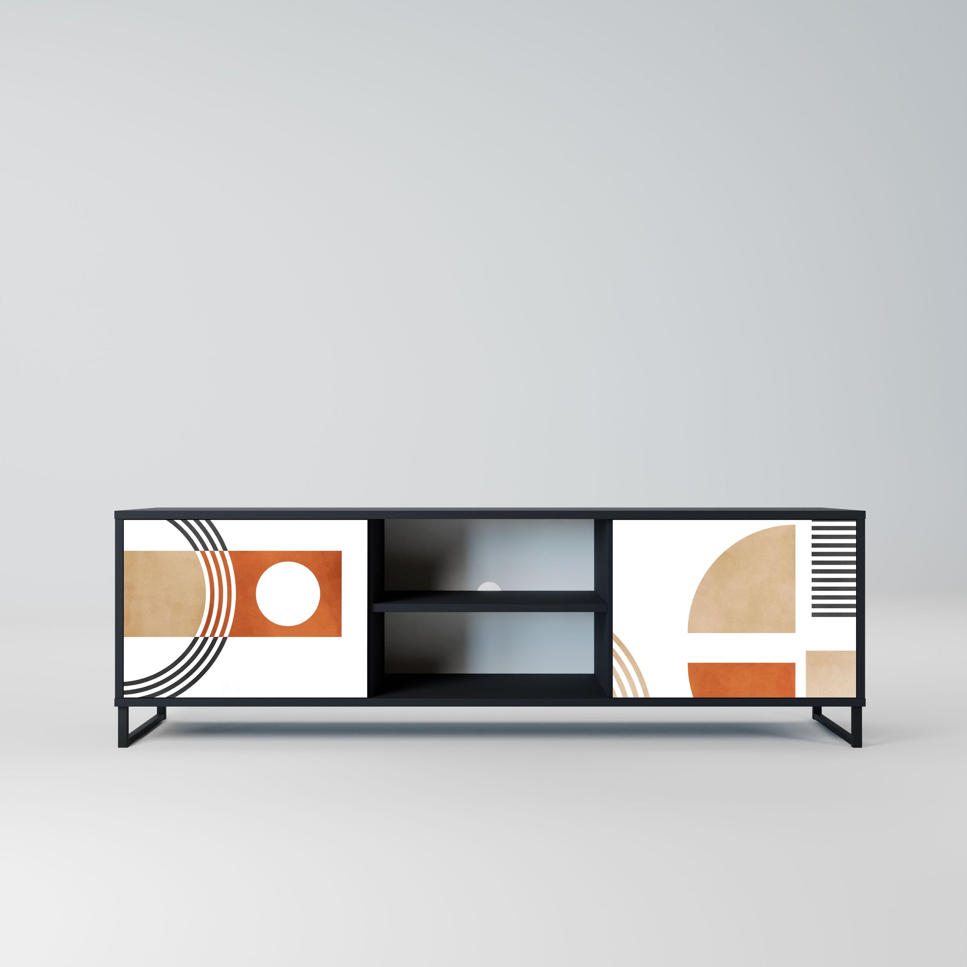 The black body gives the TV stand an elegant, modern look, while the fronts with an exceptional print draw attention, making it the focal point of any room. The spacious interior provides room for electronic devices, cables, remotes, and other accessories, helping you maintain order and organization.