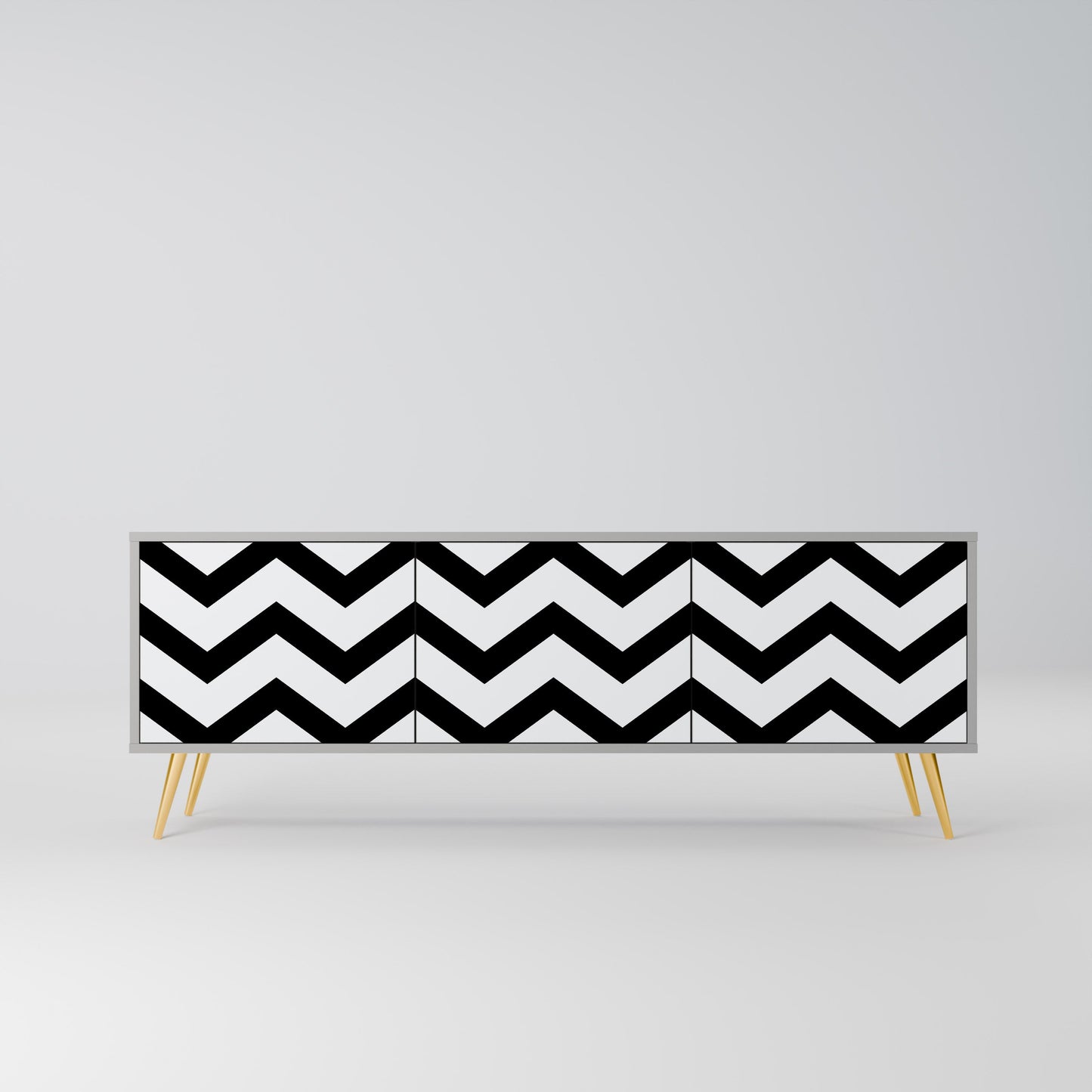 CLASSIC ZIG ZAG 3-Door TV Stand in Grey Finish