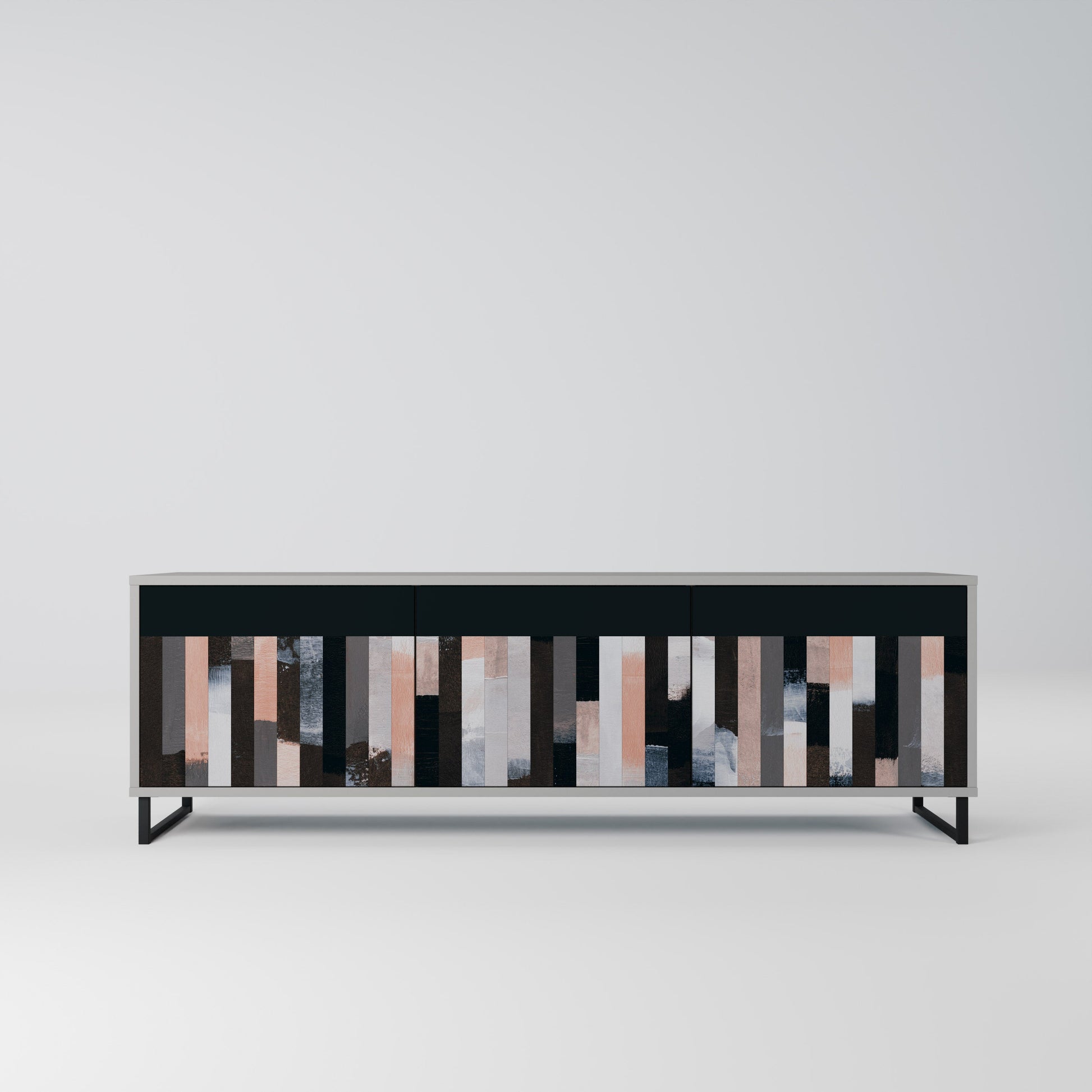 COLLAGE OF RECTANGLES 3-Door TV Stand in Grey Finish