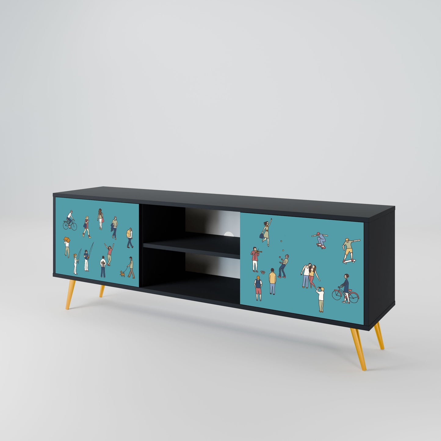 The black body gives the TV stand an elegant, modern look, while the fronts with an exceptional print draw attention, making it the focal point of any room. The spacious interior provides room for electronic devices, cables, remotes, and other accessories, helping you maintain order and organization.