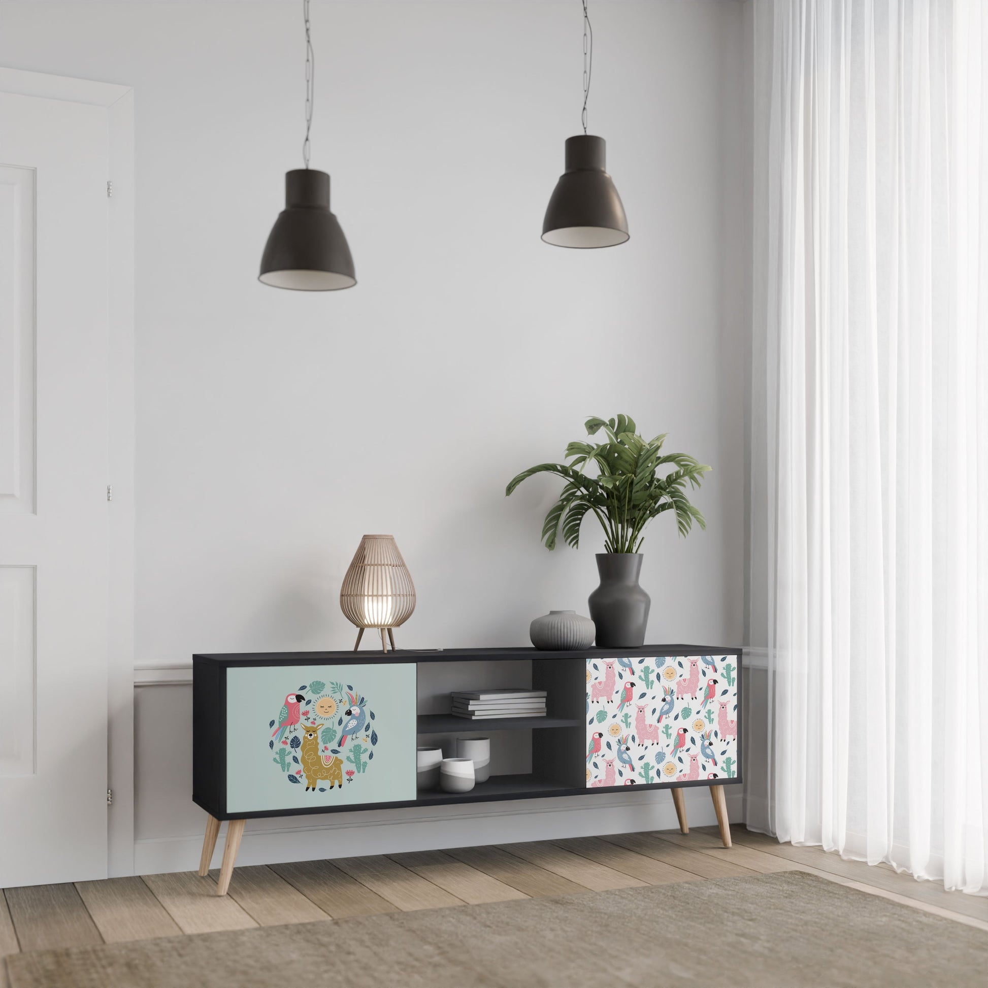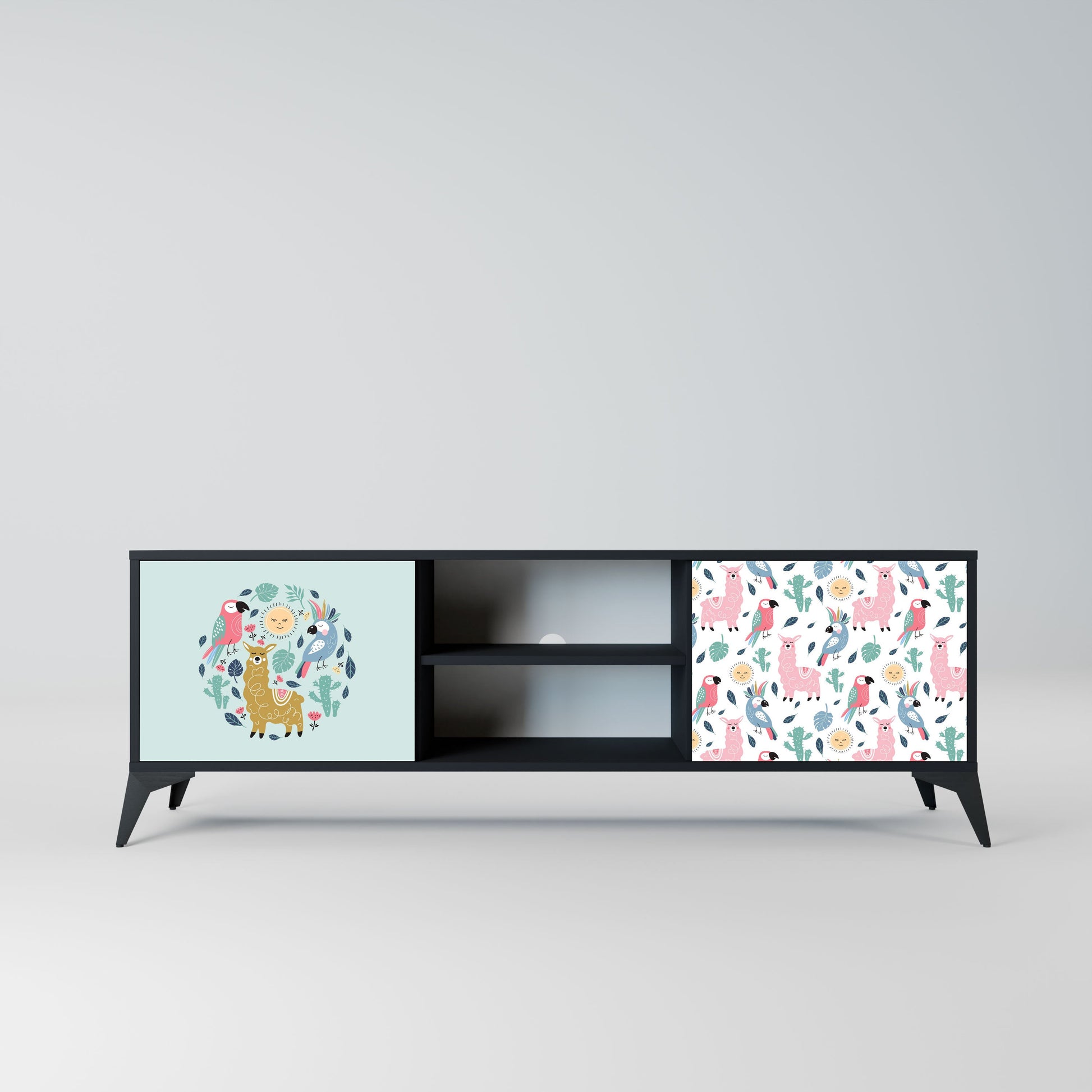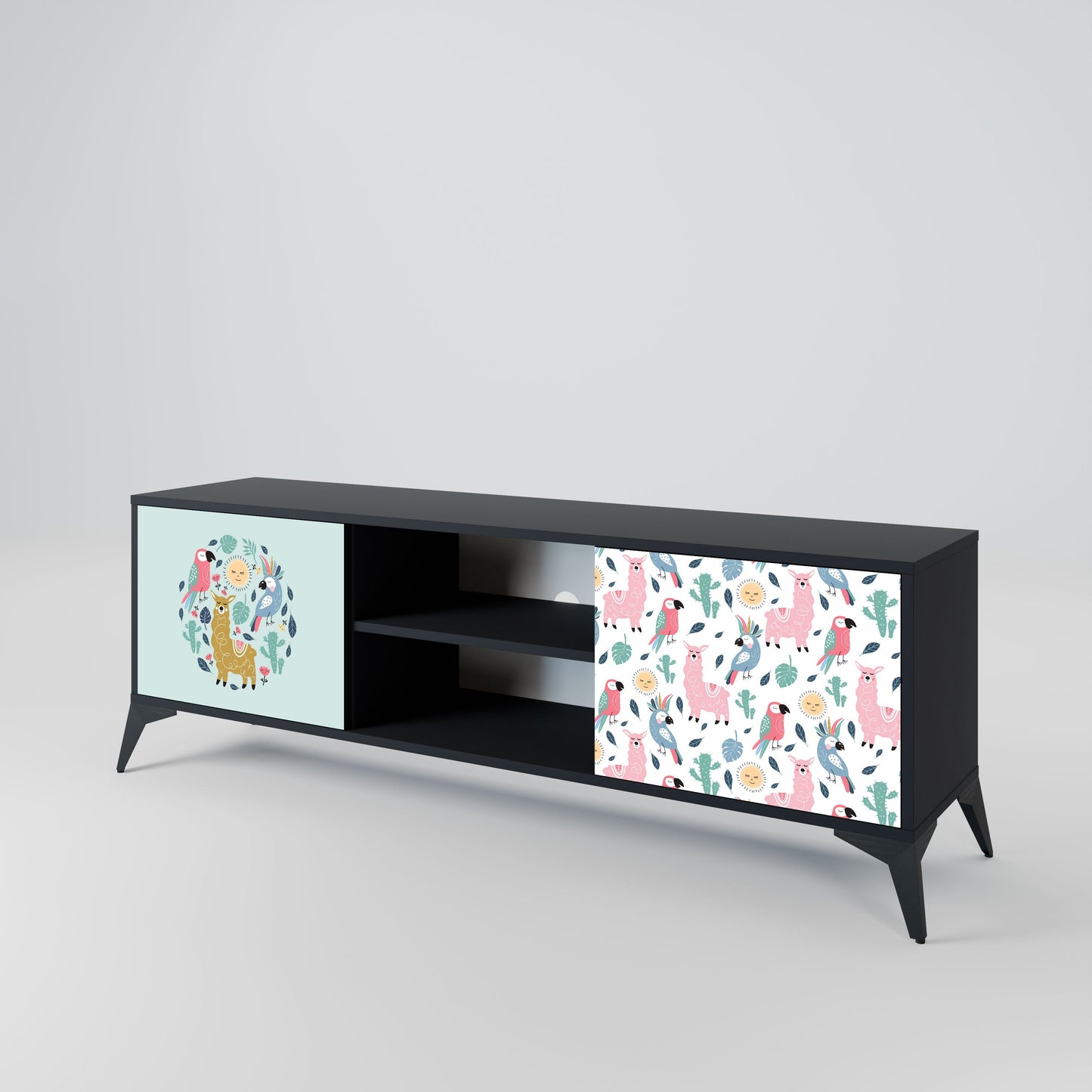 COLORFUL ALPACAS 2-Door TV Stand in Black Finish