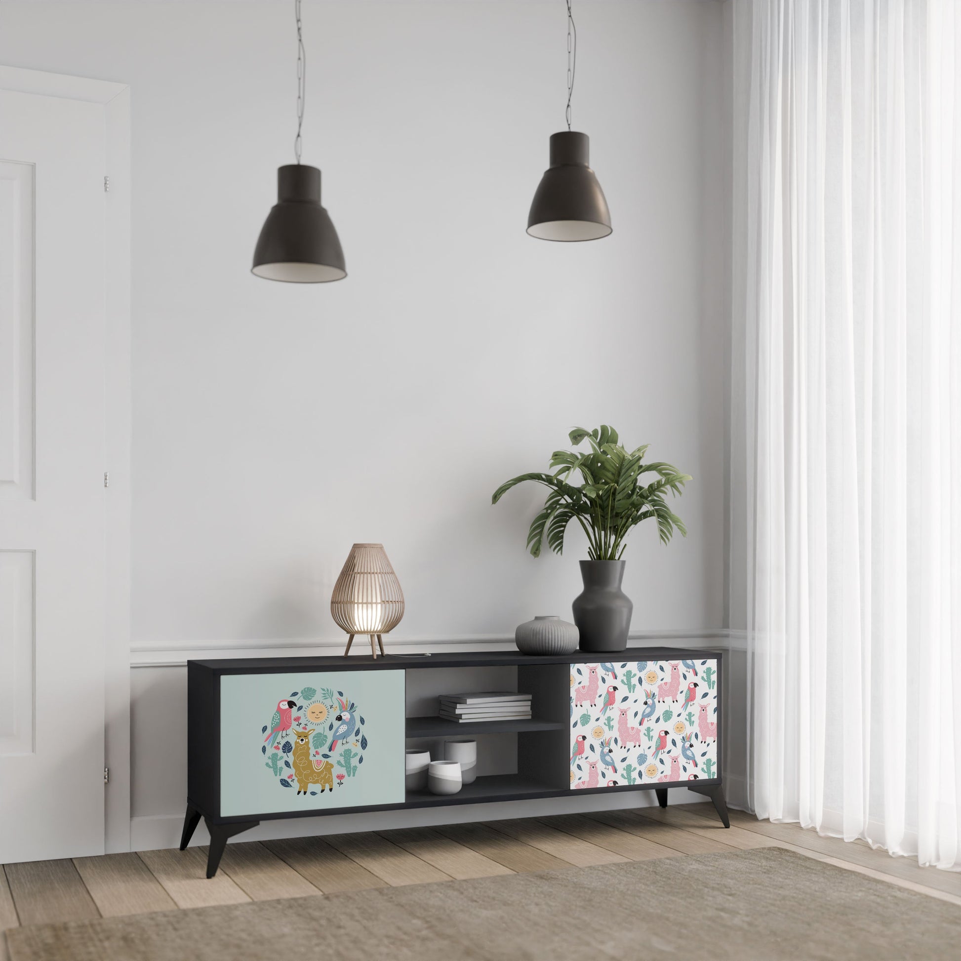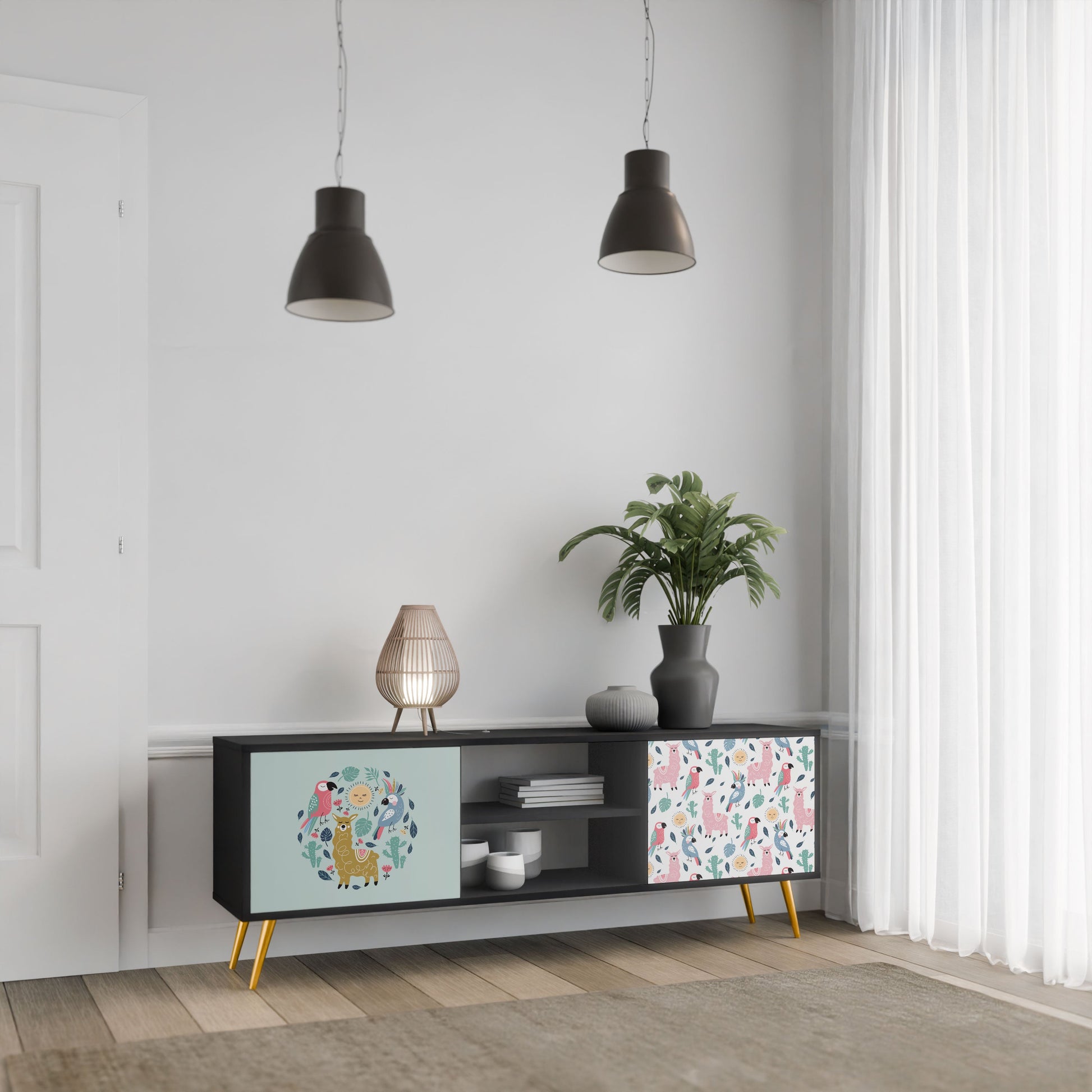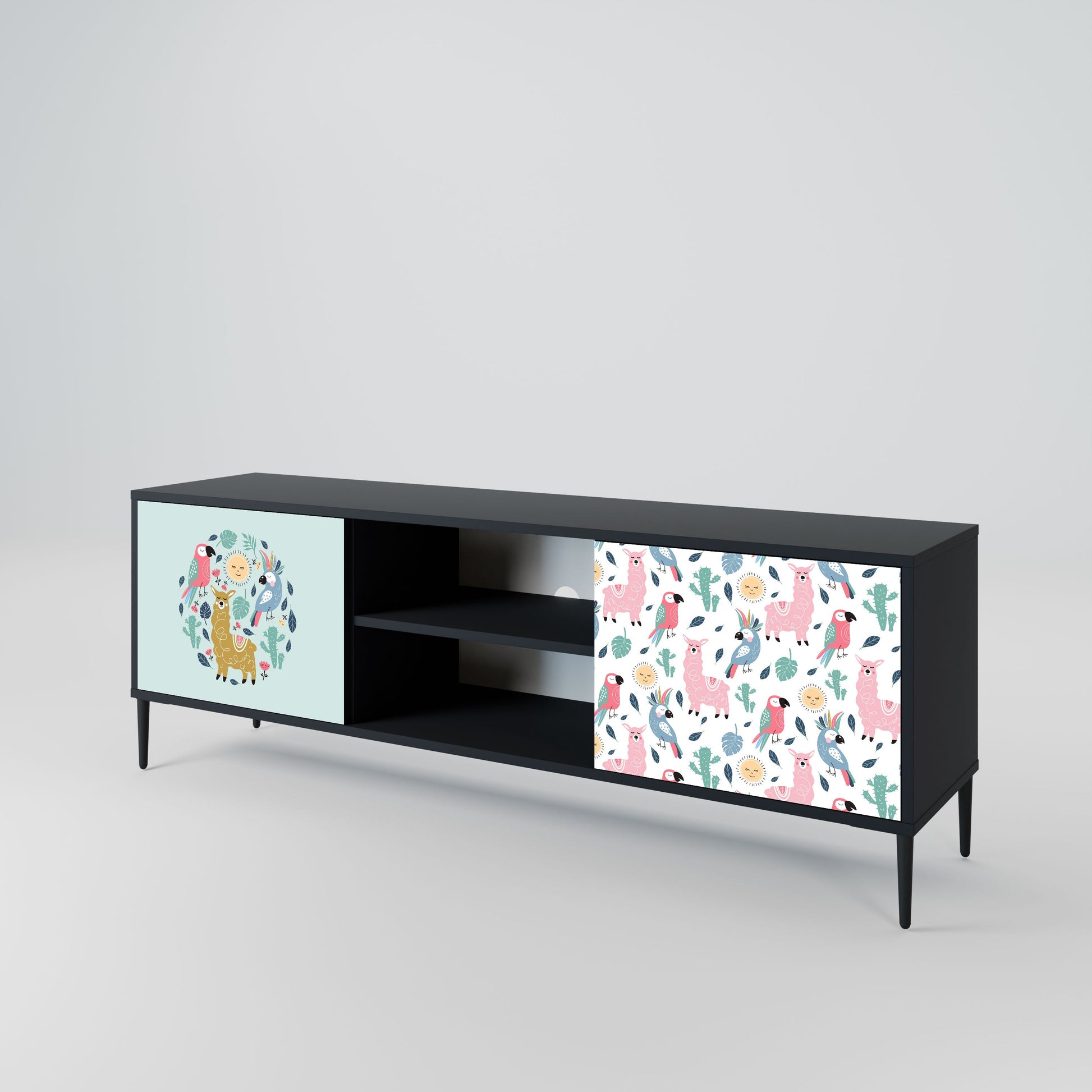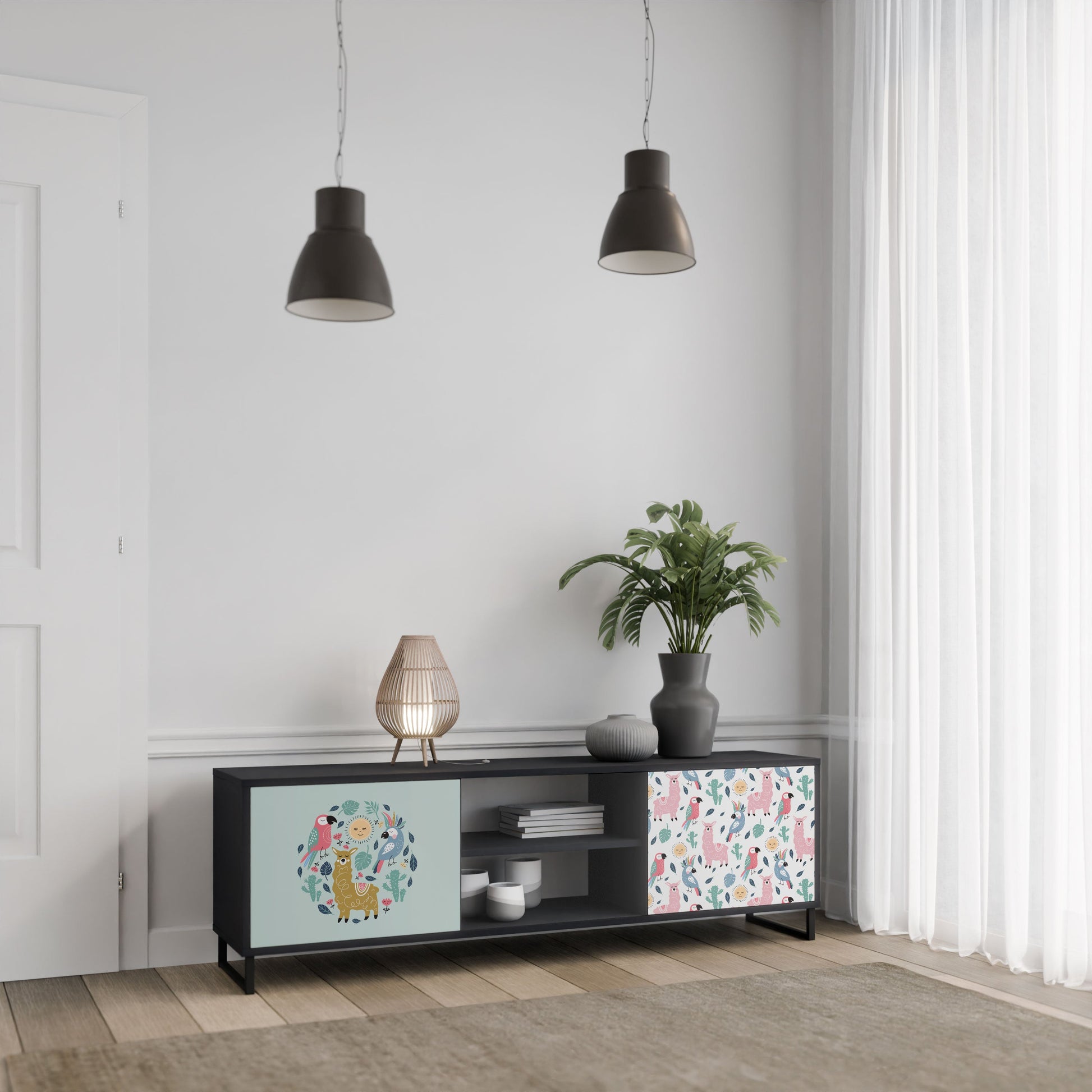 COLORFUL ALPACAS 2-Door TV Stand in Black Finish