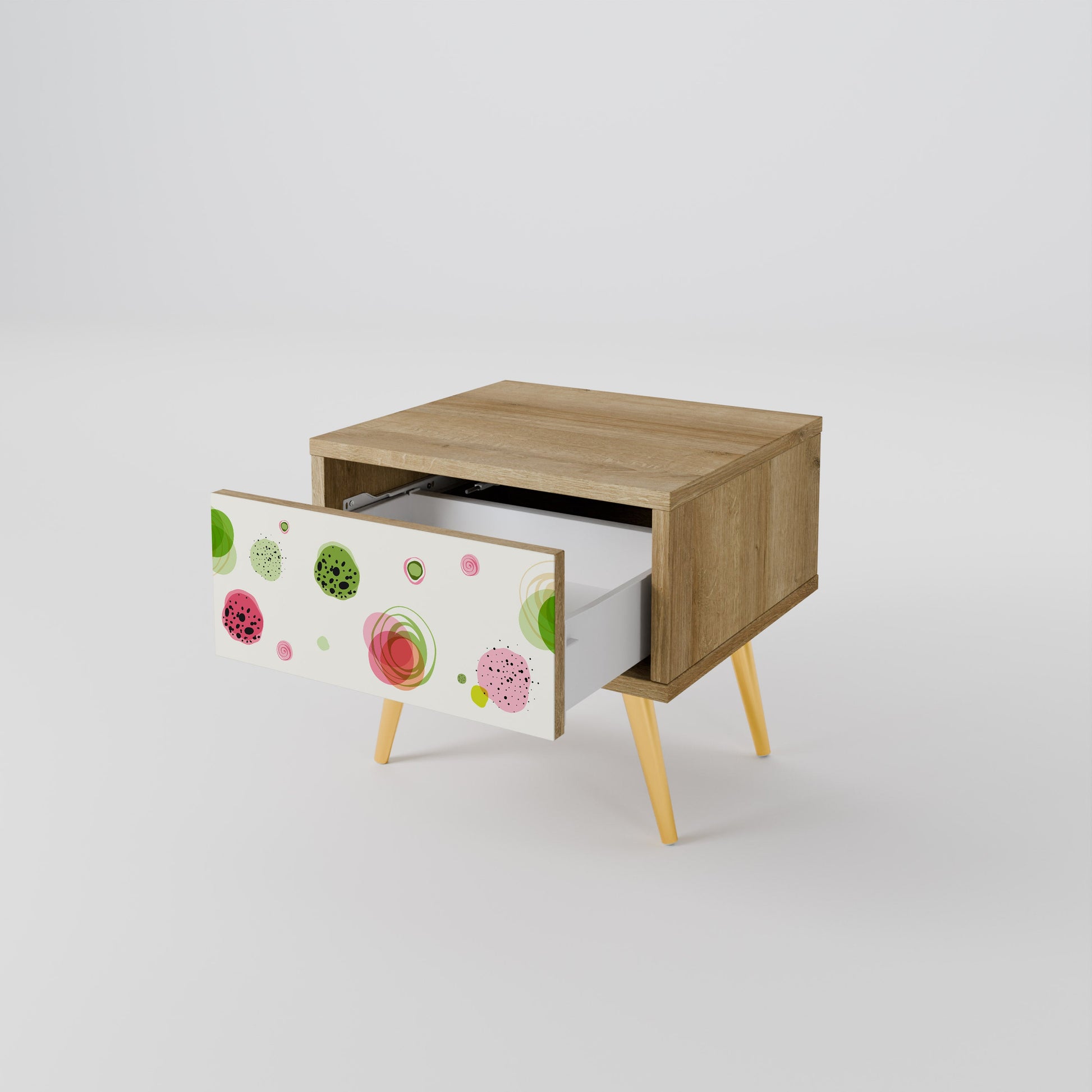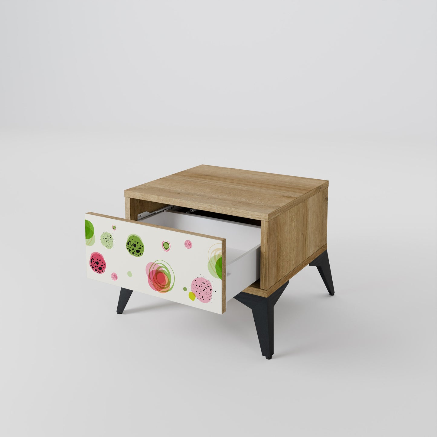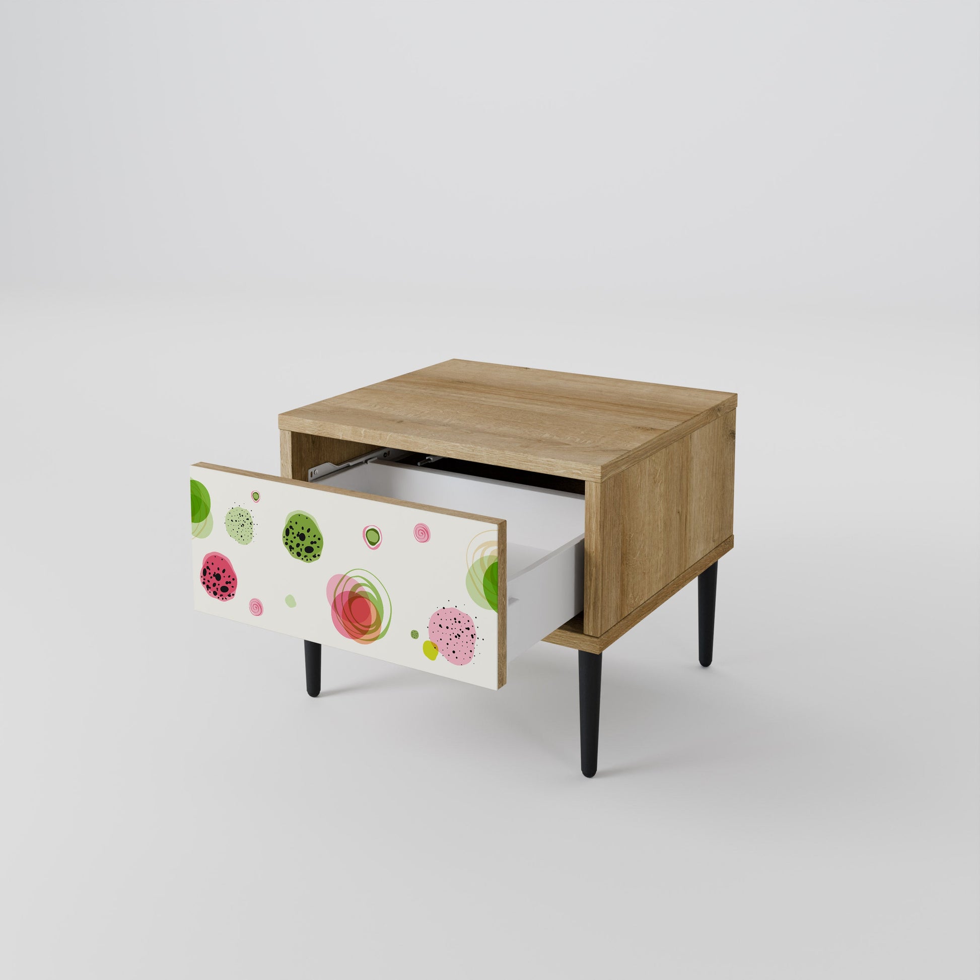 Discover functionality and elegance in a compact form with our bedside unit with a drawer. This practical and stylish piece of furniture perfectly combines the natural beauty of wood with modern design on the drawer front, creating a harmonious element for any bedroom.