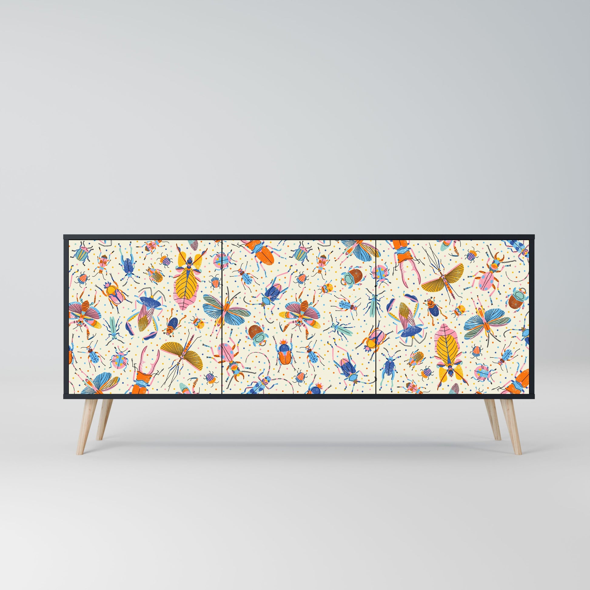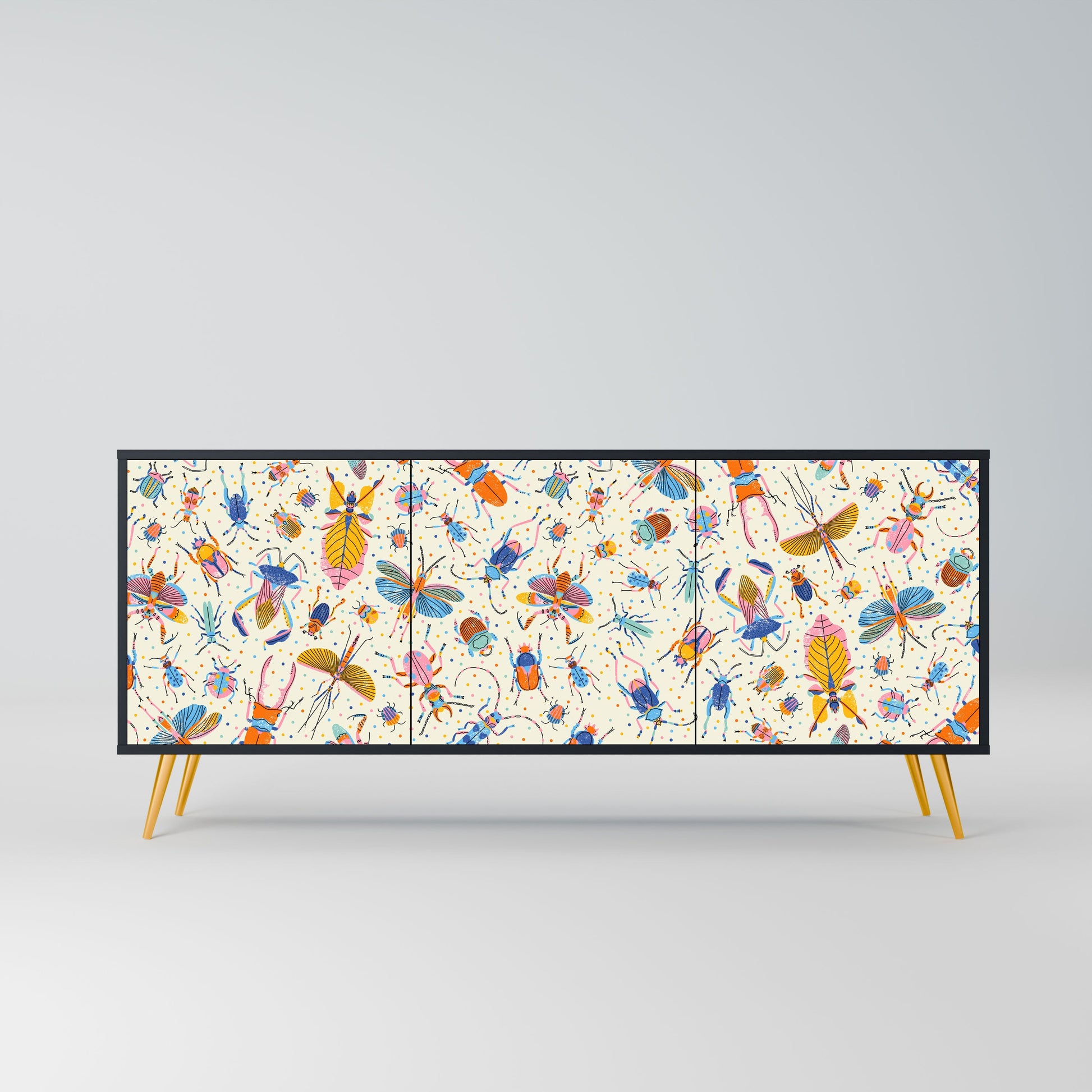 COLORFUL INSECTS 3-Door Sideboard in Black Finish