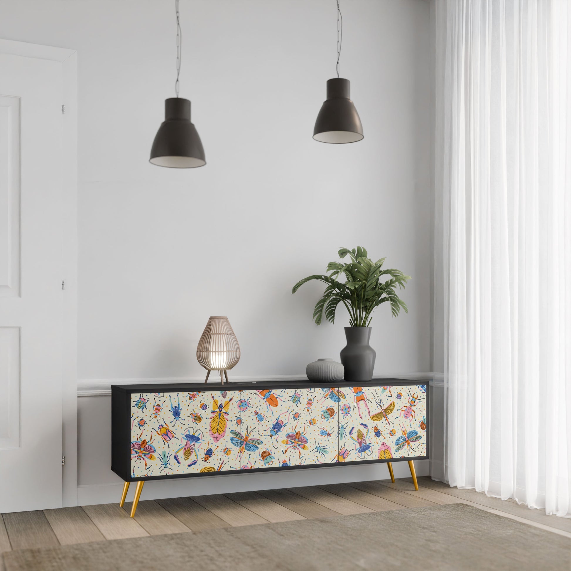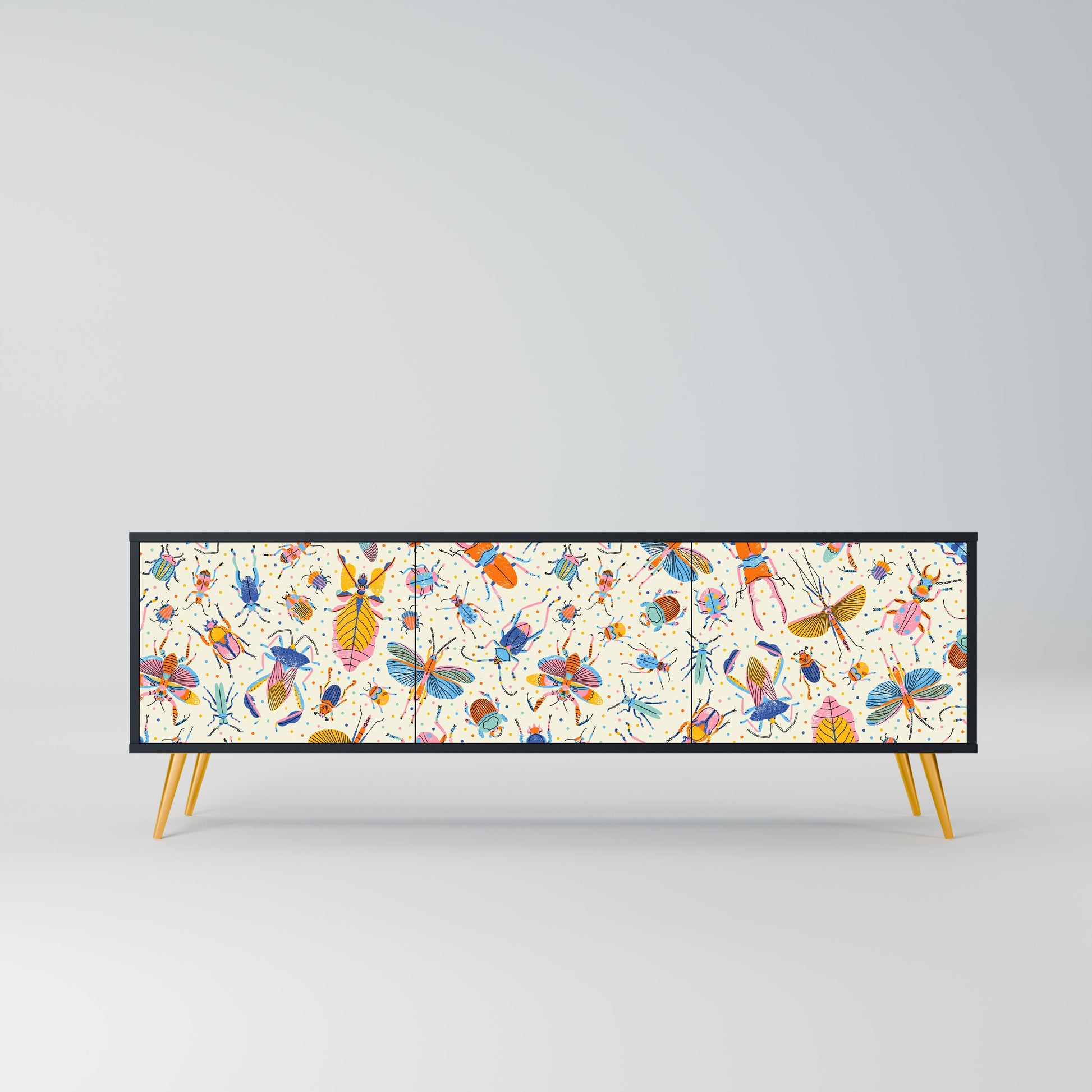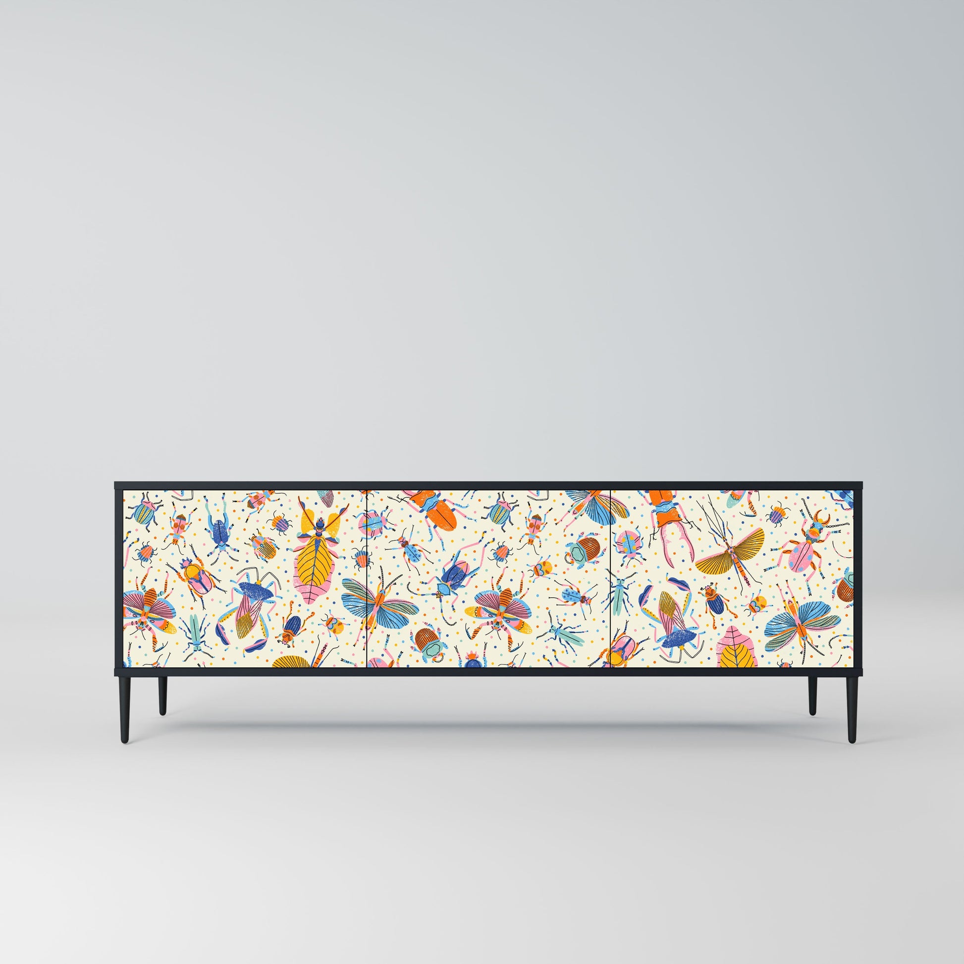 COLORFUL INSECTS 3-Door TV Stand in Black Finish