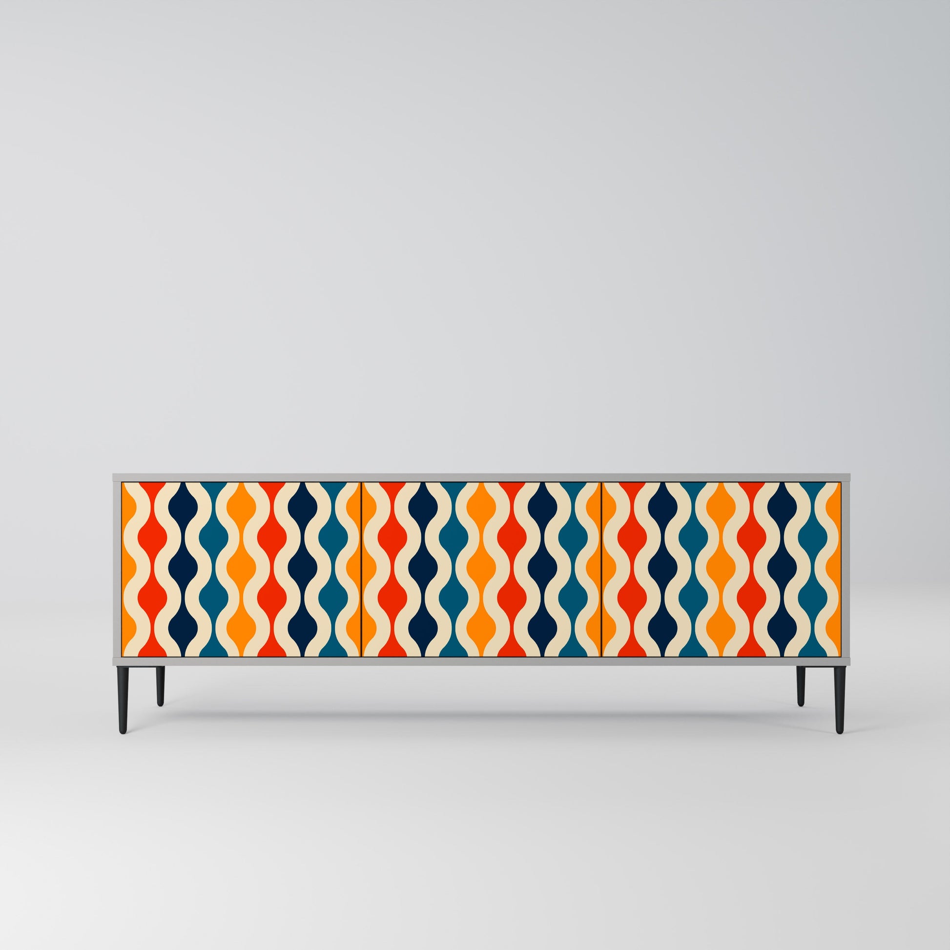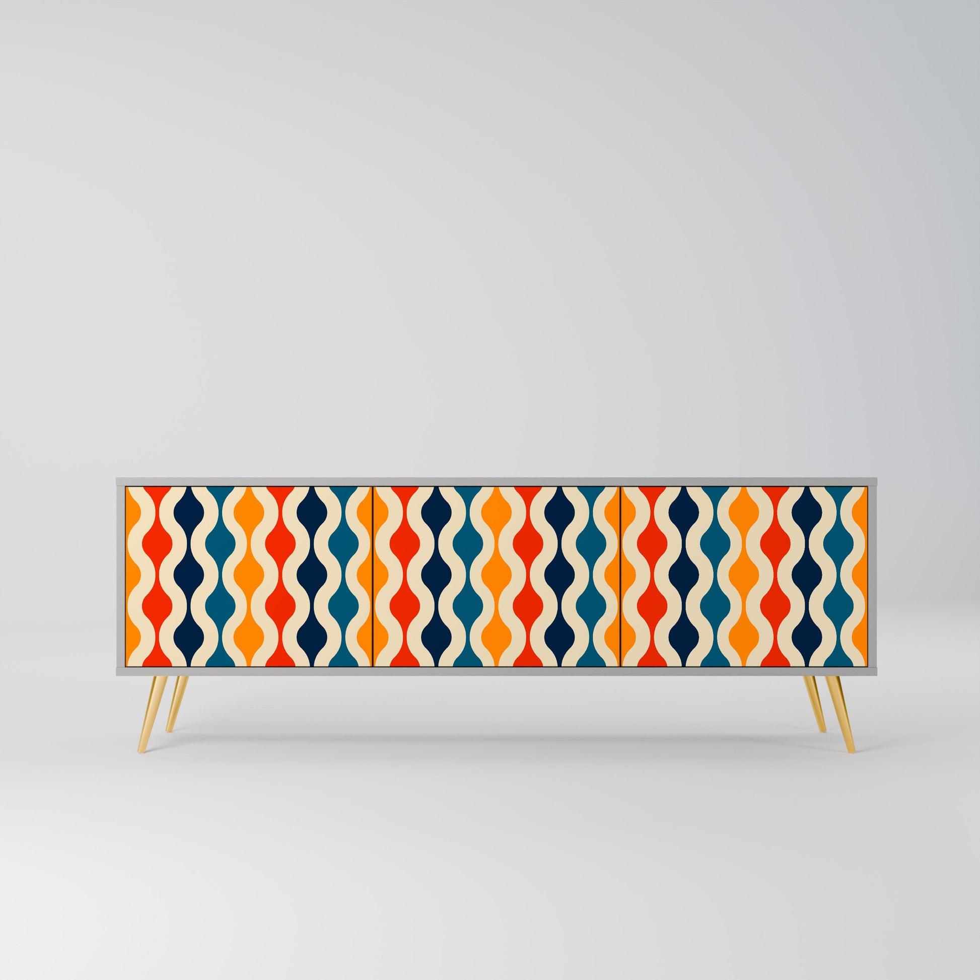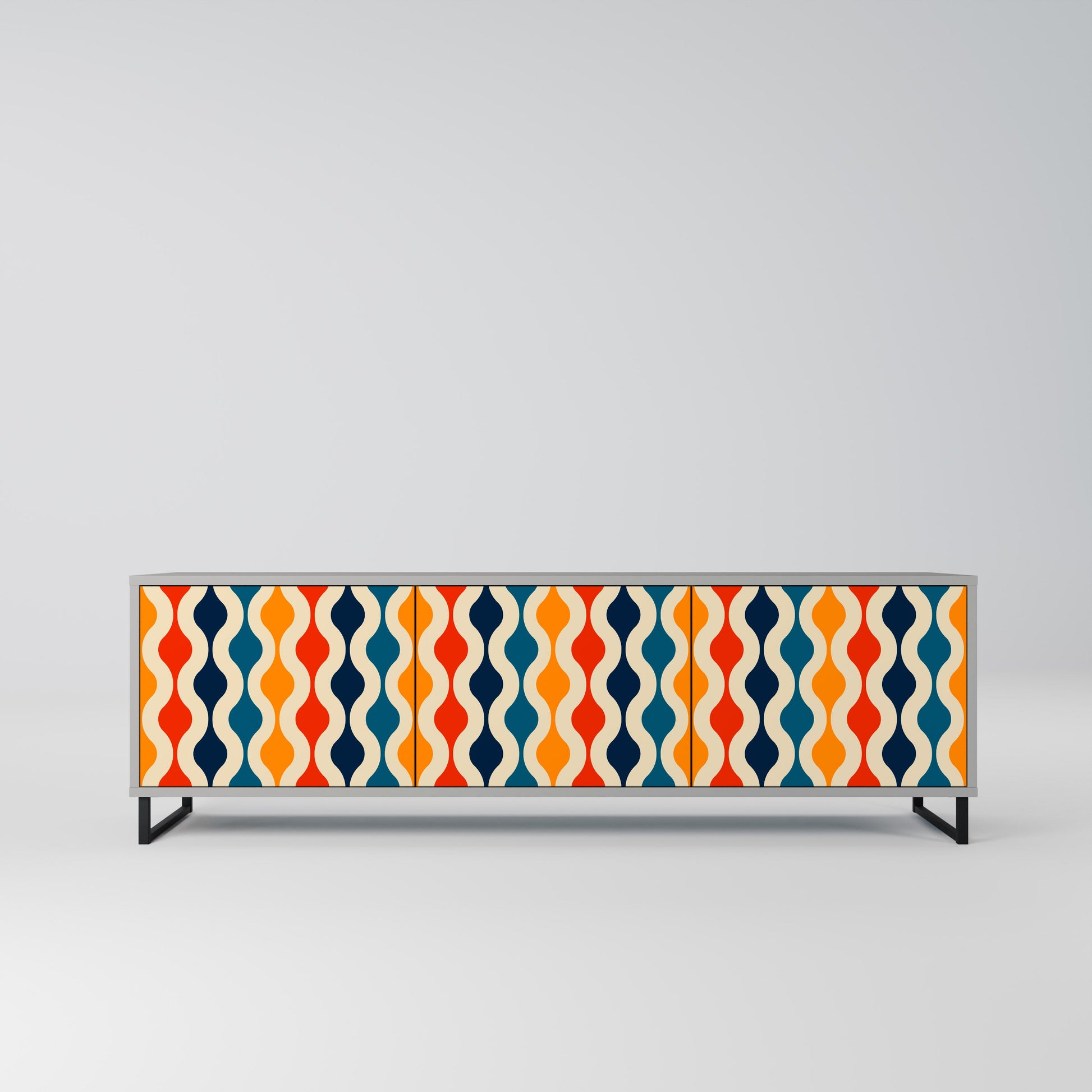 COLORFUL NOSTALGIA 3-Door TV Stand in Grey Finish