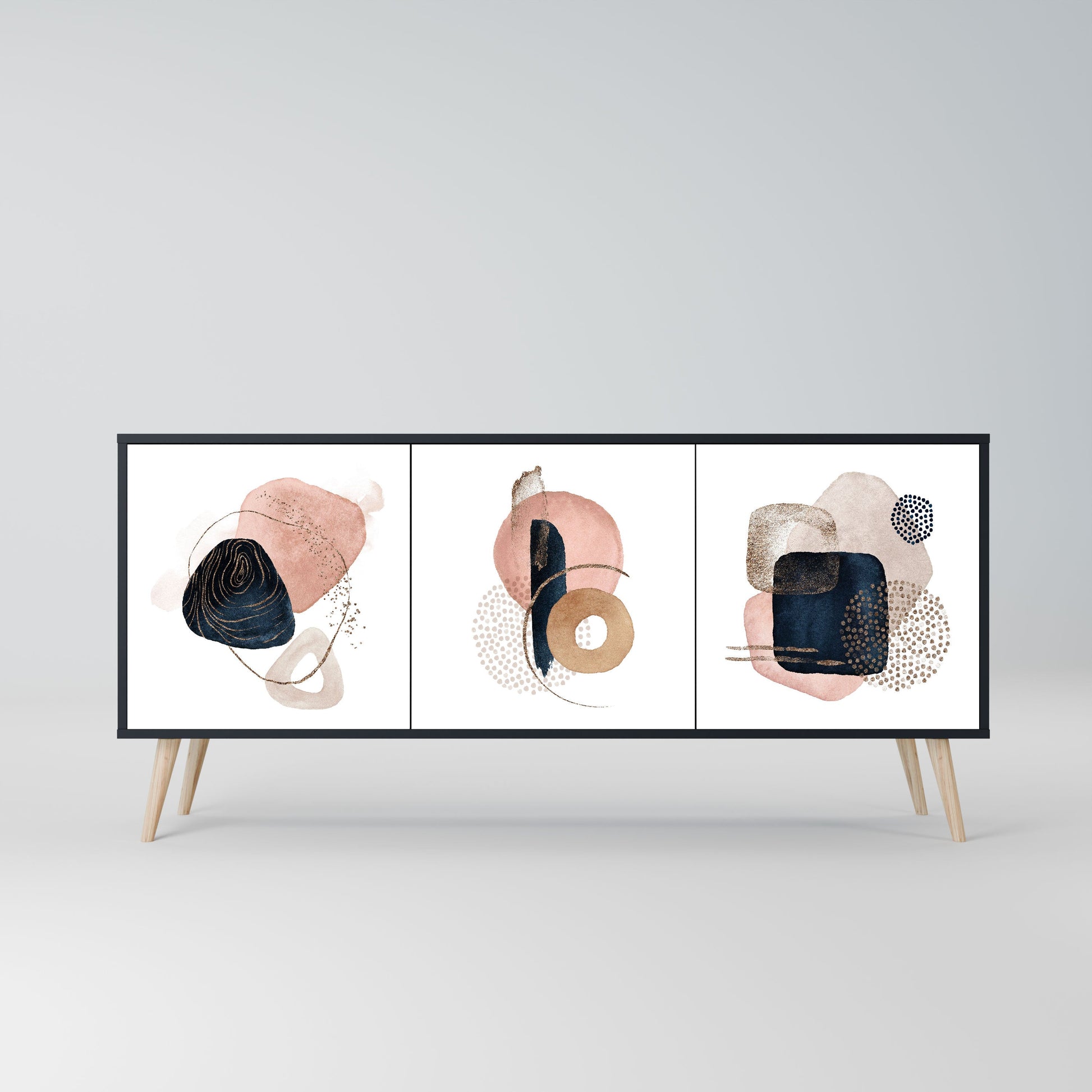 Elegance and functionality in a single piece of furniture – our 3-Door Sideboard with a black body is the perfect solution for lovers of stylish, modern interiors. The black body emphasizes the bold character of the furniture, while the fronts with a unique print add an artistic touch. It fits perfectly in the living room, bedroom, or office, complementing both modern and industrial arrangements.