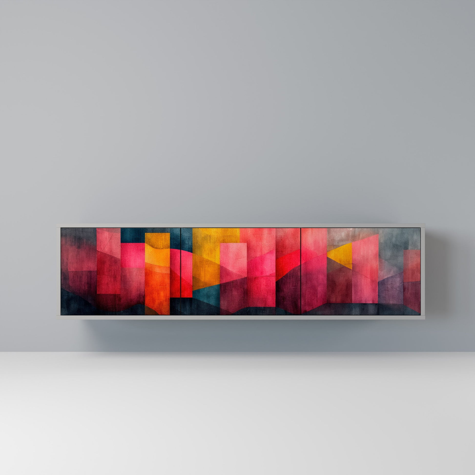 The grey body of the stand creates a refined, modern accent that pairs beautifully with industrial and minimalist arrangements. The fronts with a designer print add character and uniqueness, making this piece not only practical but also a standout decorative element.