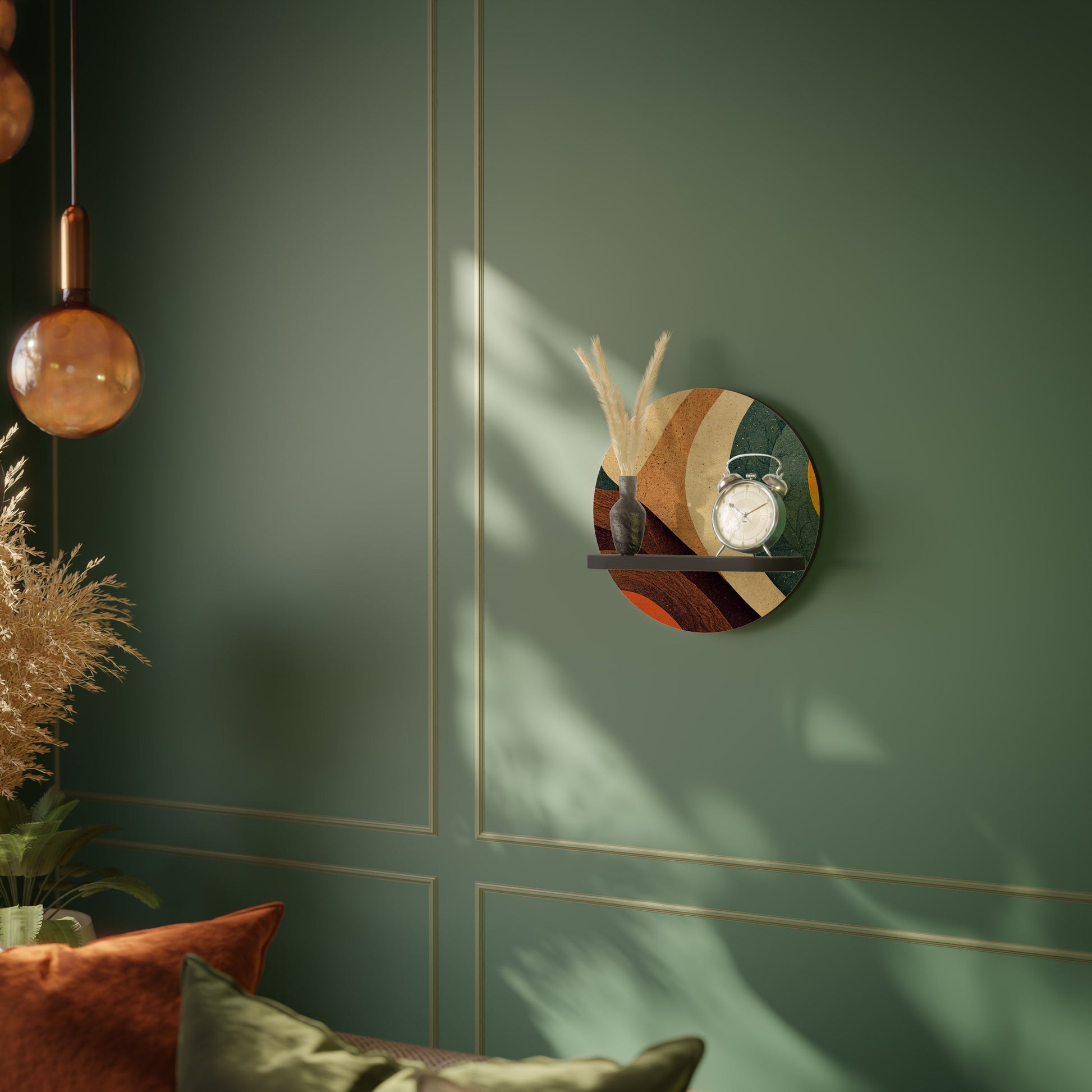 COLORFUL STRANDS Round Art Shelf In Black Finish