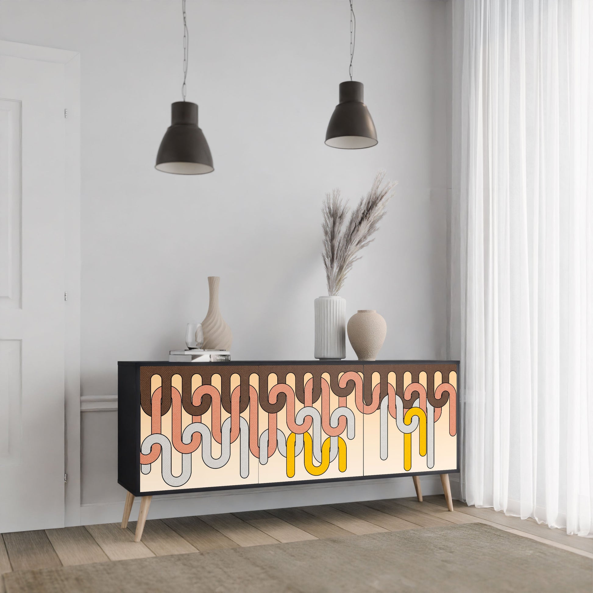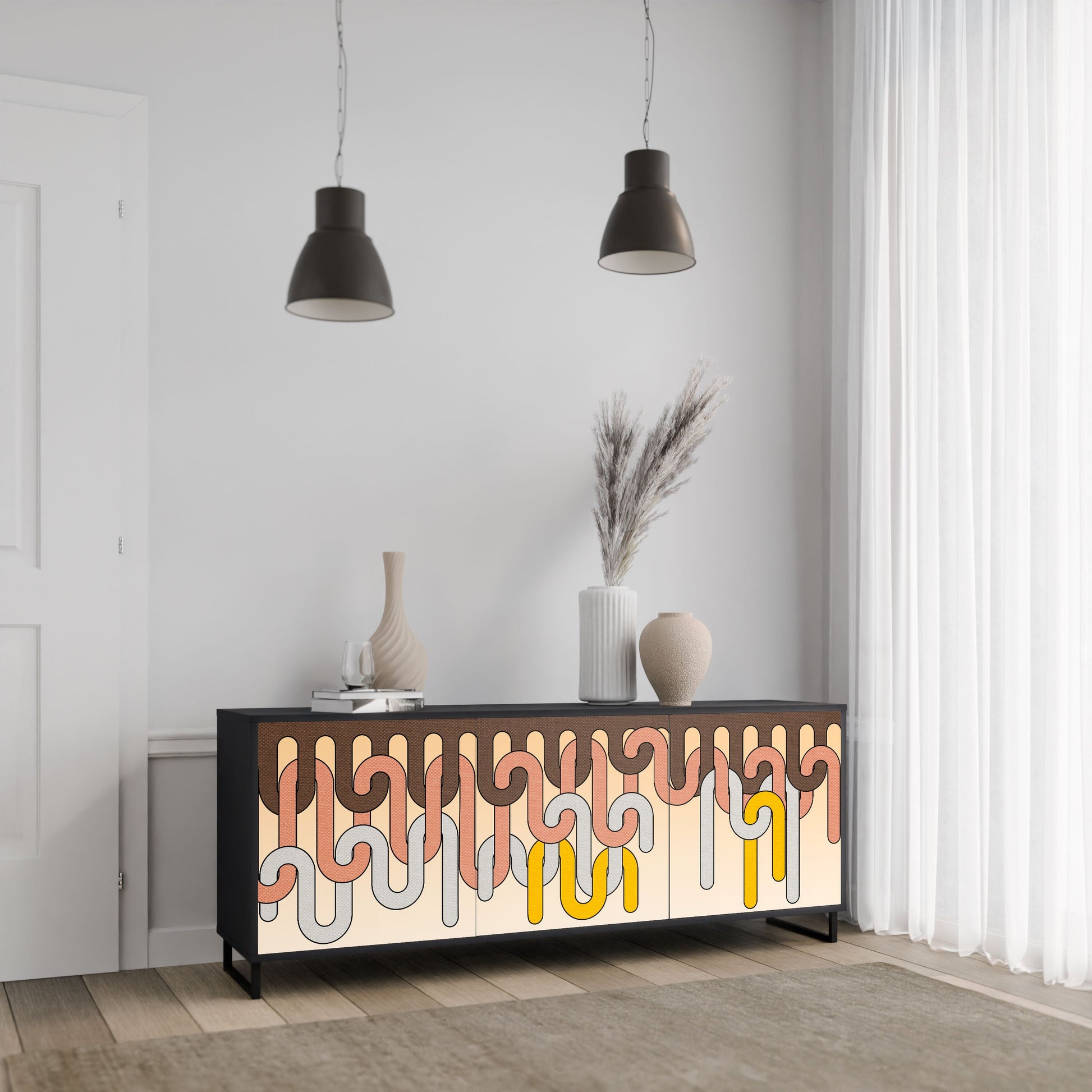 COLORFUL STRINGS 3-Door Sideboard in Black Finish