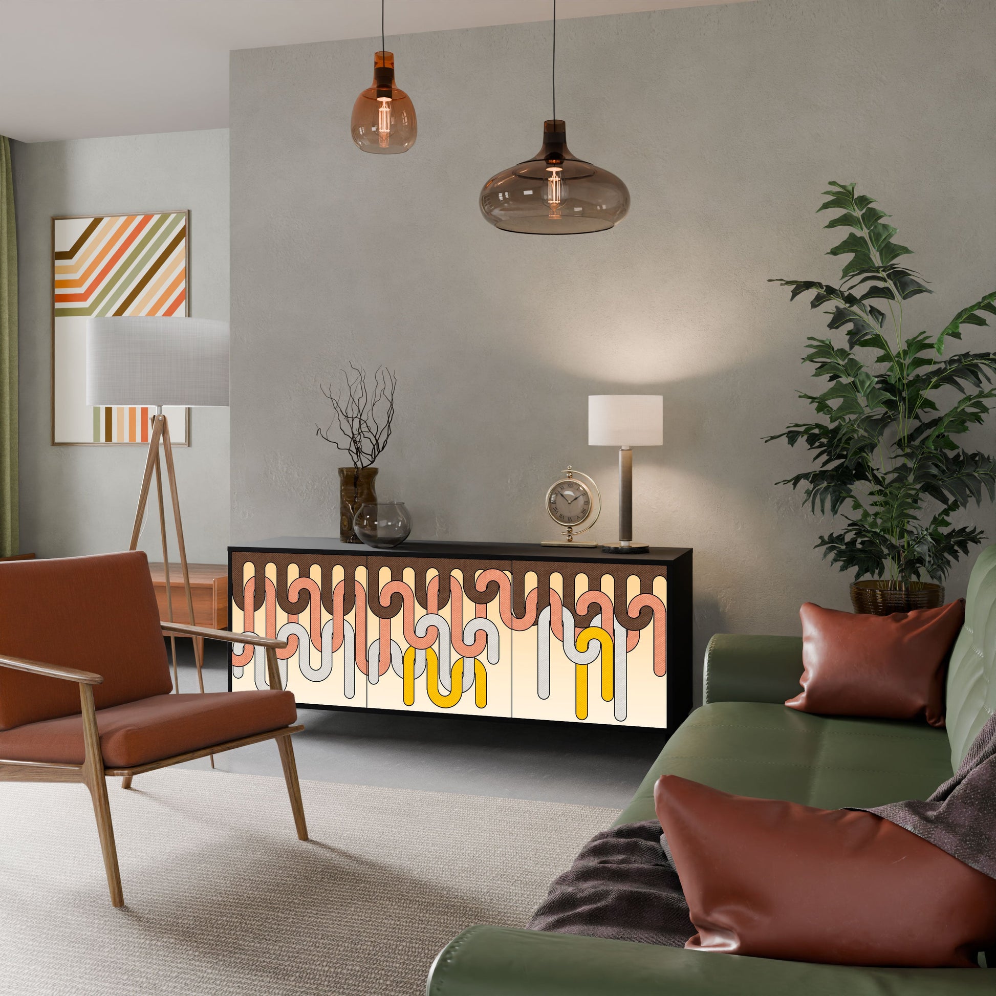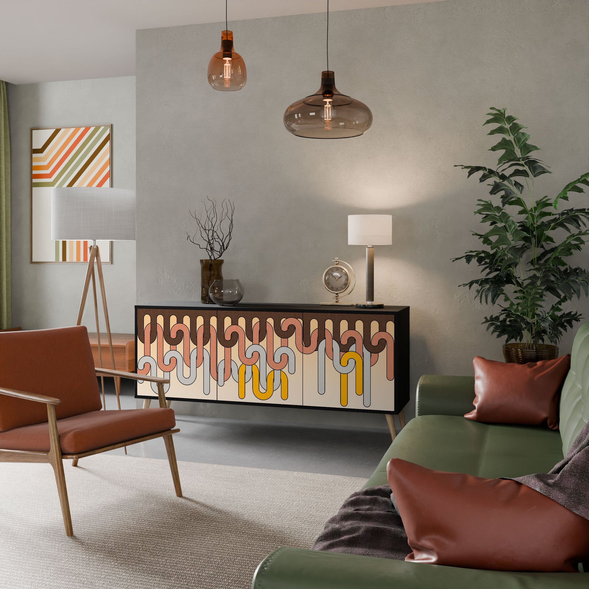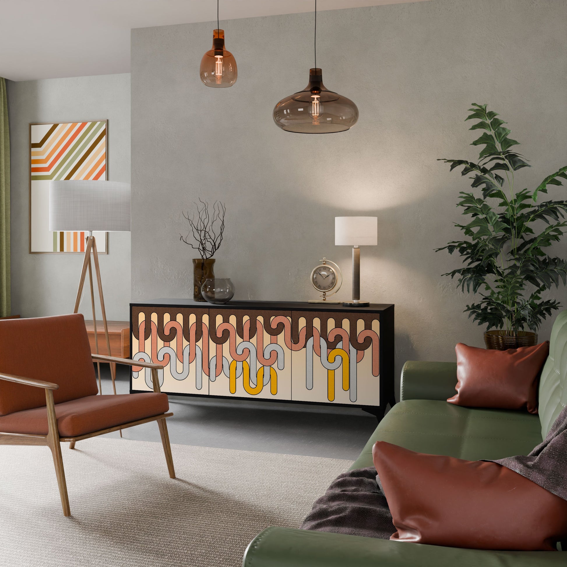 Elegance and functionality in a single piece of furniture – our 3-Door Sideboard with a black body is the perfect solution for lovers of stylish, modern interiors. The black body emphasizes the bold character of the furniture, while the fronts with a unique print add an artistic touch. It fits perfectly in the living room, bedroom, or office, complementing both modern and industrial arrangements.