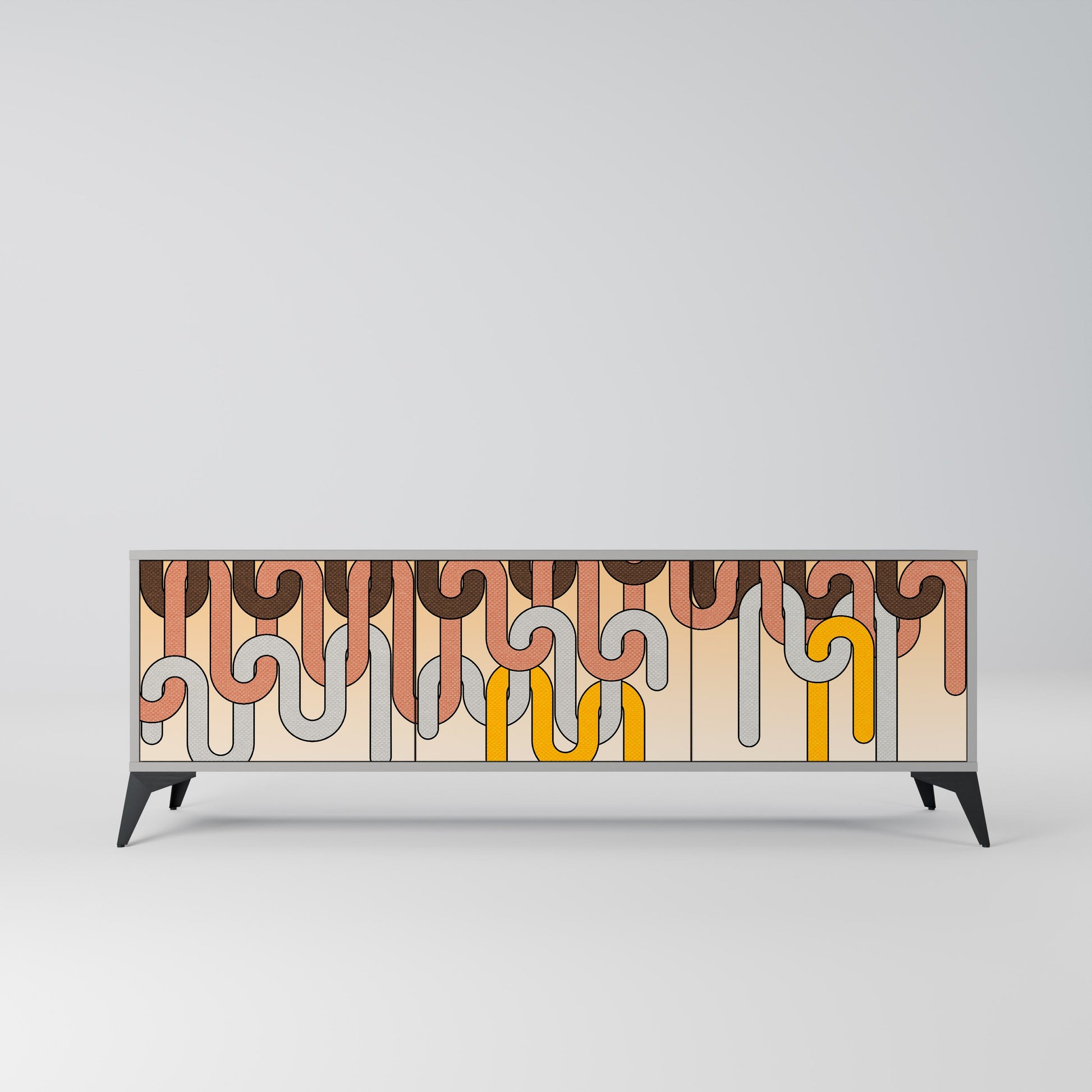 COLORFUL STRINGS 3-Door TV Stand in Grey Finish