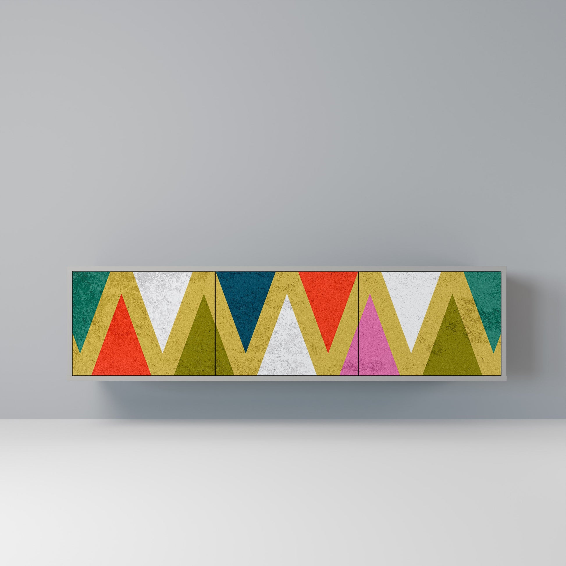 COLORFUL TRIANGLES 3-Door TV Stand in Grey Finish