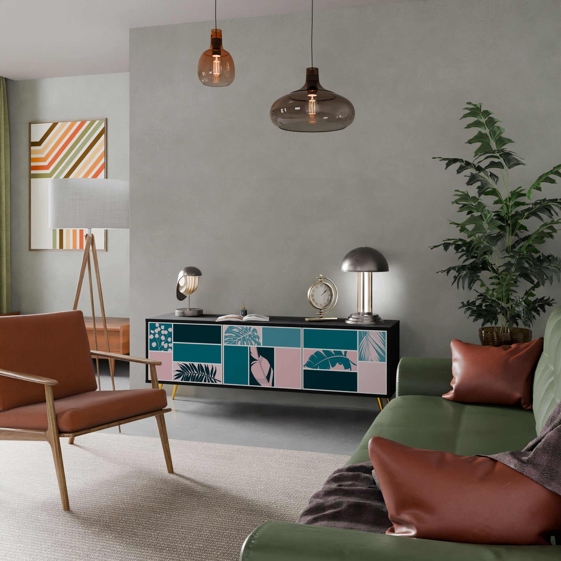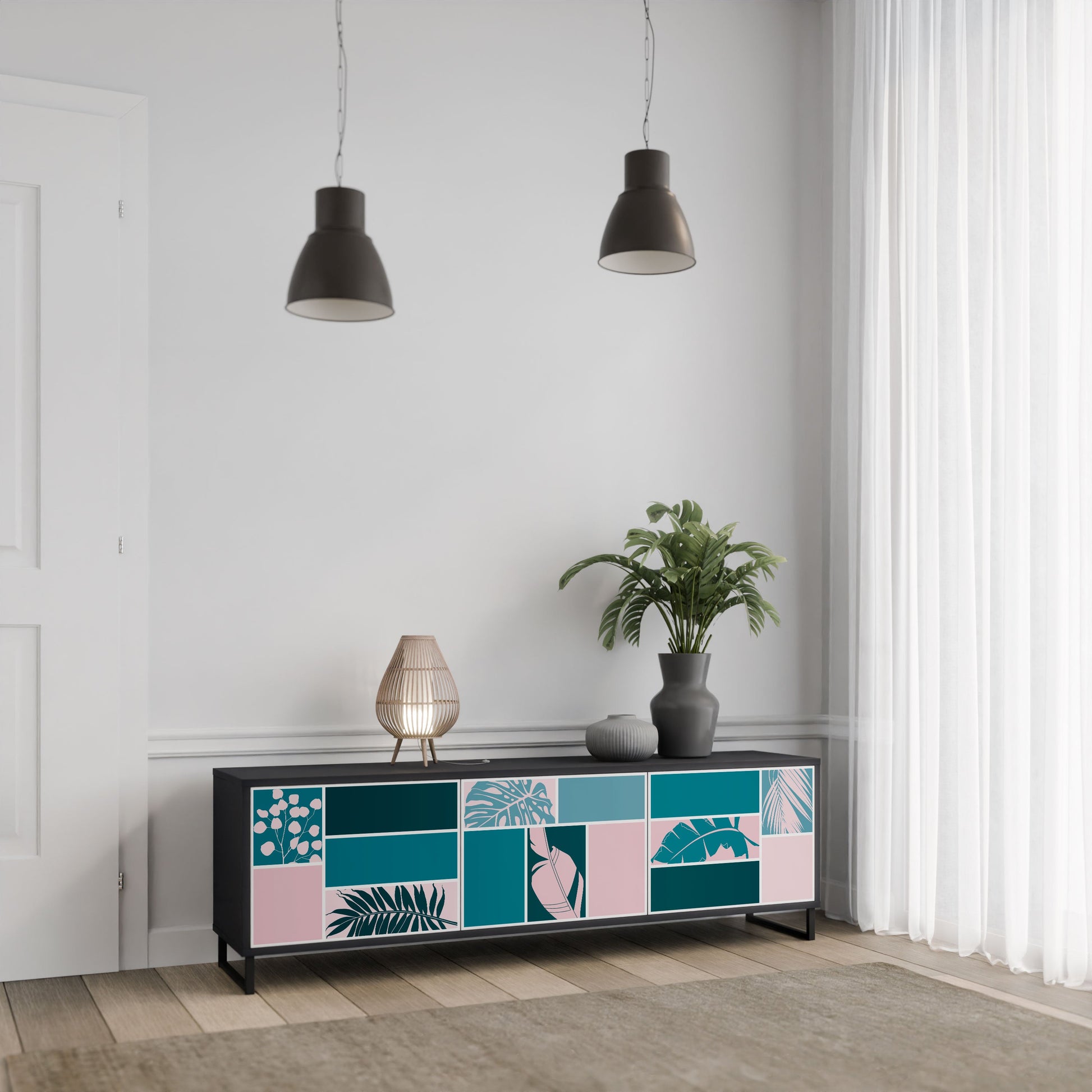The black body of the stand creates a bold, modern accent that pairs beautifully with industrial and minimalist arrangements. The fronts with a designer print add character and uniqueness, making this piece not only practical but also a standout decorative element.