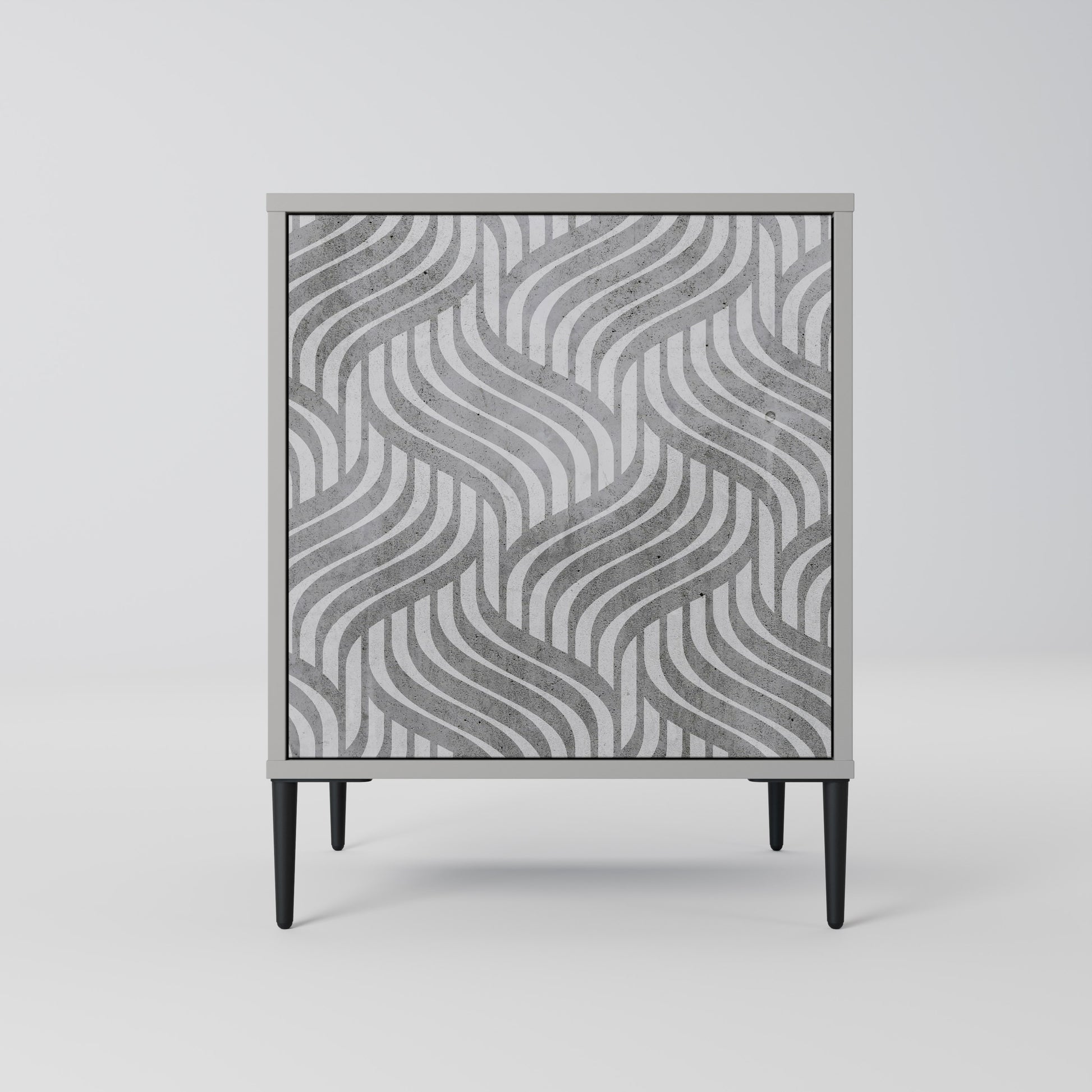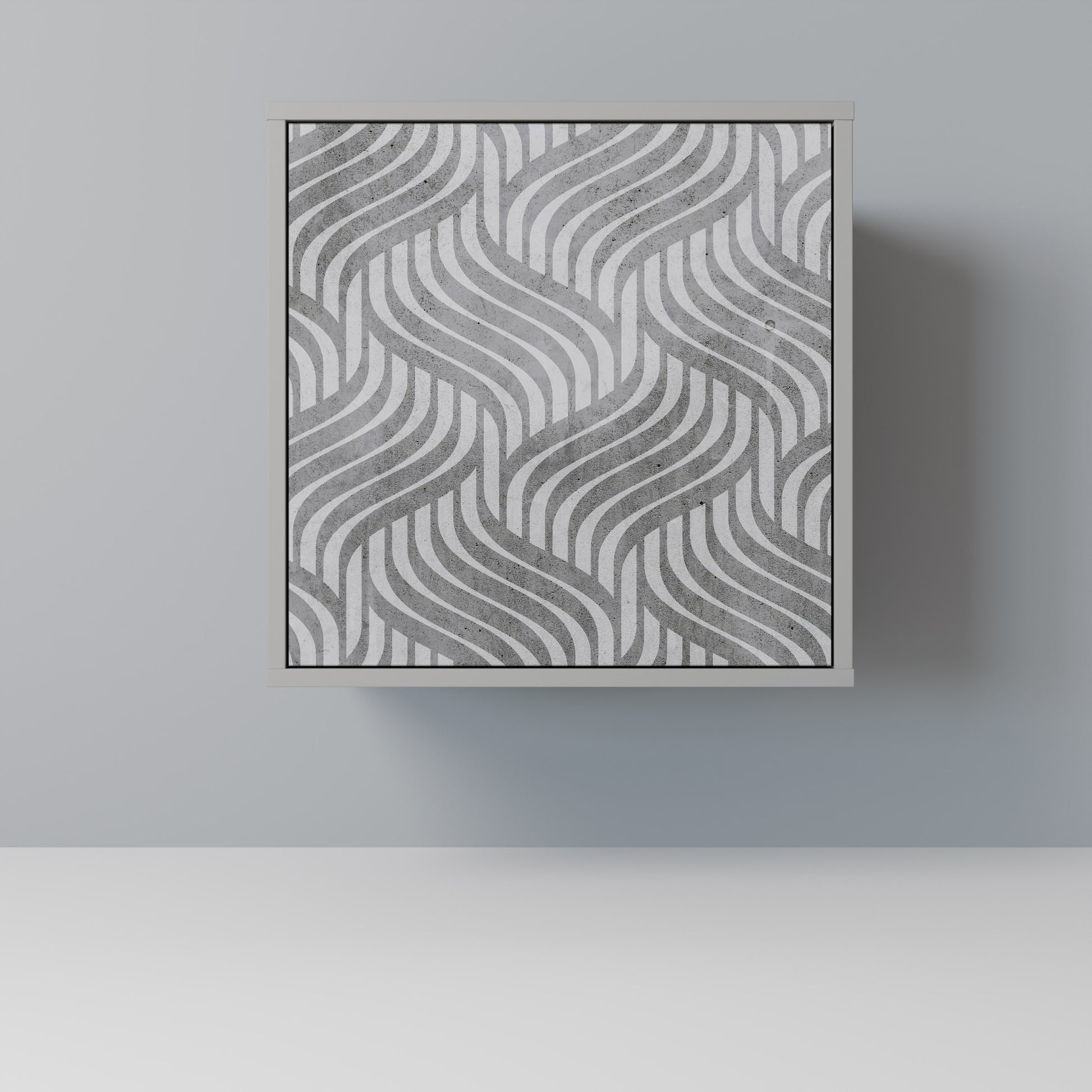 This compact yet remarkably elegant piece of furniture impresses with its minimalist design, perfectly fitting into both modern and classic interiors. The subdued grey color of the body gives the furniture a subtle yet distinctive character, while the fronts with a unique print add an artistic touch.