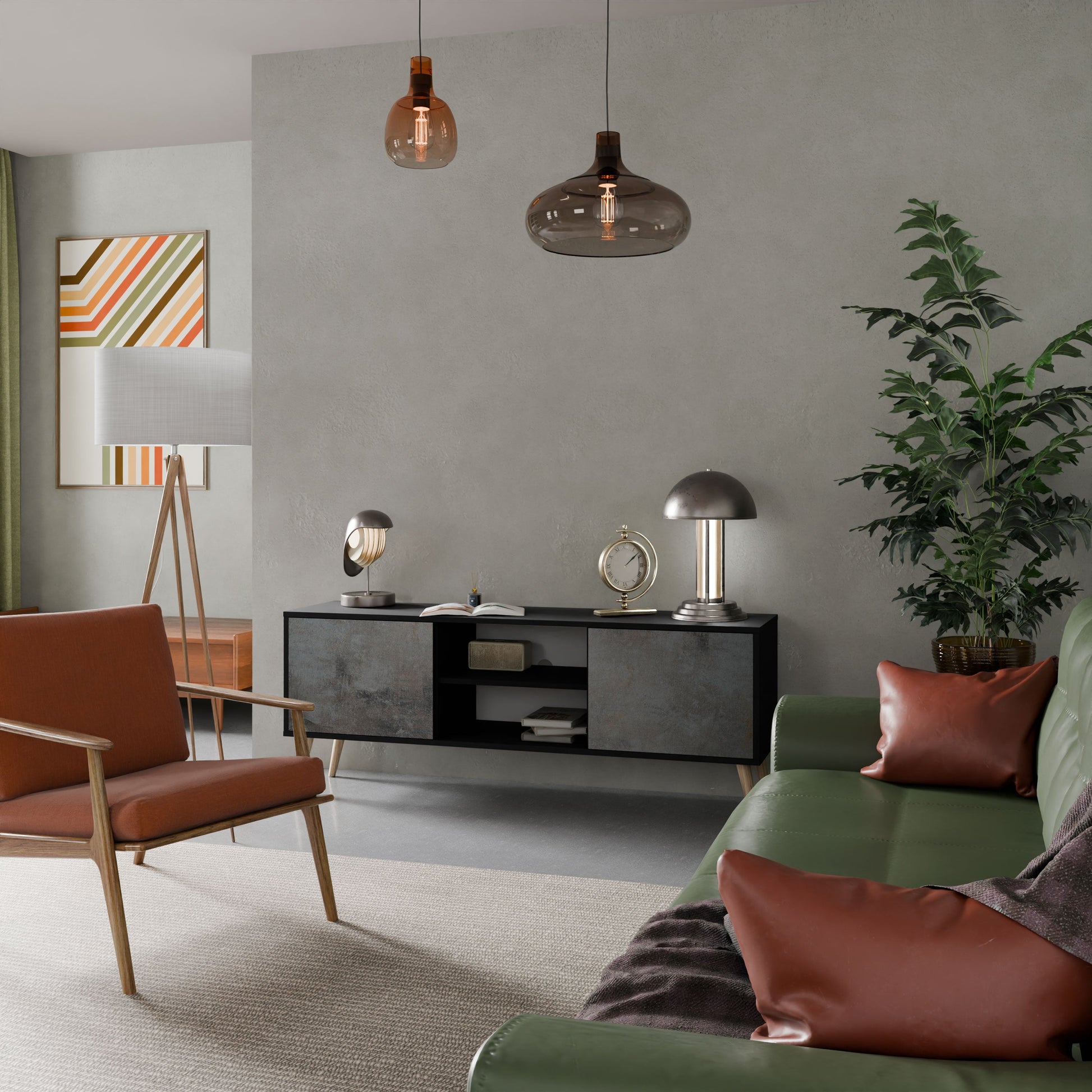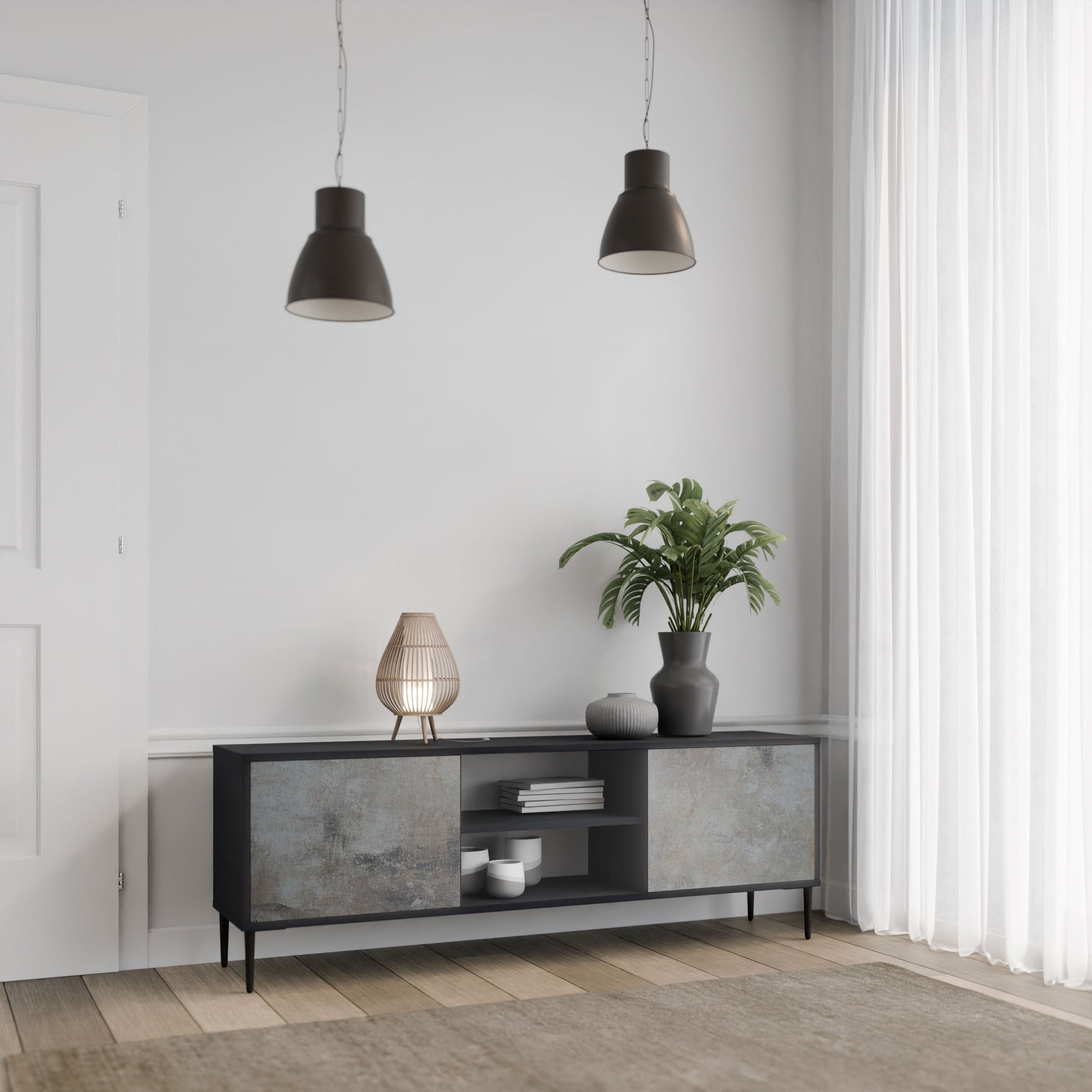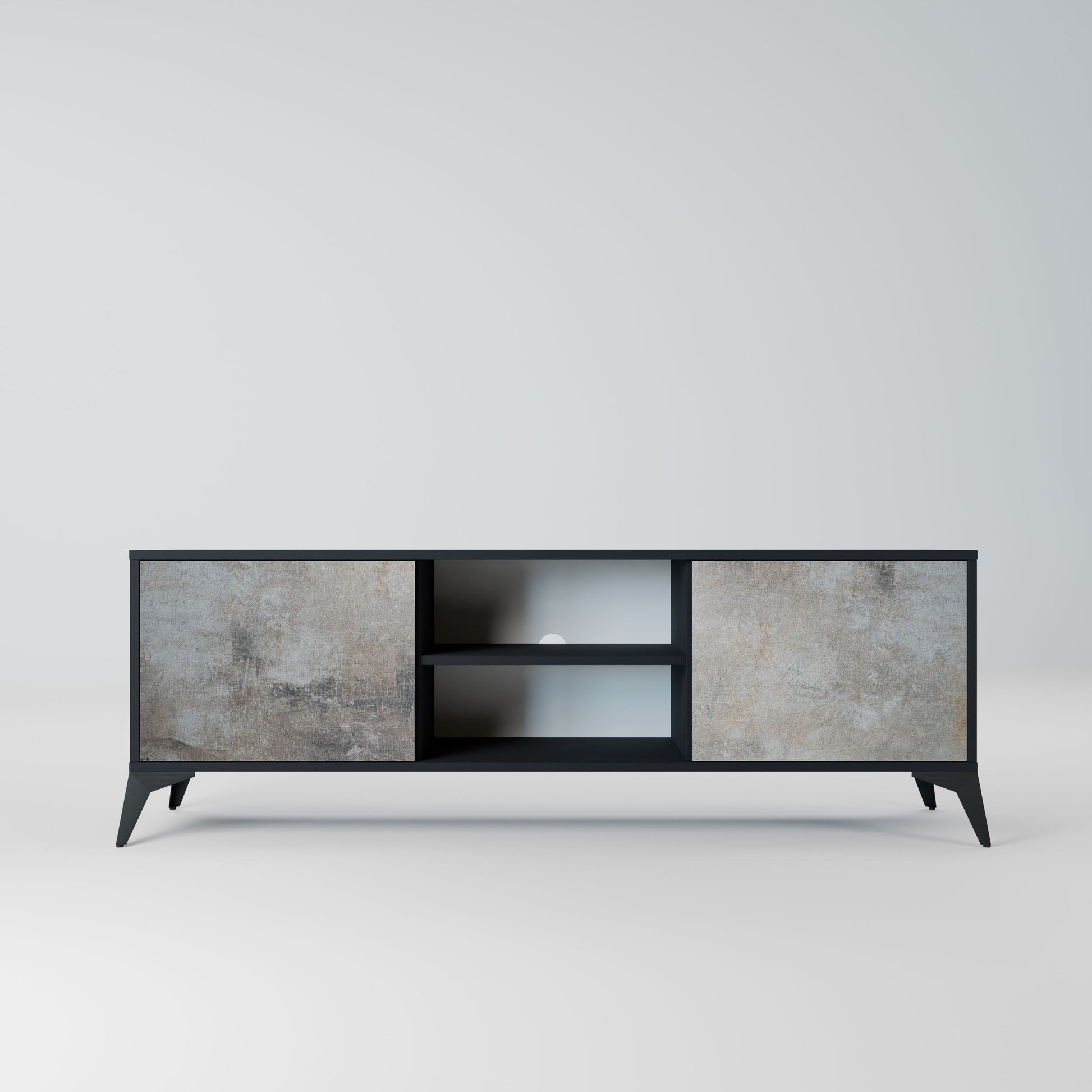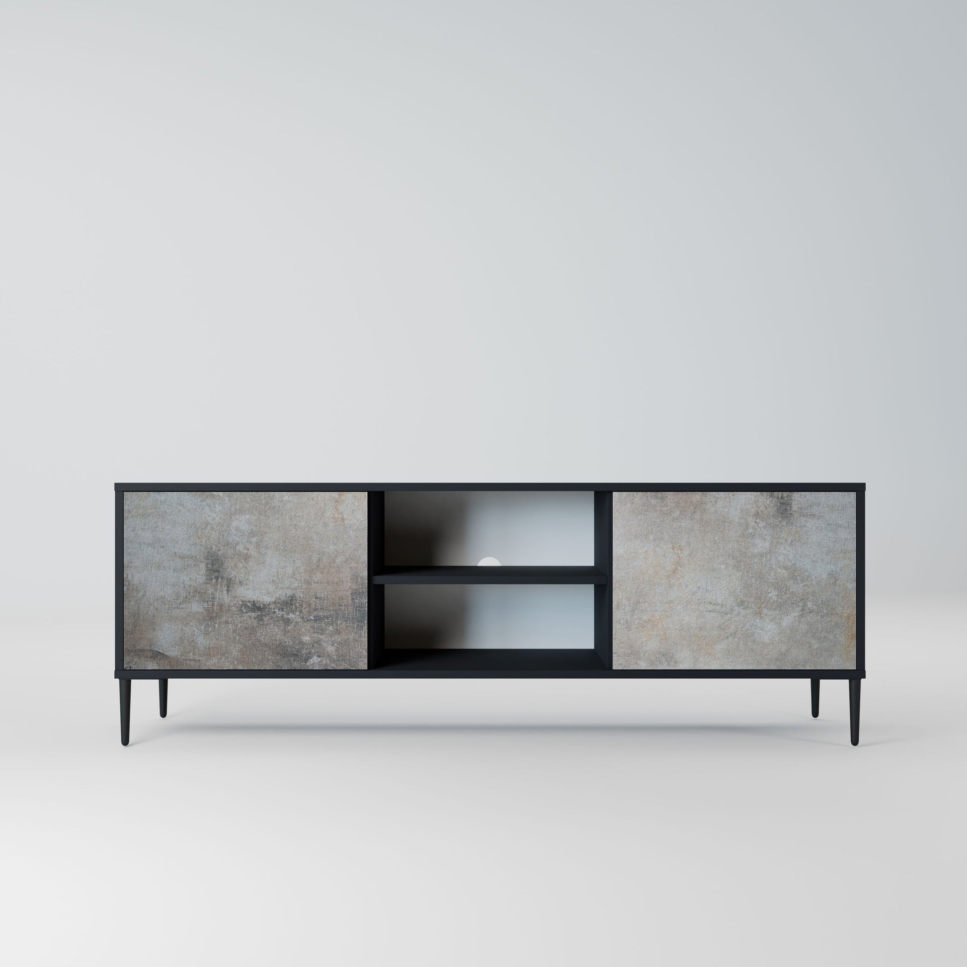 CONCRETE WALL 2-Door TV Stand in Black Finish