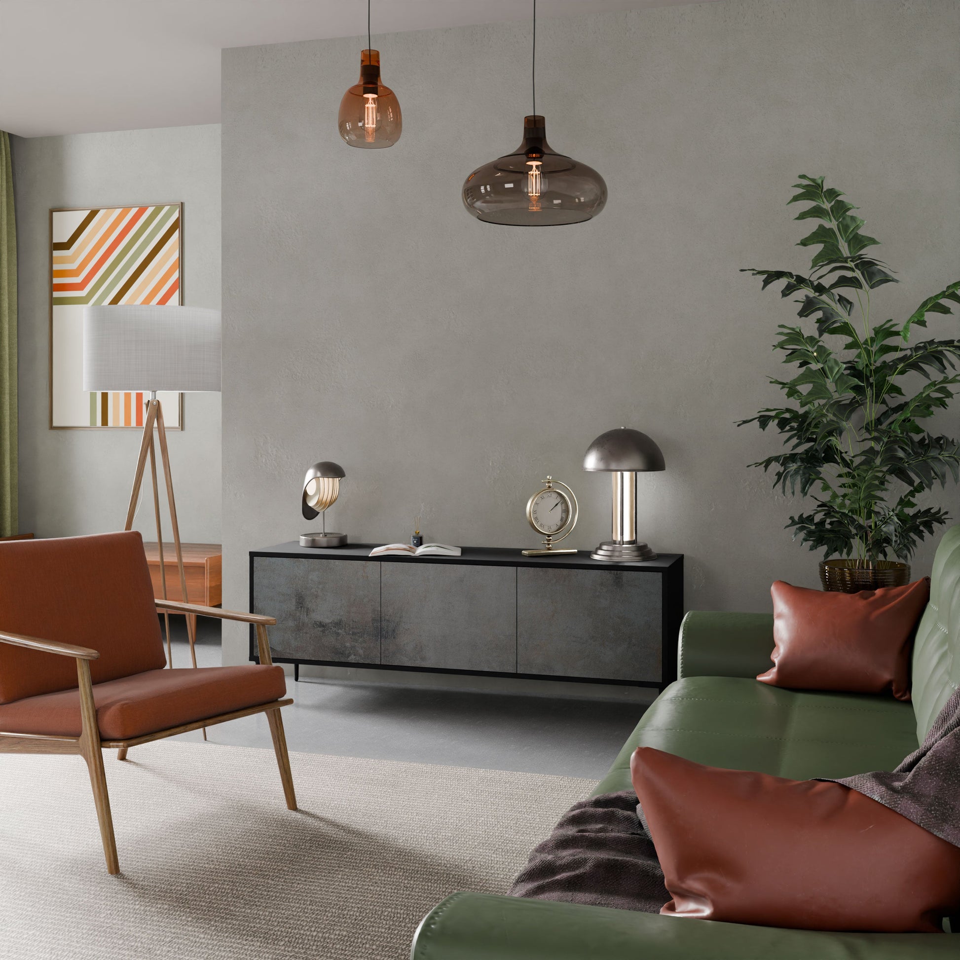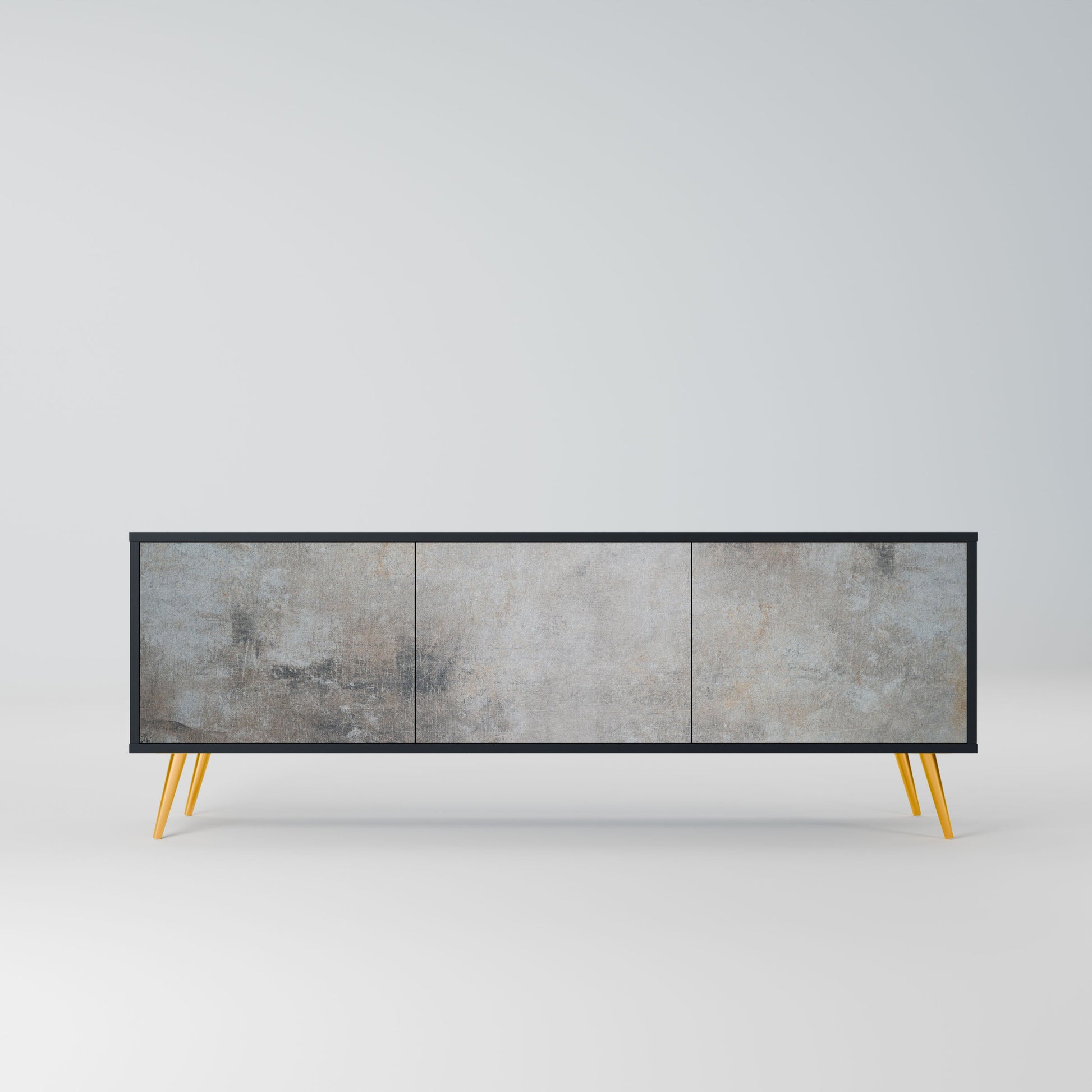 CONCRETE WALL 3-Door TV Stand in Black Finish