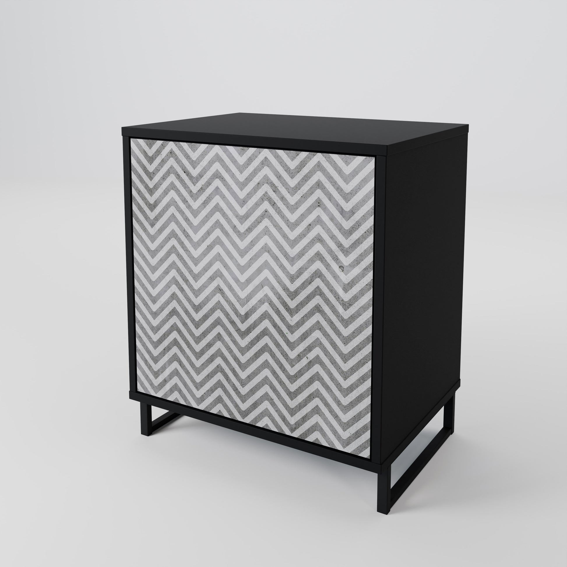 CONCRETE ZIG ZAG 1-Door Sideboard in Black Finish