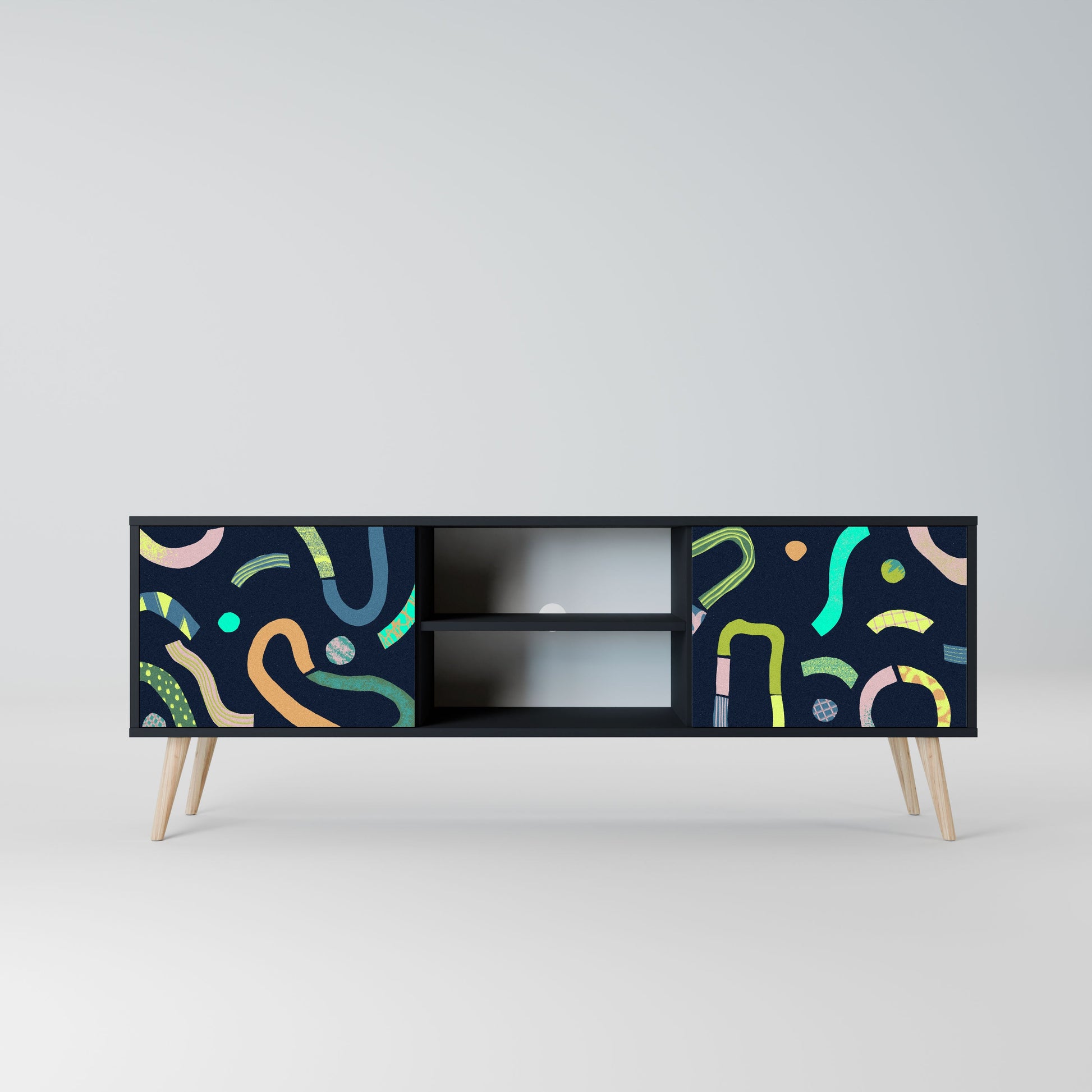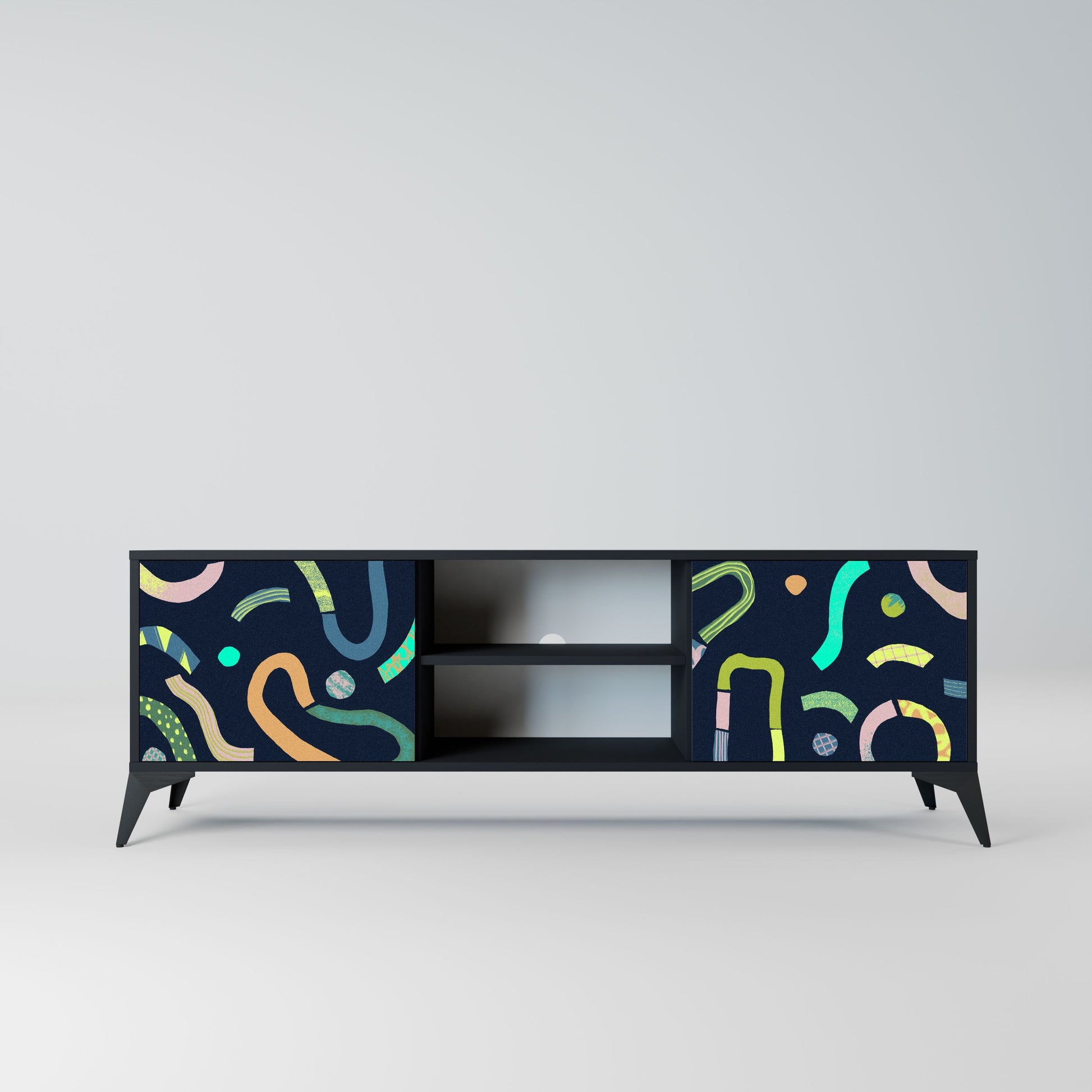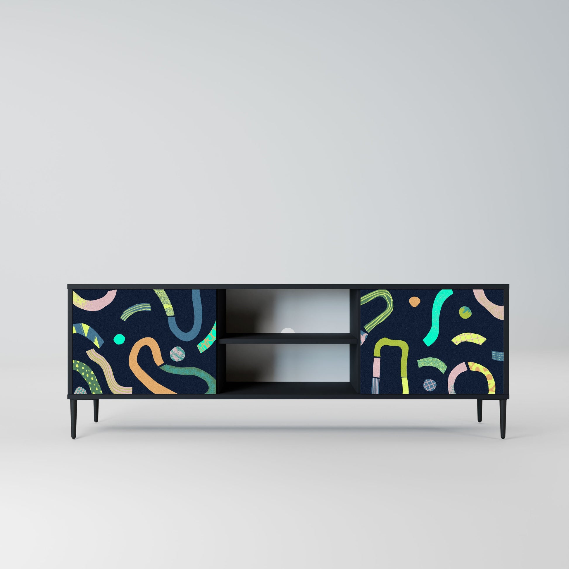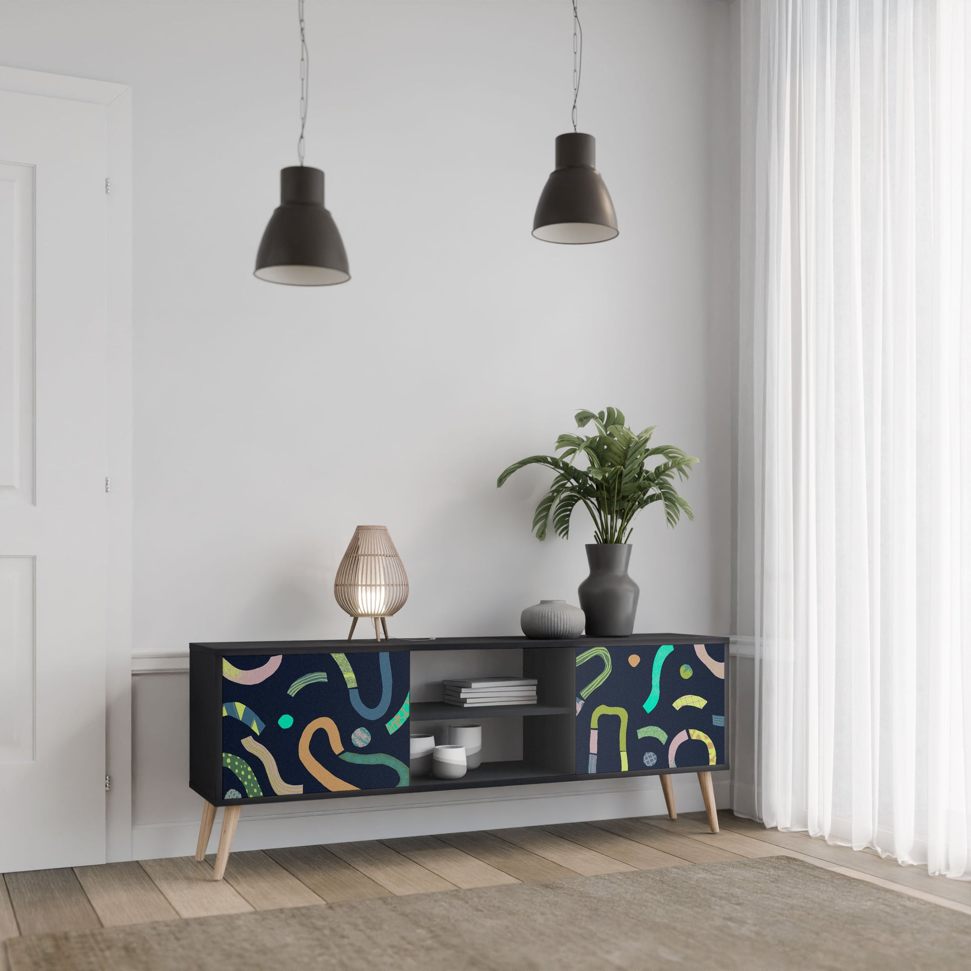 The black body gives the TV stand an elegant, modern look, while the fronts with an exceptional print draw attention, making it the focal point of any room. The spacious interior provides room for electronic devices, cables, remotes, and other accessories, helping you maintain order and organization.