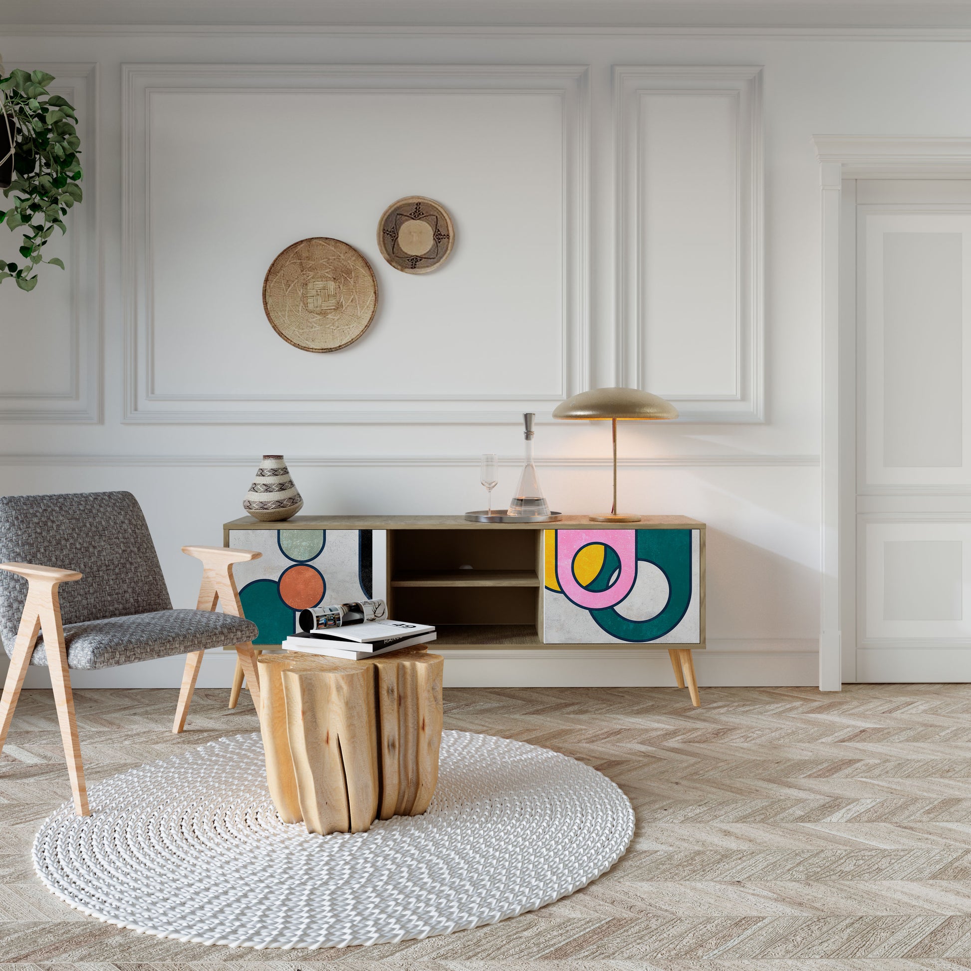 We invite you to discover our 2-door TV stand that combines simplicity with exceptional style. Made from the highest-quality materials, this elegant piece in oak tones, featuring wooden doors with a printed finish, is the perfect addition to any modern living room.