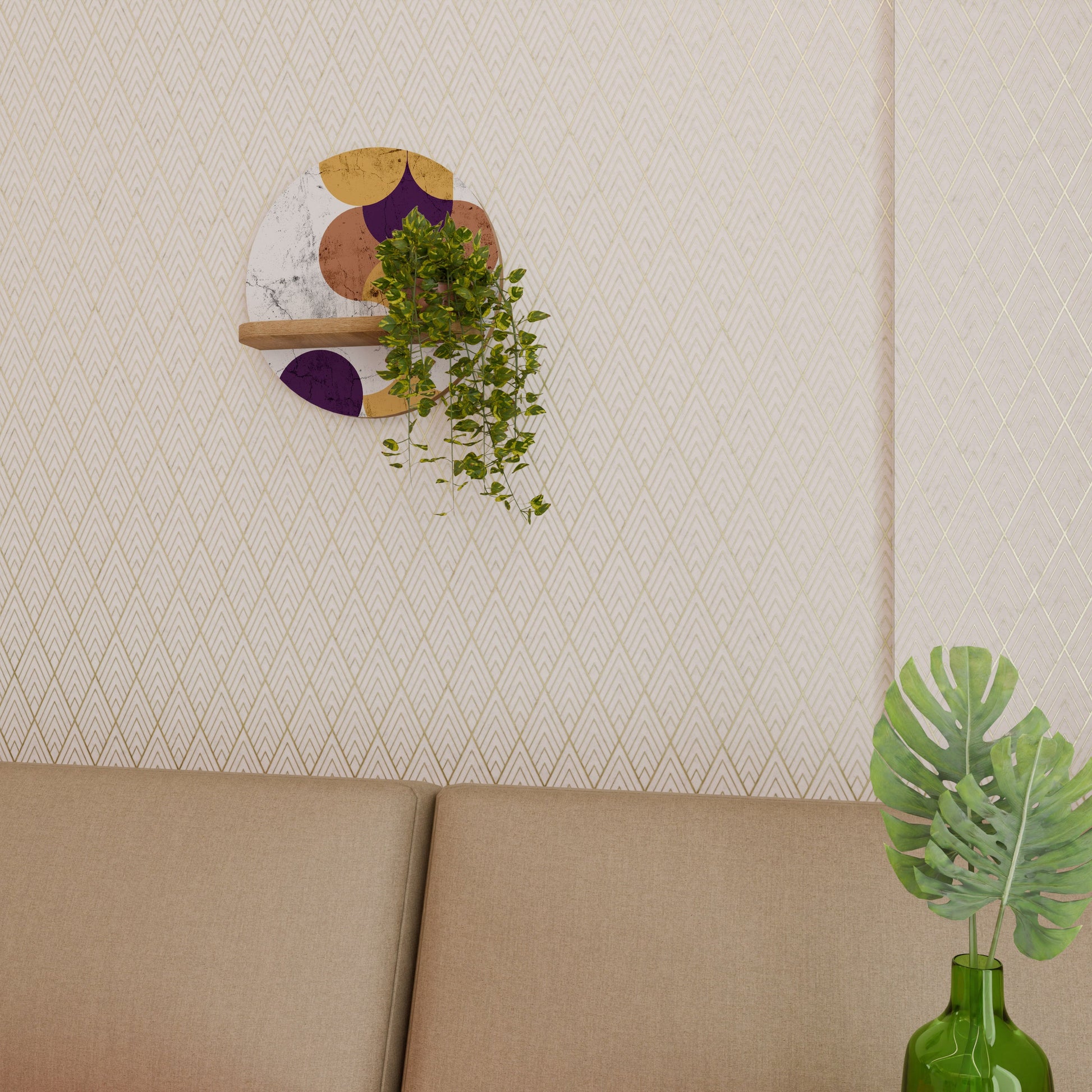 CRACKED GEOMETRY Round Art Shelf In Oak Effect