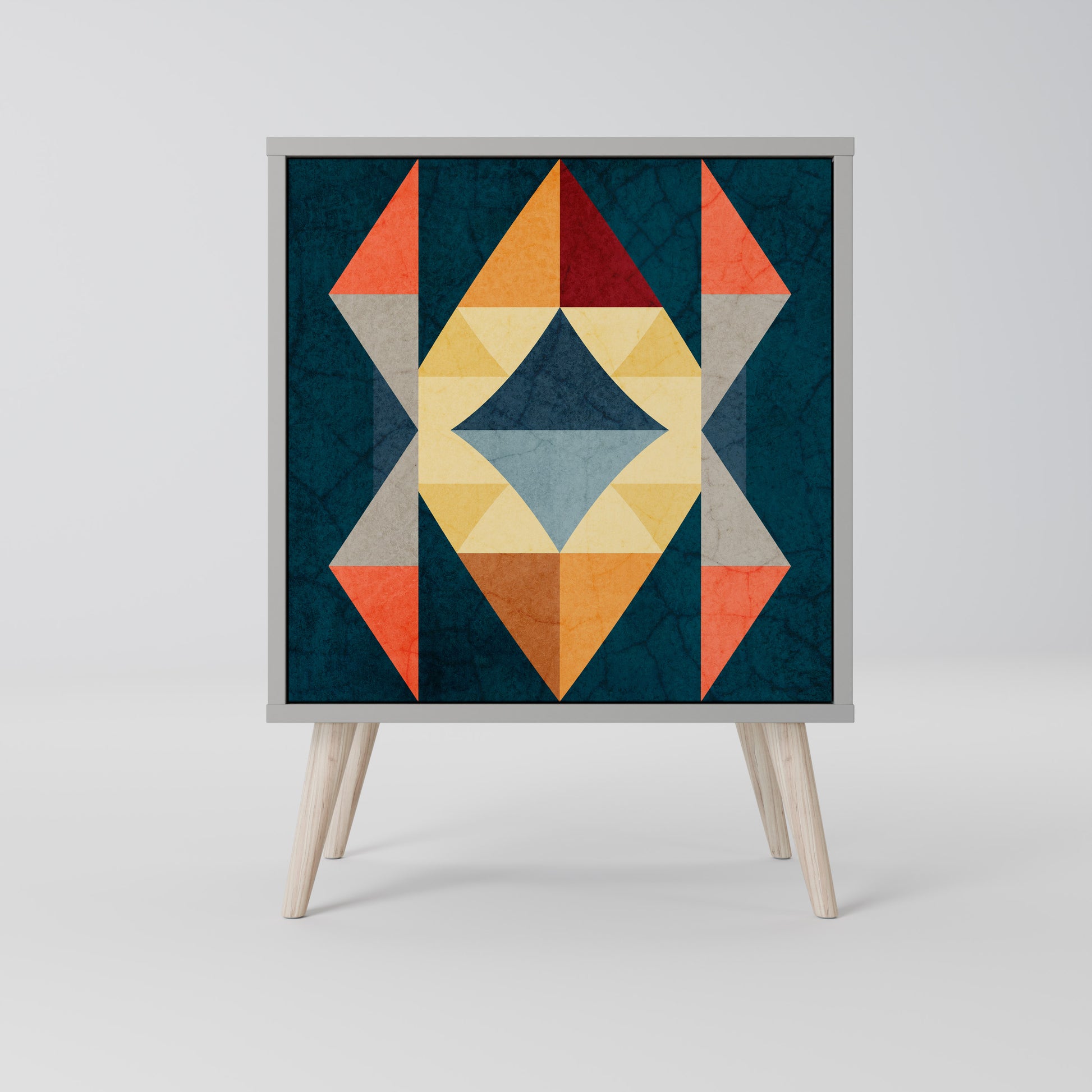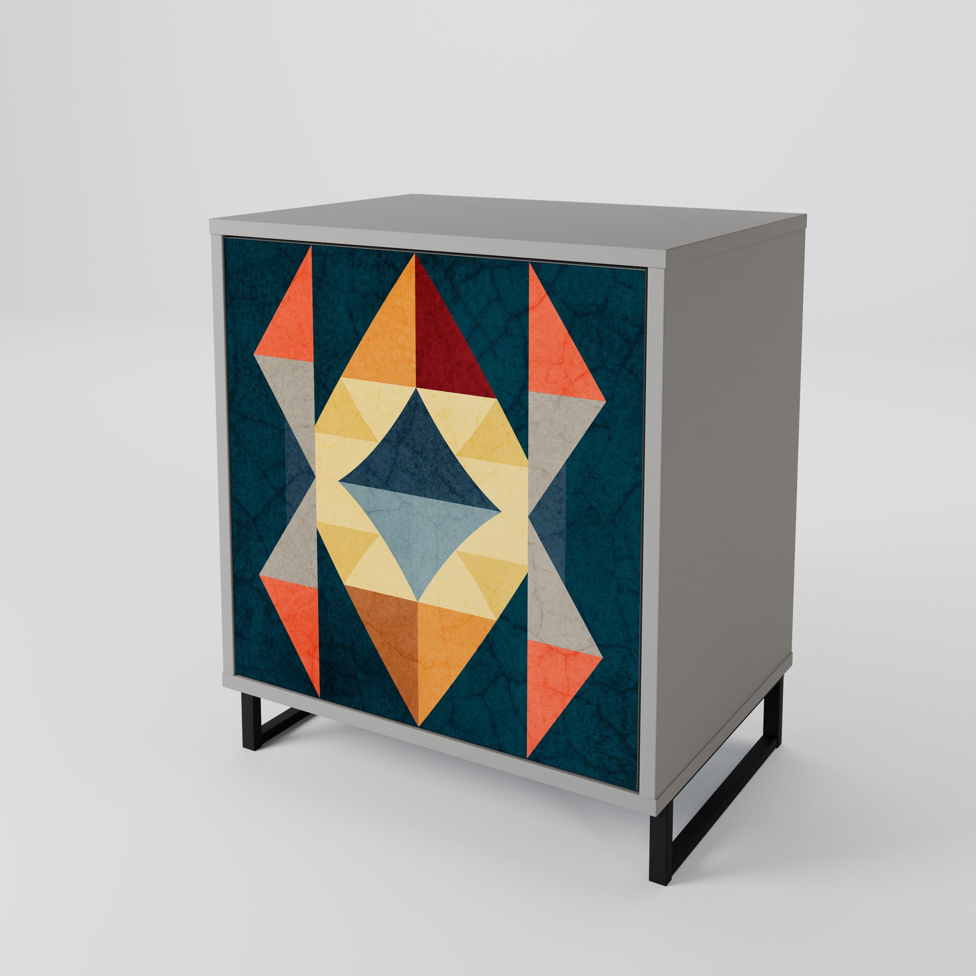 This compact yet remarkably elegant piece of furniture impresses with its minimalist design, perfectly fitting into both modern and classic interiors. The subdued grey color of the body gives the furniture a subtle yet distinctive character, while the fronts with a unique print add an artistic touch.