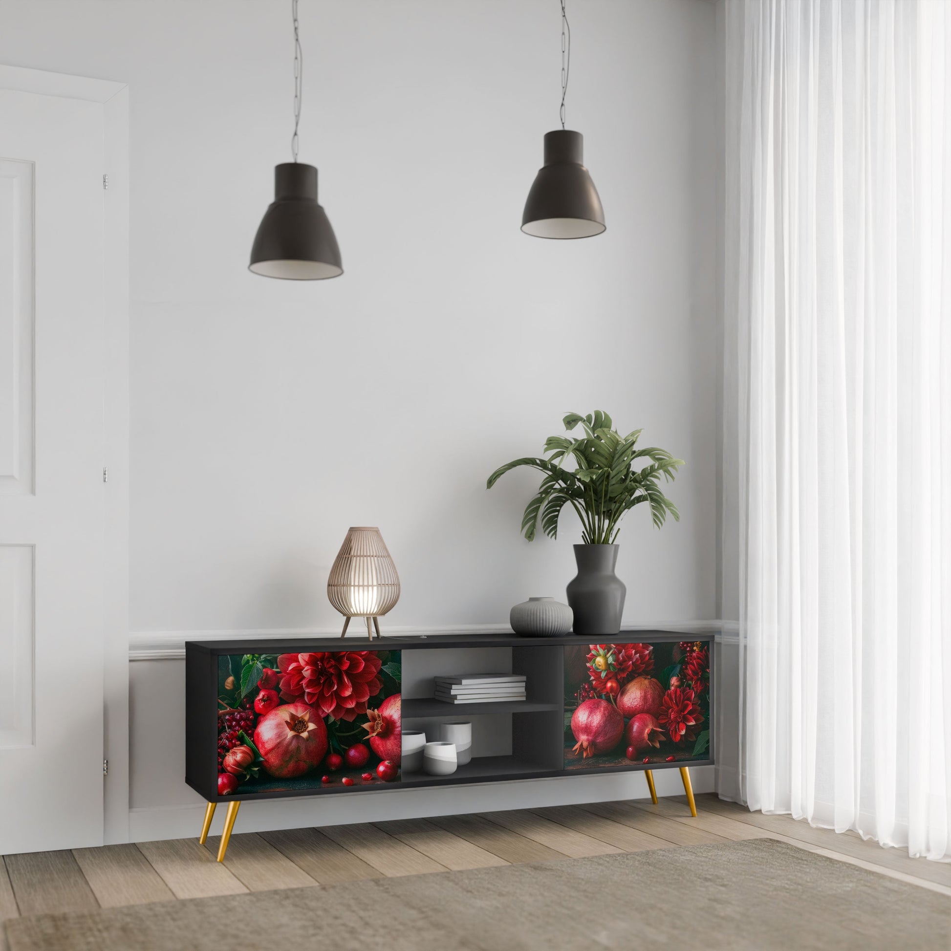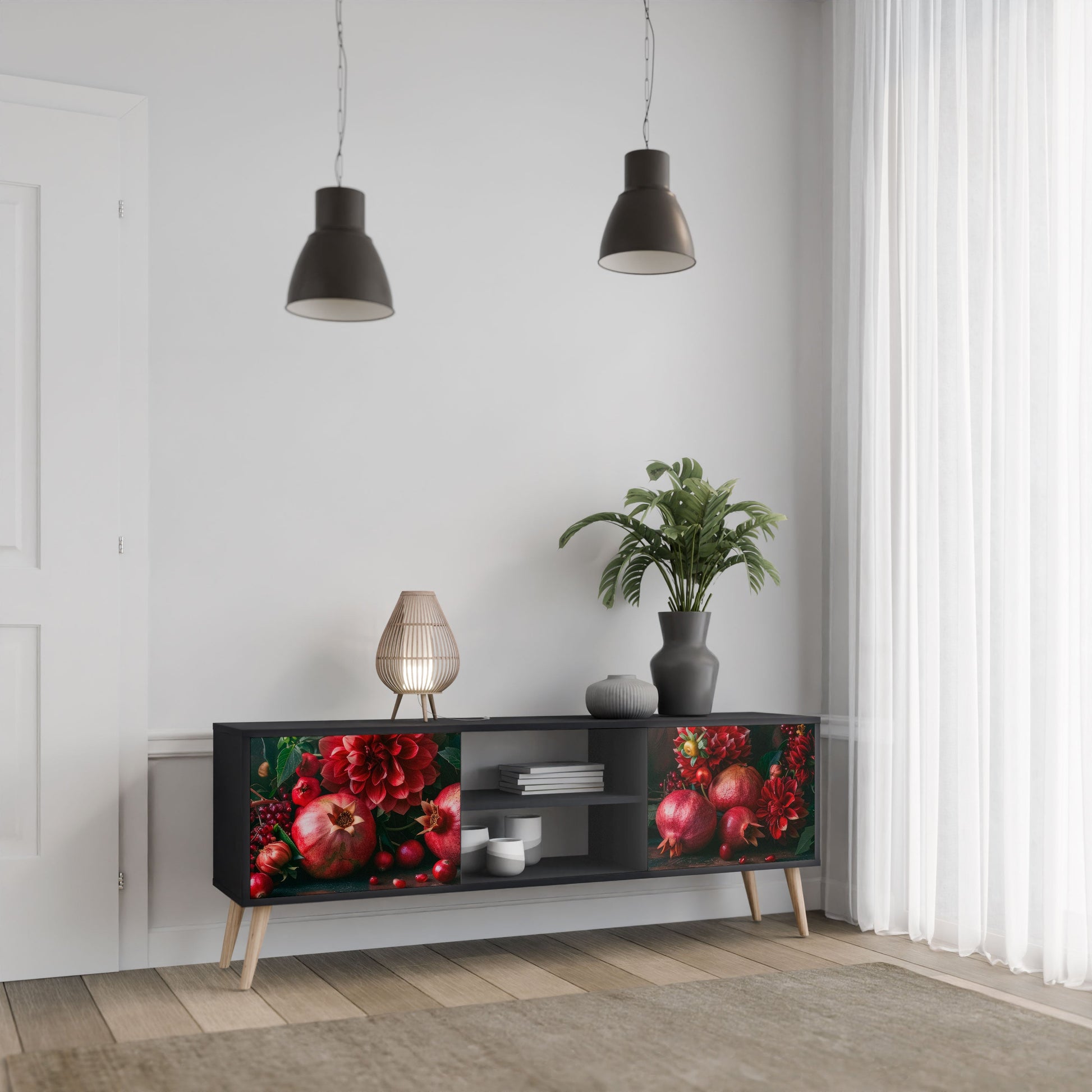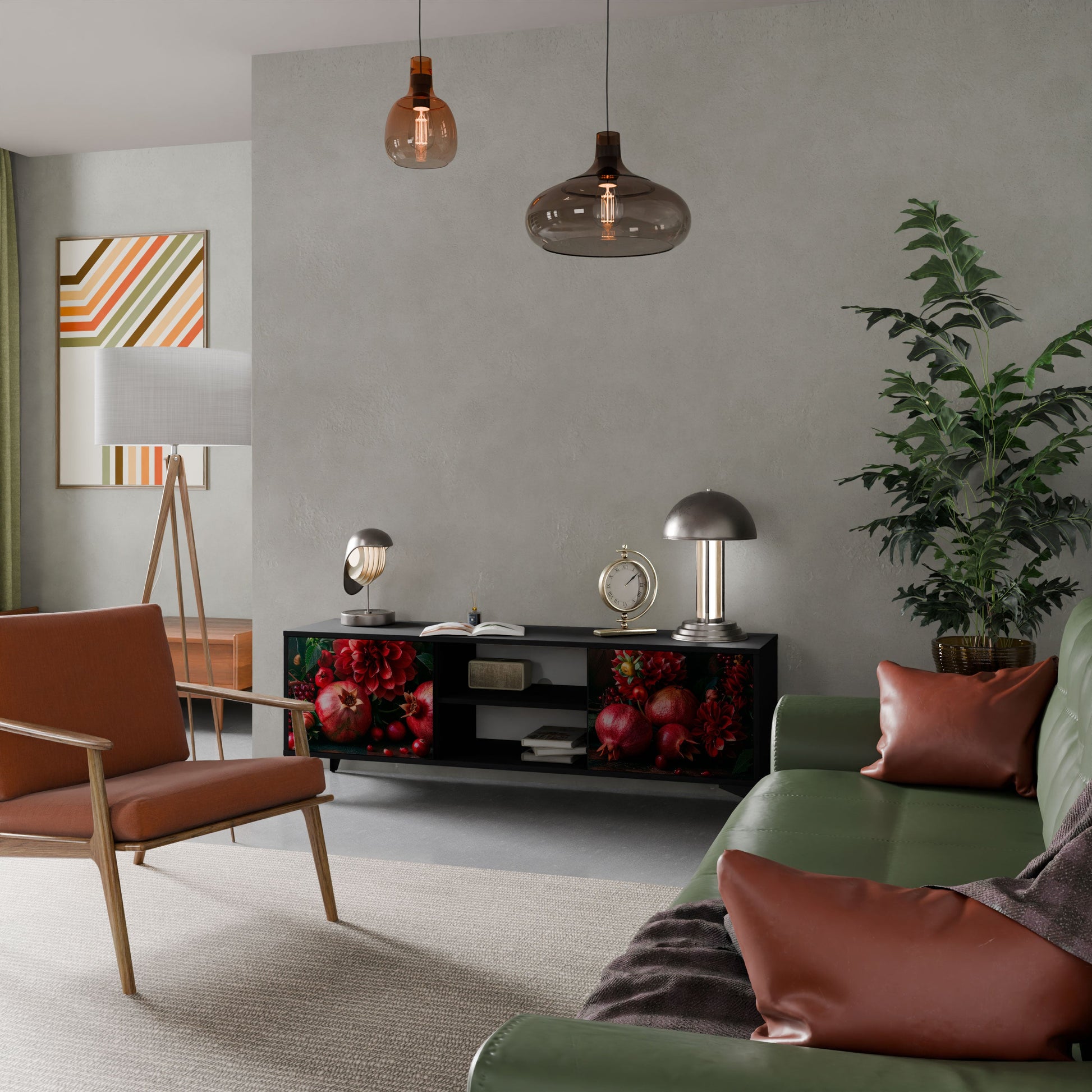 DAHLIAS AND POMEGRANATES 2-Door TV Stand in Black Finish