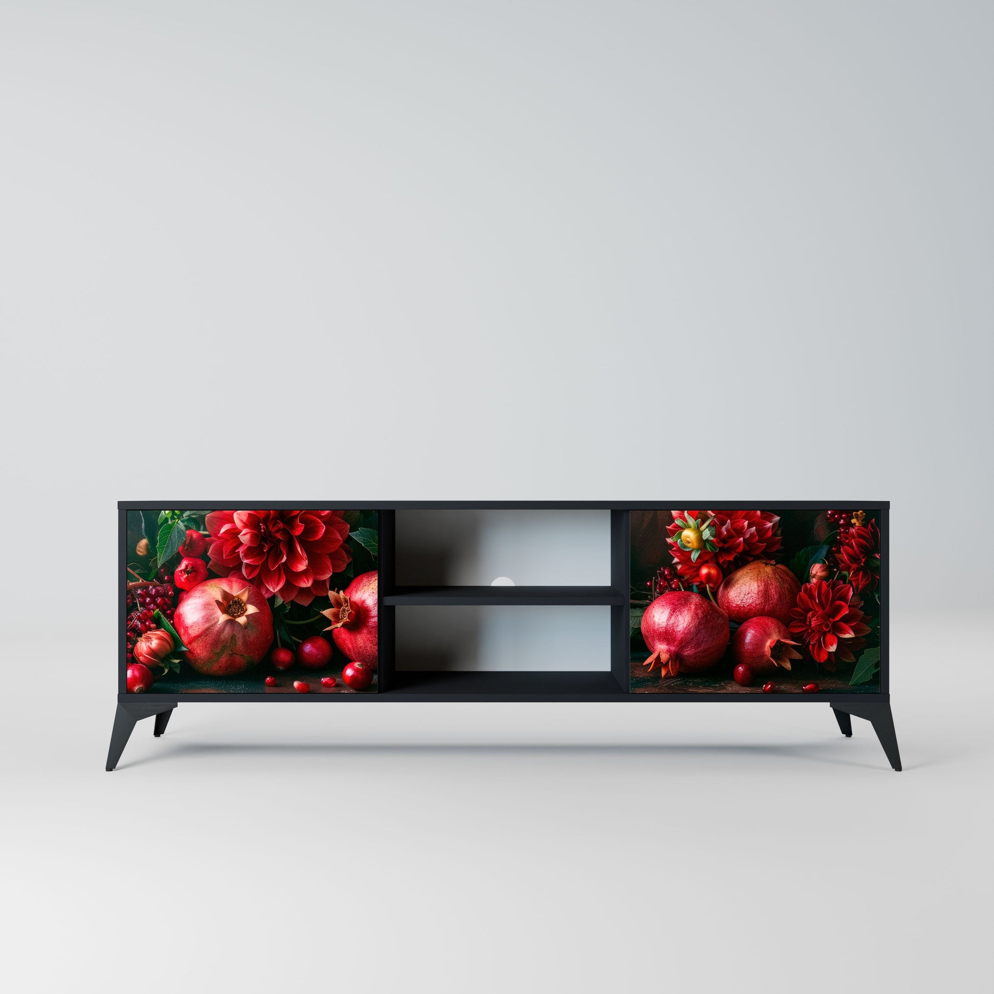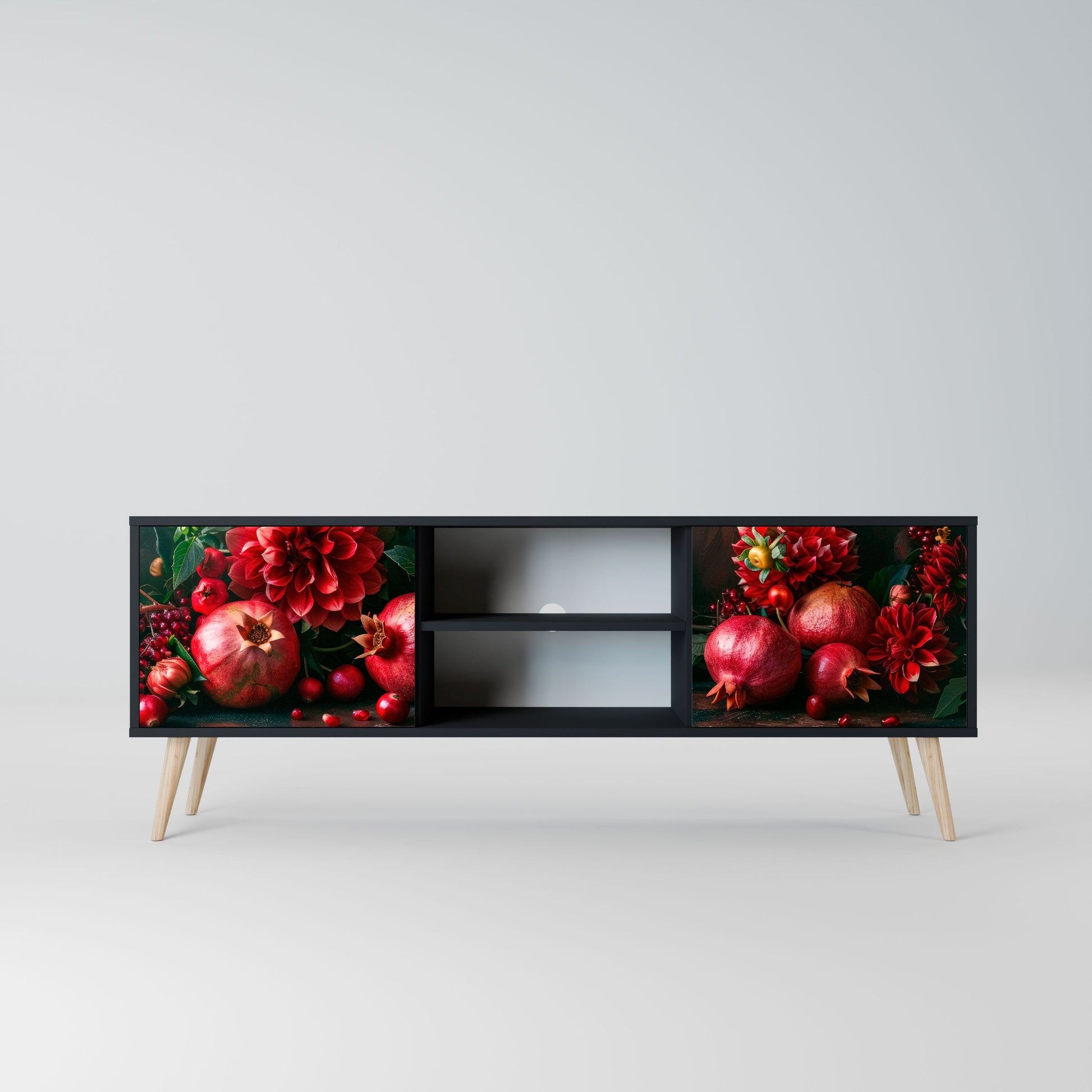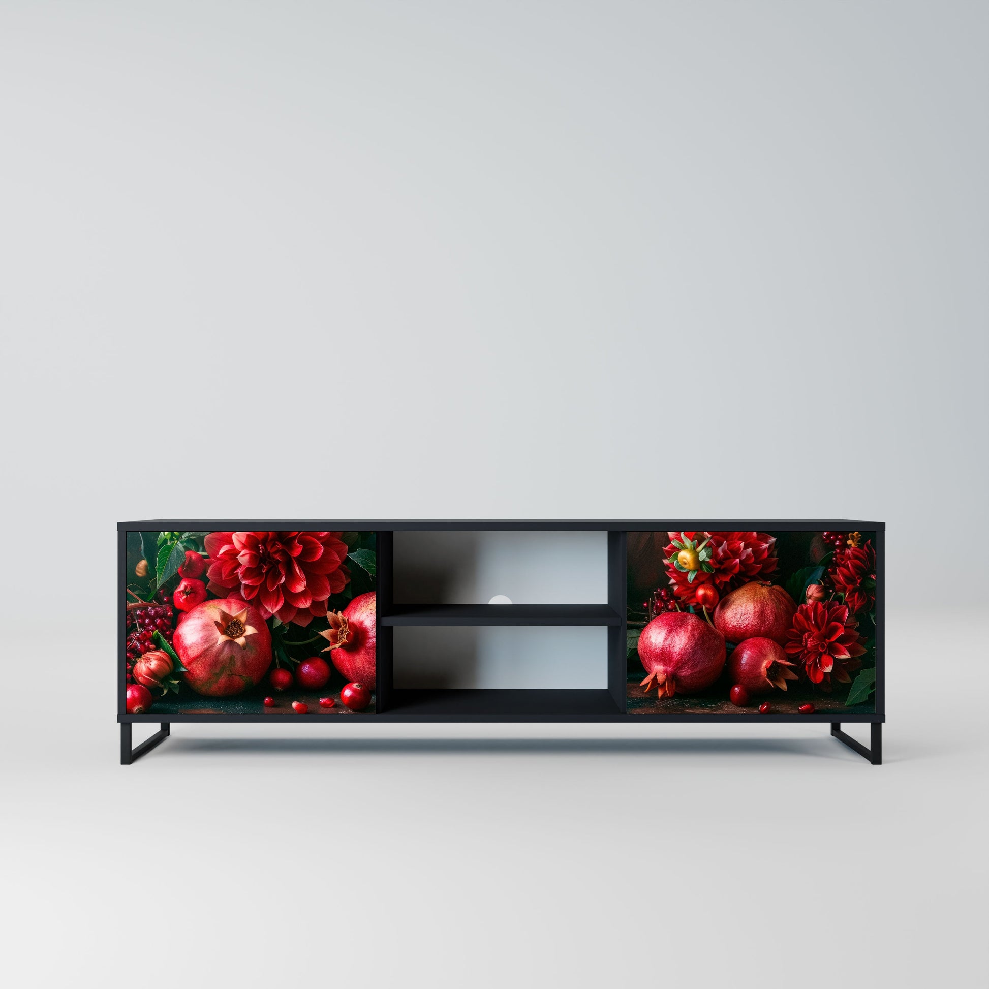 DAHLIAS AND POMEGRANATES 2-Door TV Stand in Black Finish