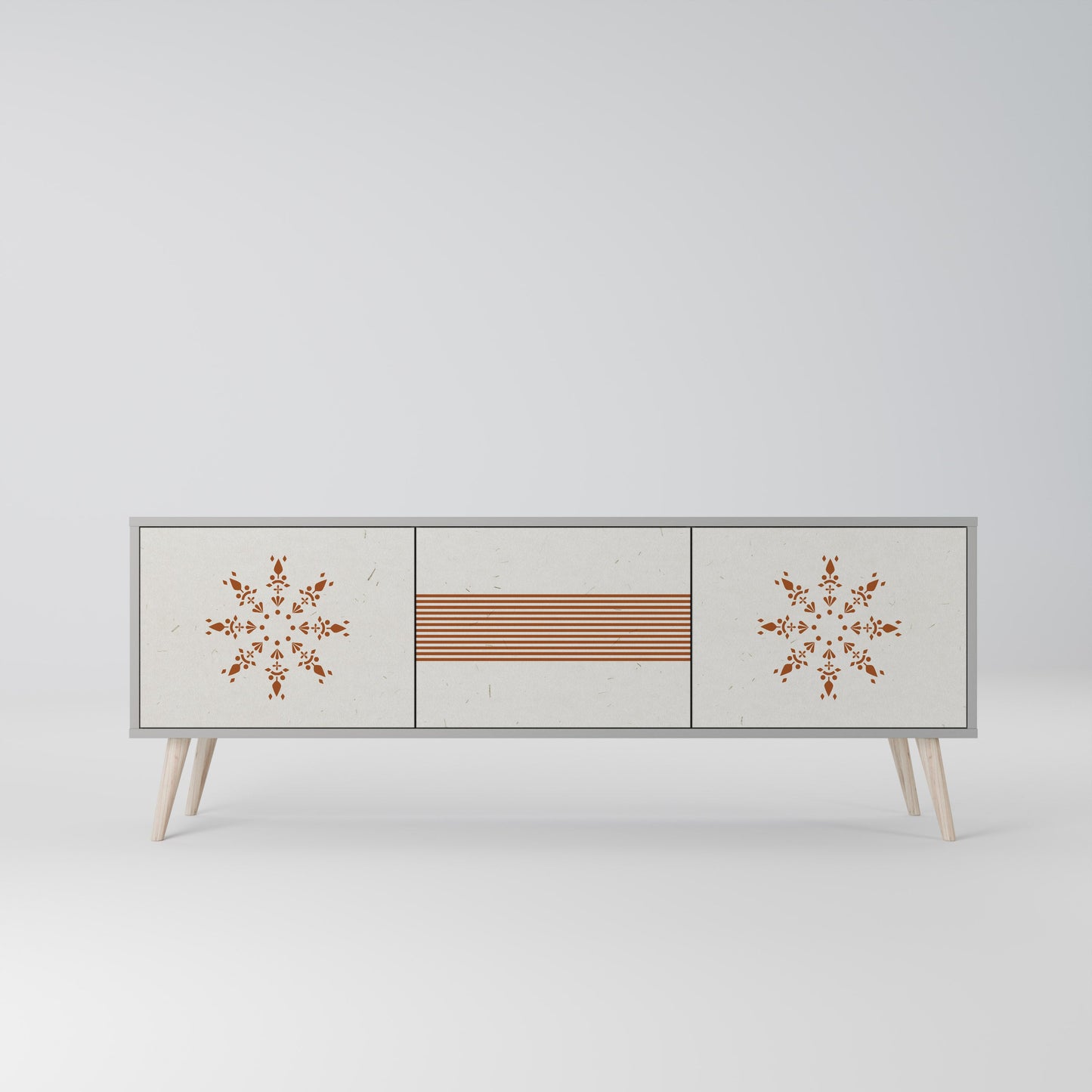 The grey body of the stand creates a refined, modern accent that pairs beautifully with industrial and minimalist arrangements. The fronts with a designer print add character and uniqueness, making this piece not only practical but also a standout decorative element.