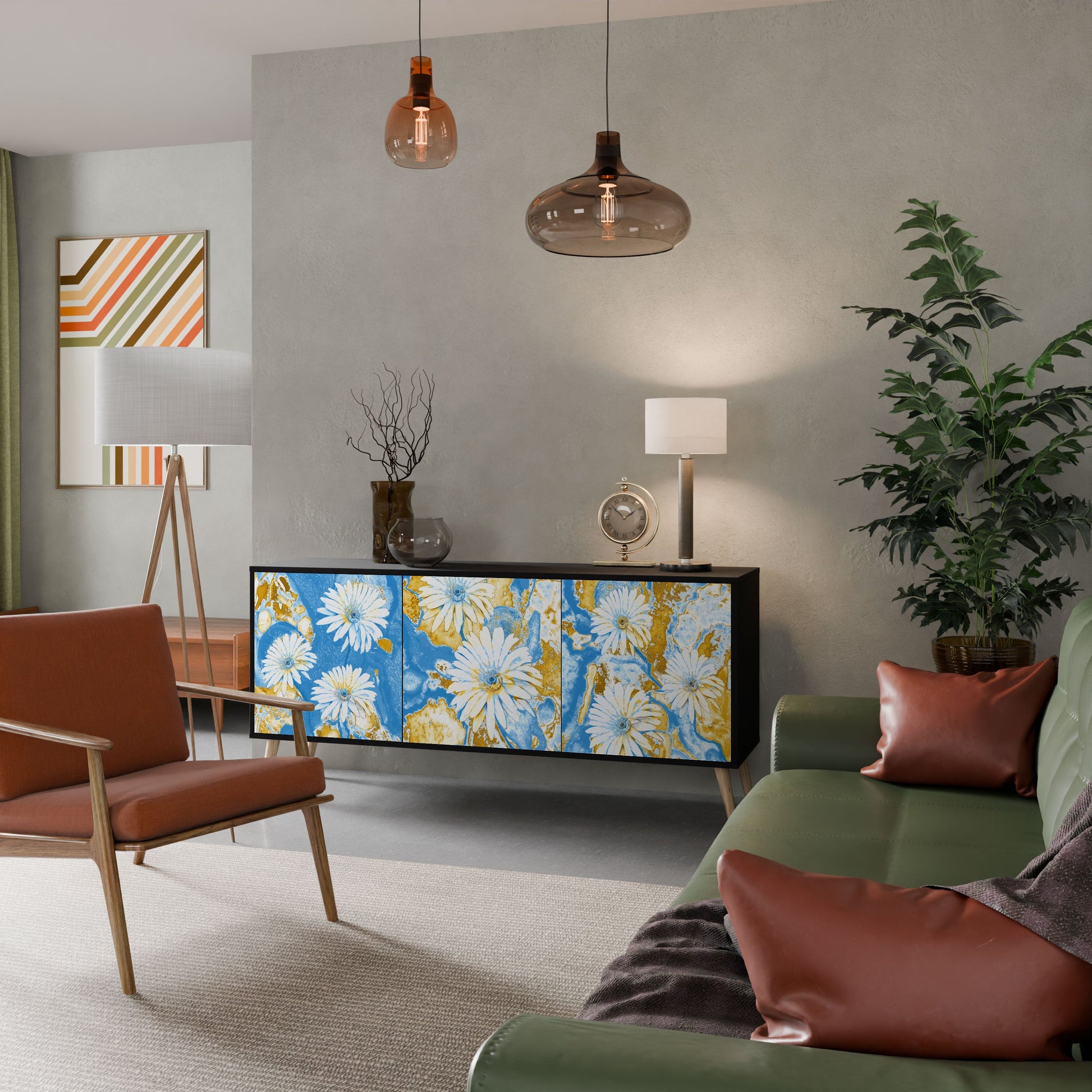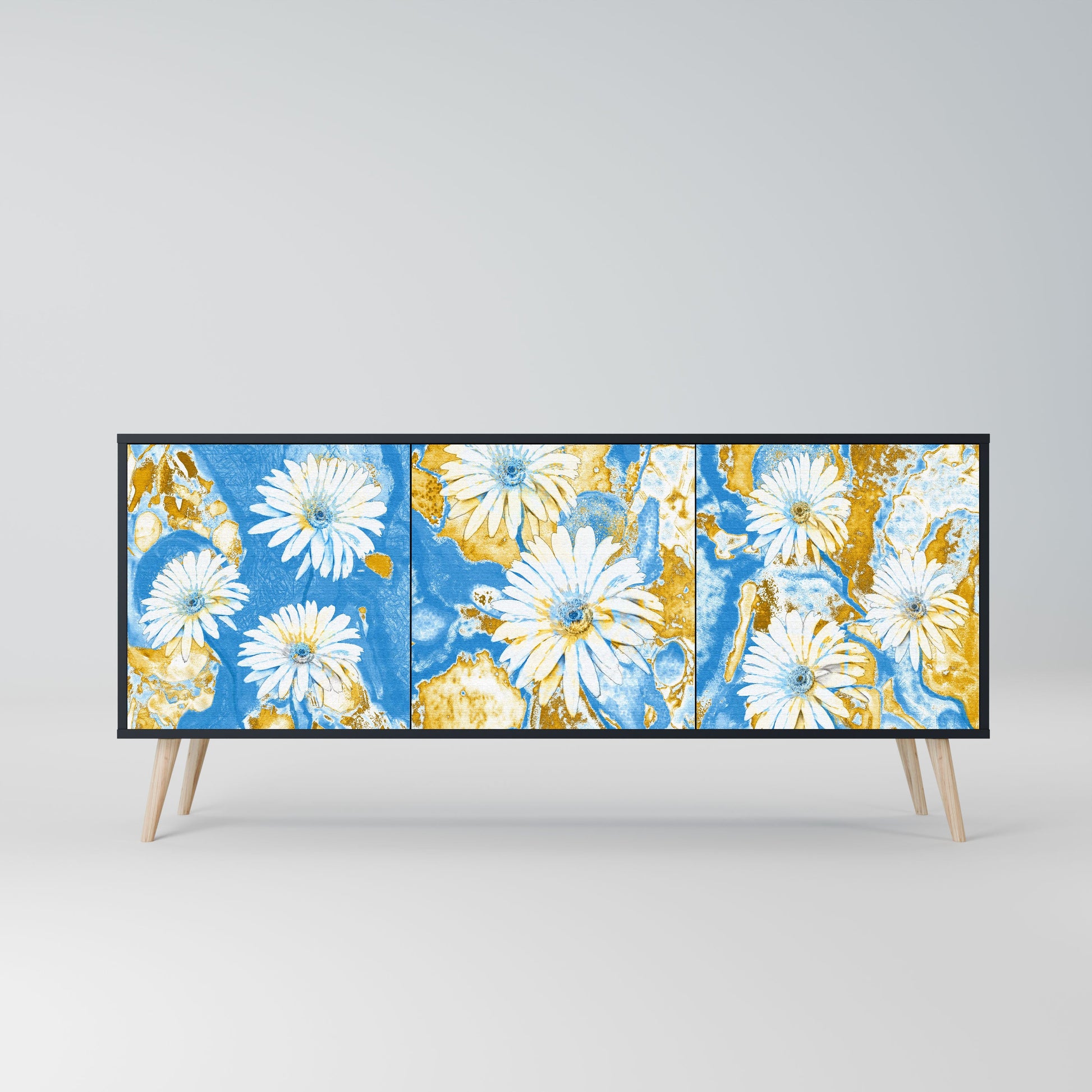 Elegance and functionality in a single piece of furniture – our 3-Door Sideboard with a black body is the perfect solution for lovers of stylish, modern interiors. The black body emphasizes the bold character of the furniture, while the fronts with a unique print add an artistic touch. It fits perfectly in the living room, bedroom, or office, complementing both modern and industrial arrangements.