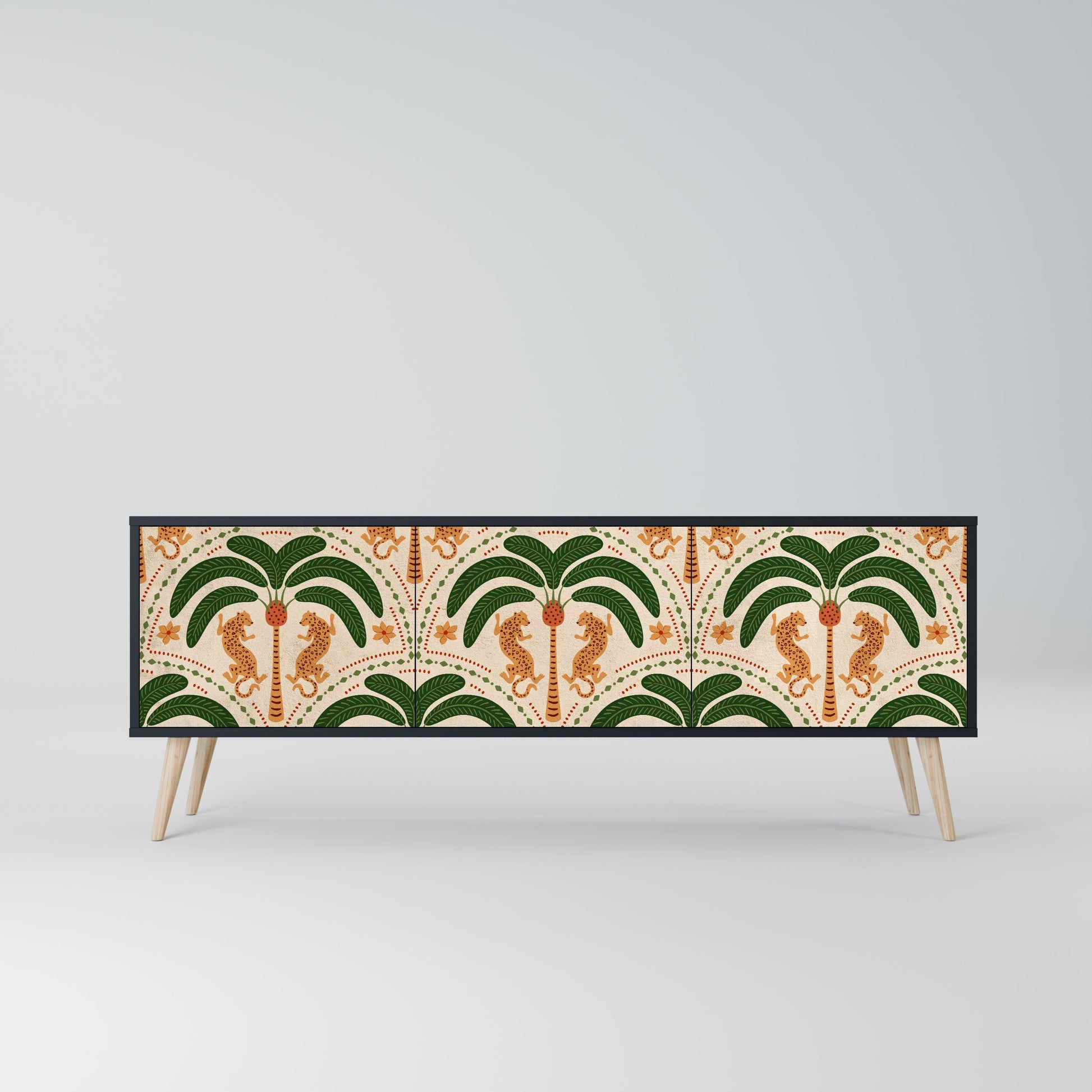 DANCING PREDATORS 3-Door TV Stand in Black Finish
