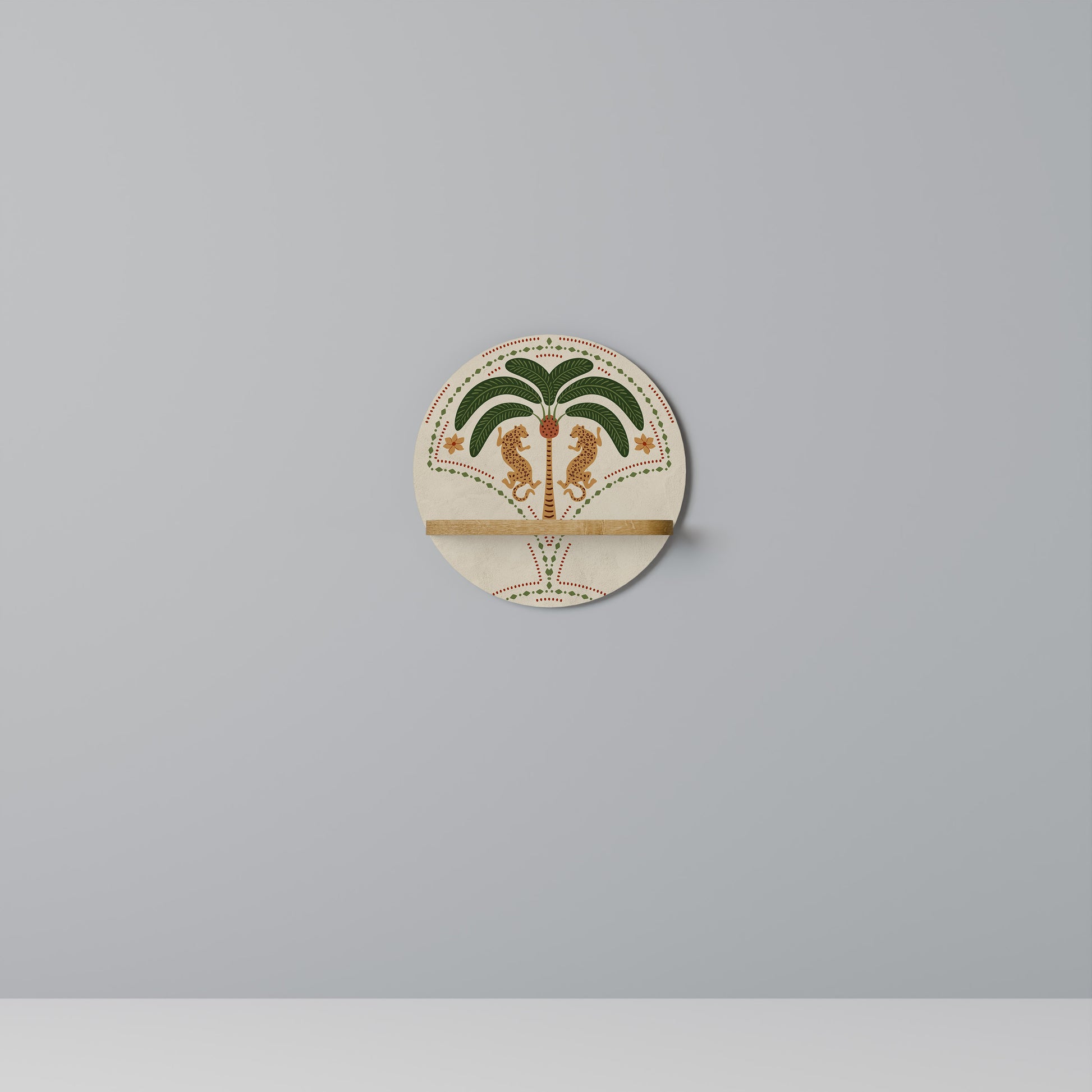 DANCING PREDATORS Round Art Shelf In Oak Effect