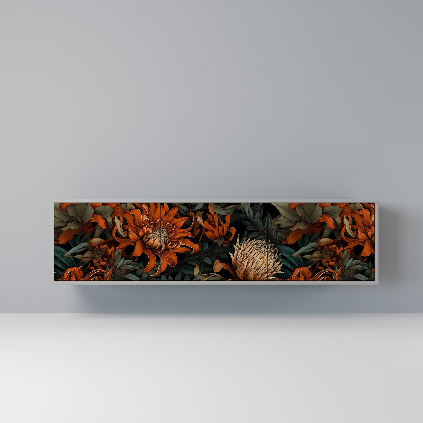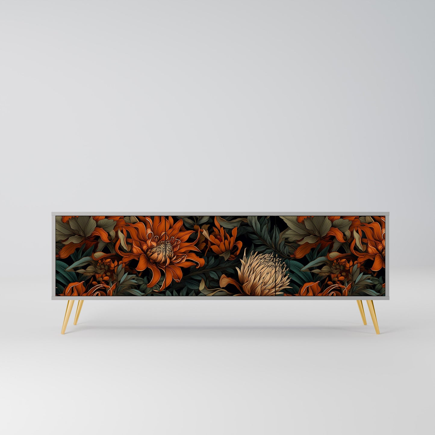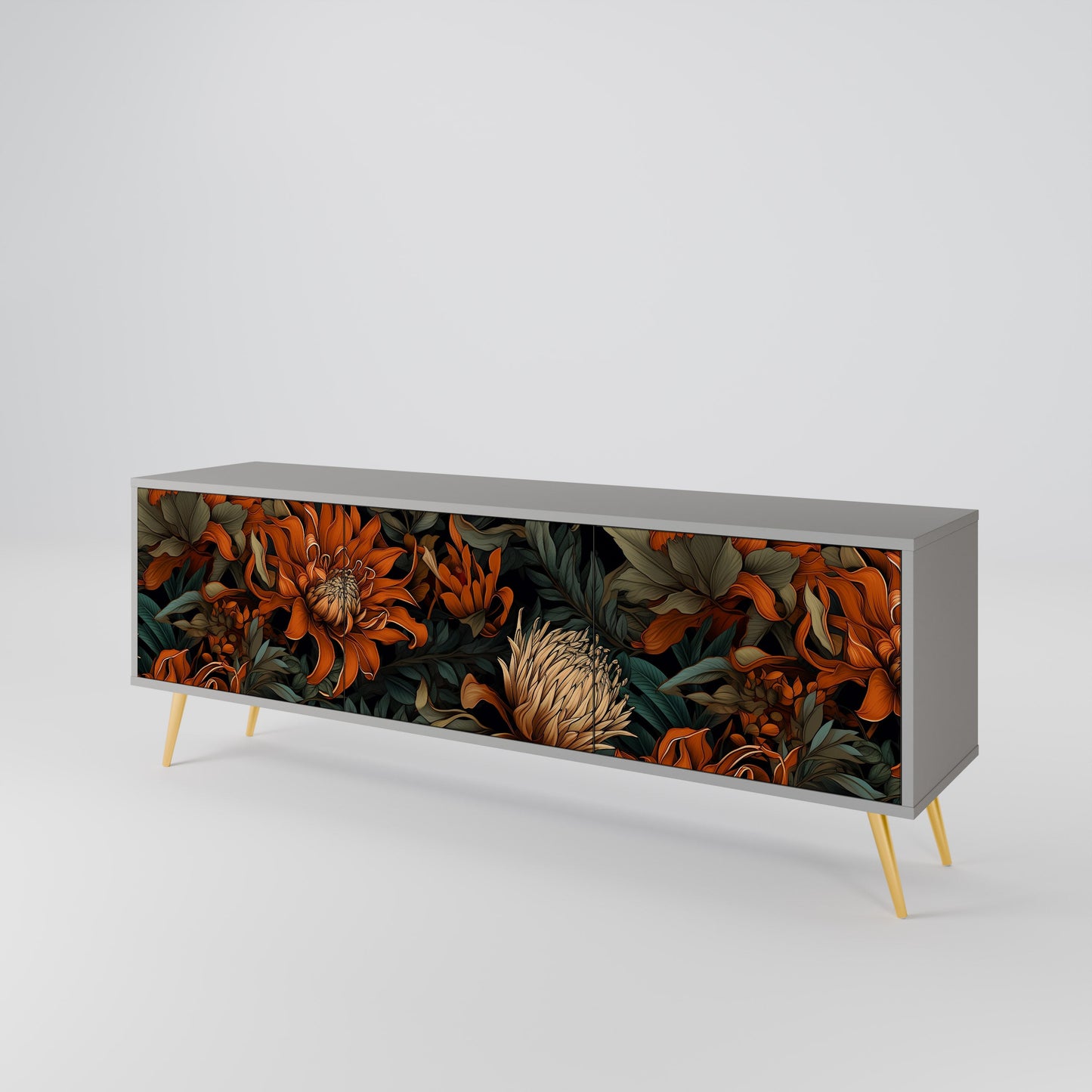 The grey body of the stand creates a refined, modern accent that pairs beautifully with industrial and minimalist arrangements. The fronts with a designer print add character and uniqueness, making this piece not only practical but also a standout decorative element.