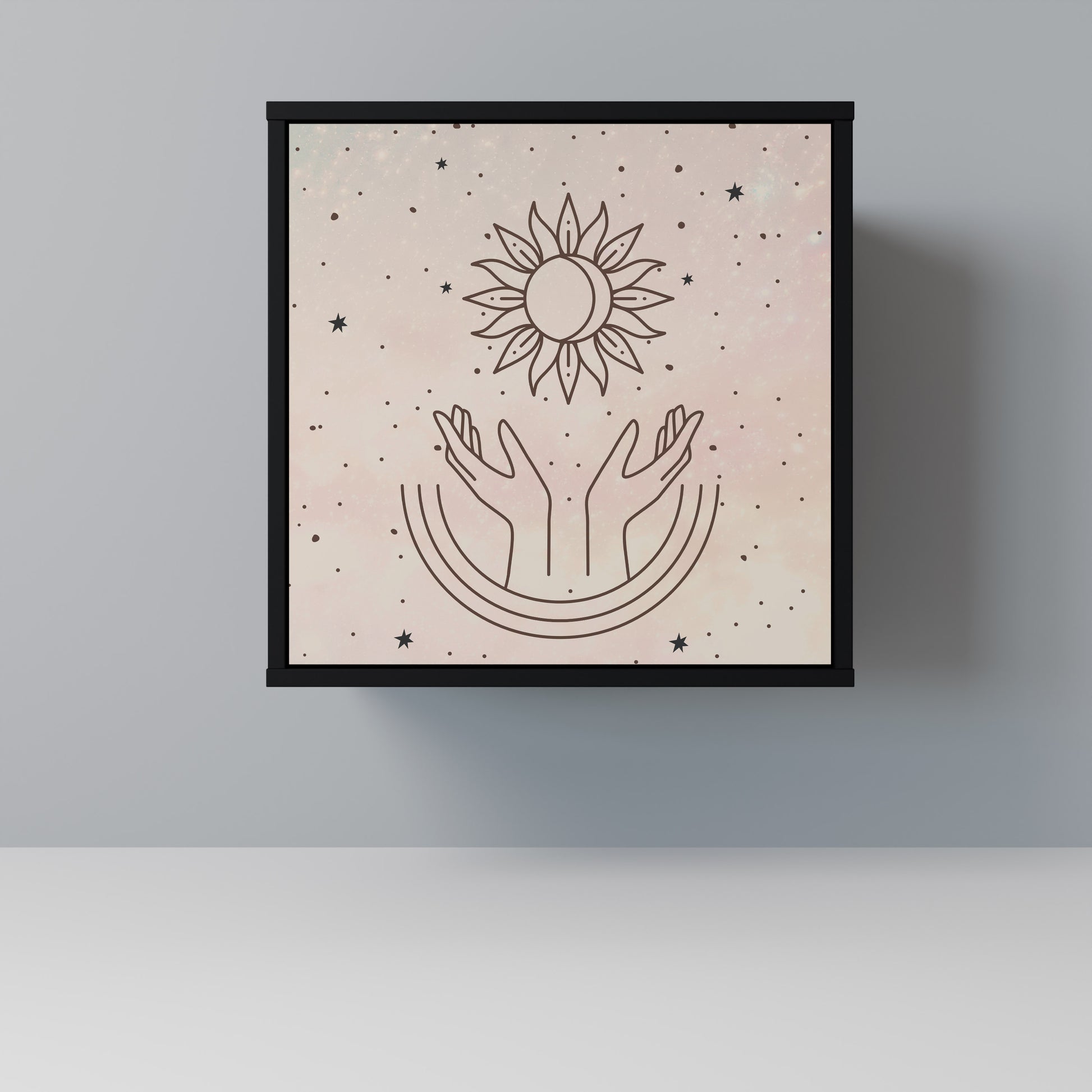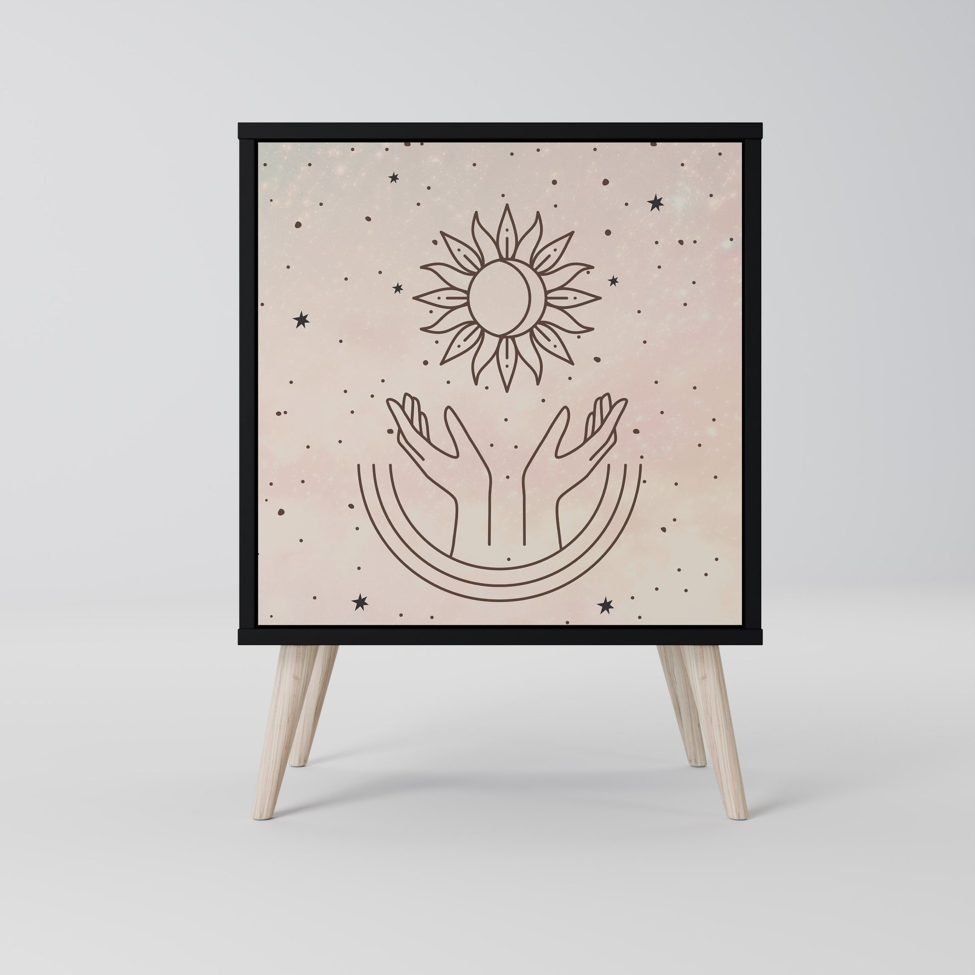 This compact yet remarkably elegant piece of furniture impresses with its minimalist design, perfectly fitting into both modern and classic interiors. The black body emphasizes the furniture’s bold character, while the fronts with a unique print add an artistic touch.