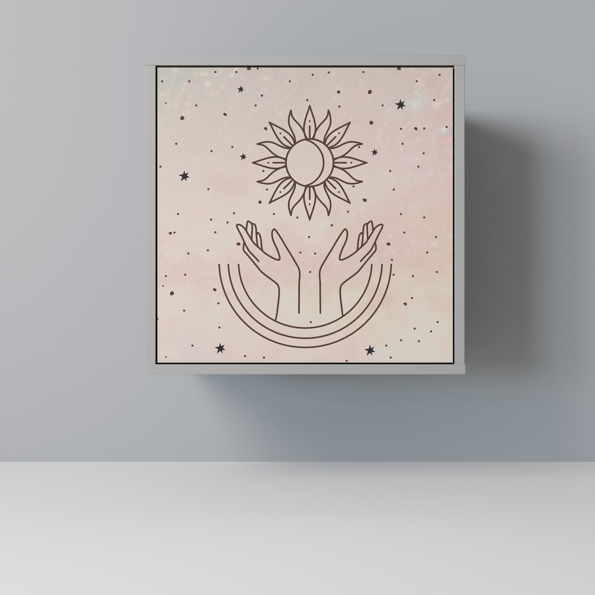 This compact yet remarkably elegant piece of furniture impresses with its minimalist design, perfectly fitting into both modern and classic interiors. The subdued grey color of the body gives the furniture a subtle yet distinctive character, while the fronts with a unique print add an artistic touch.