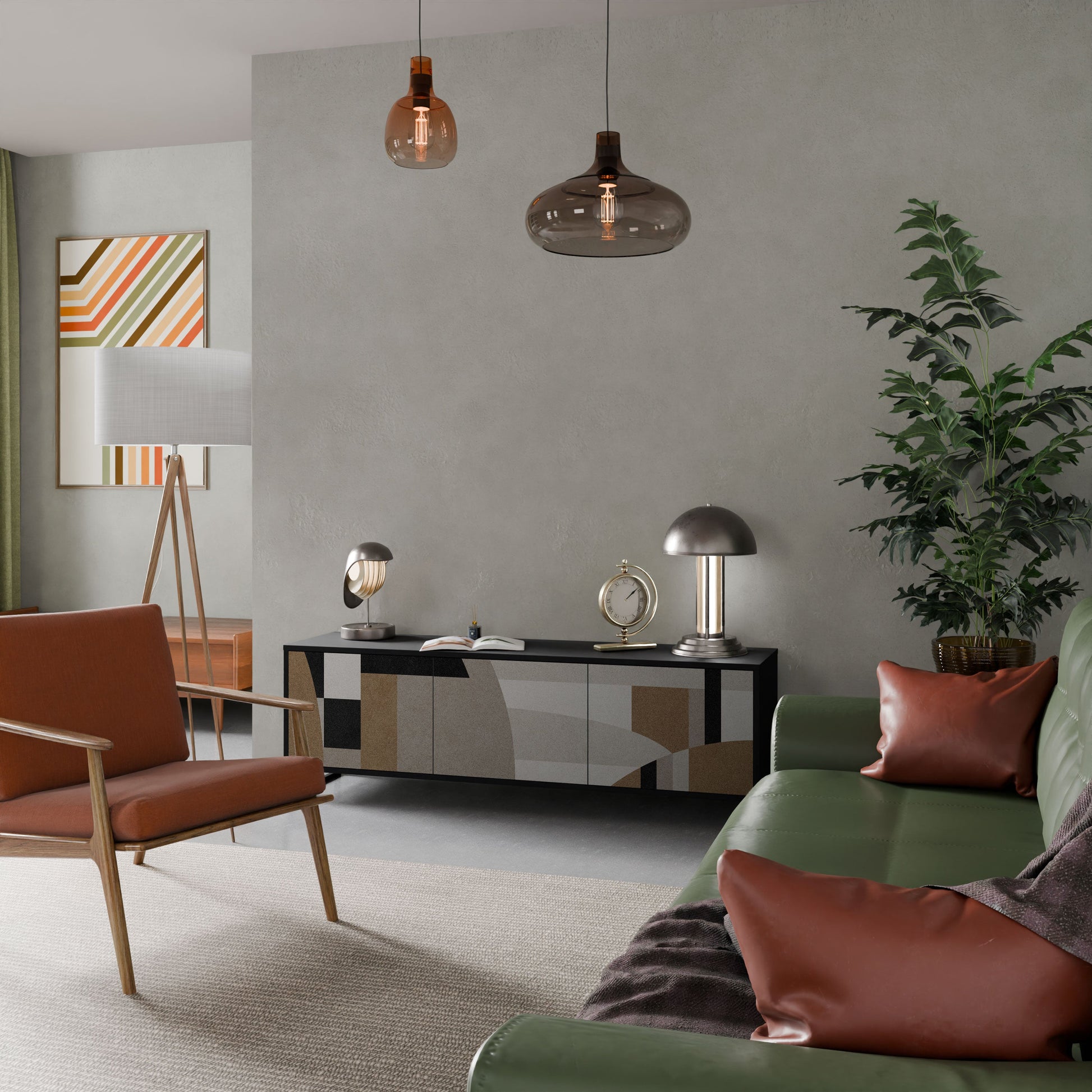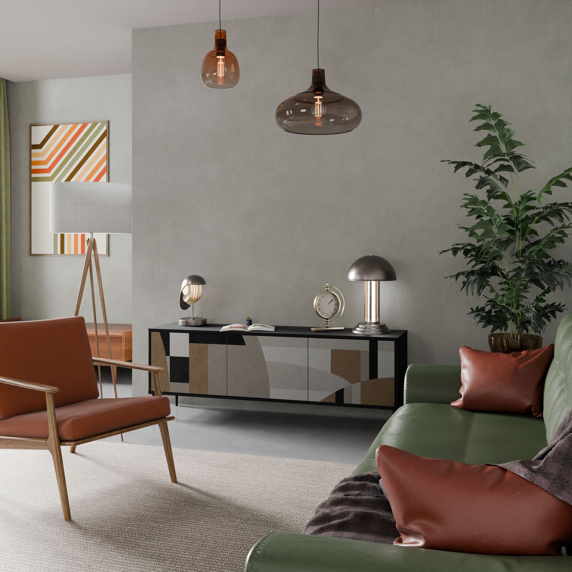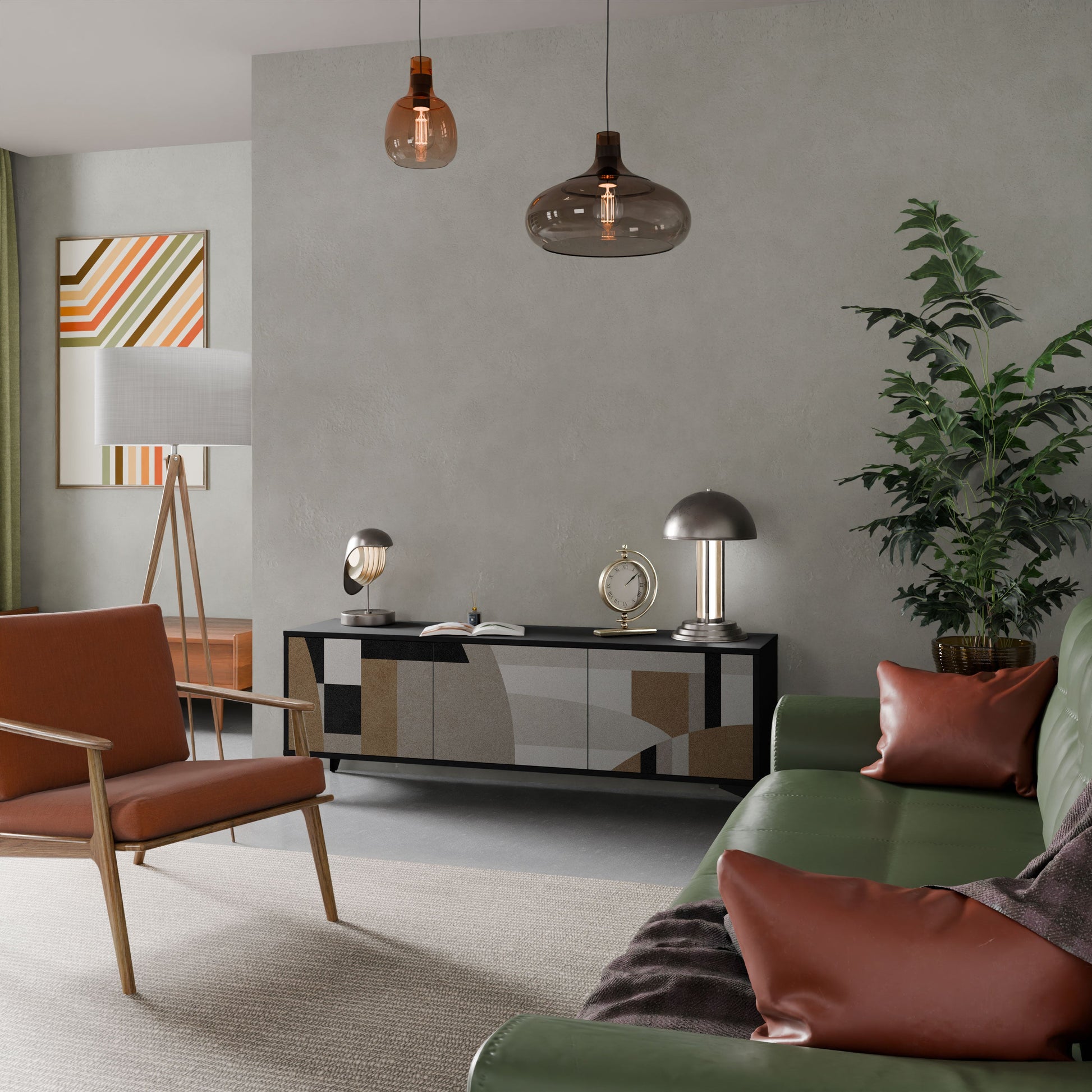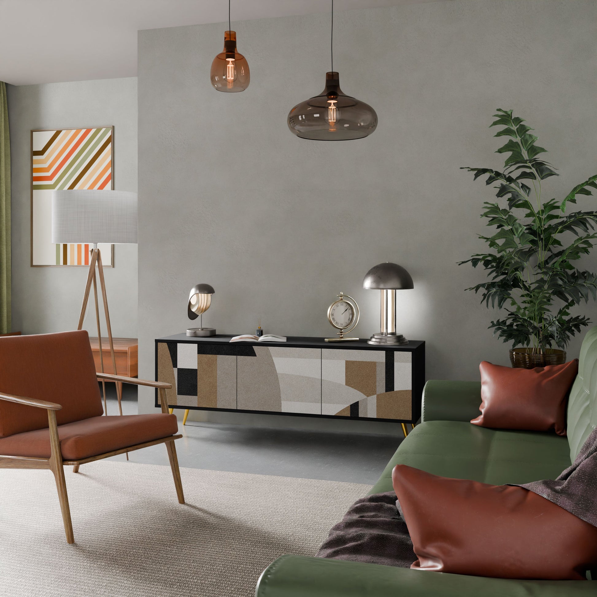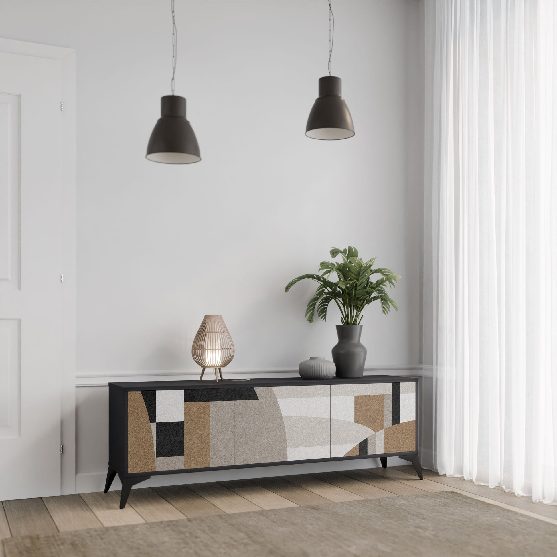 The black body of the stand creates a bold, modern accent that pairs beautifully with industrial and minimalist arrangements. The fronts with a designer print add character and uniqueness, making this piece not only practical but also a standout decorative element.