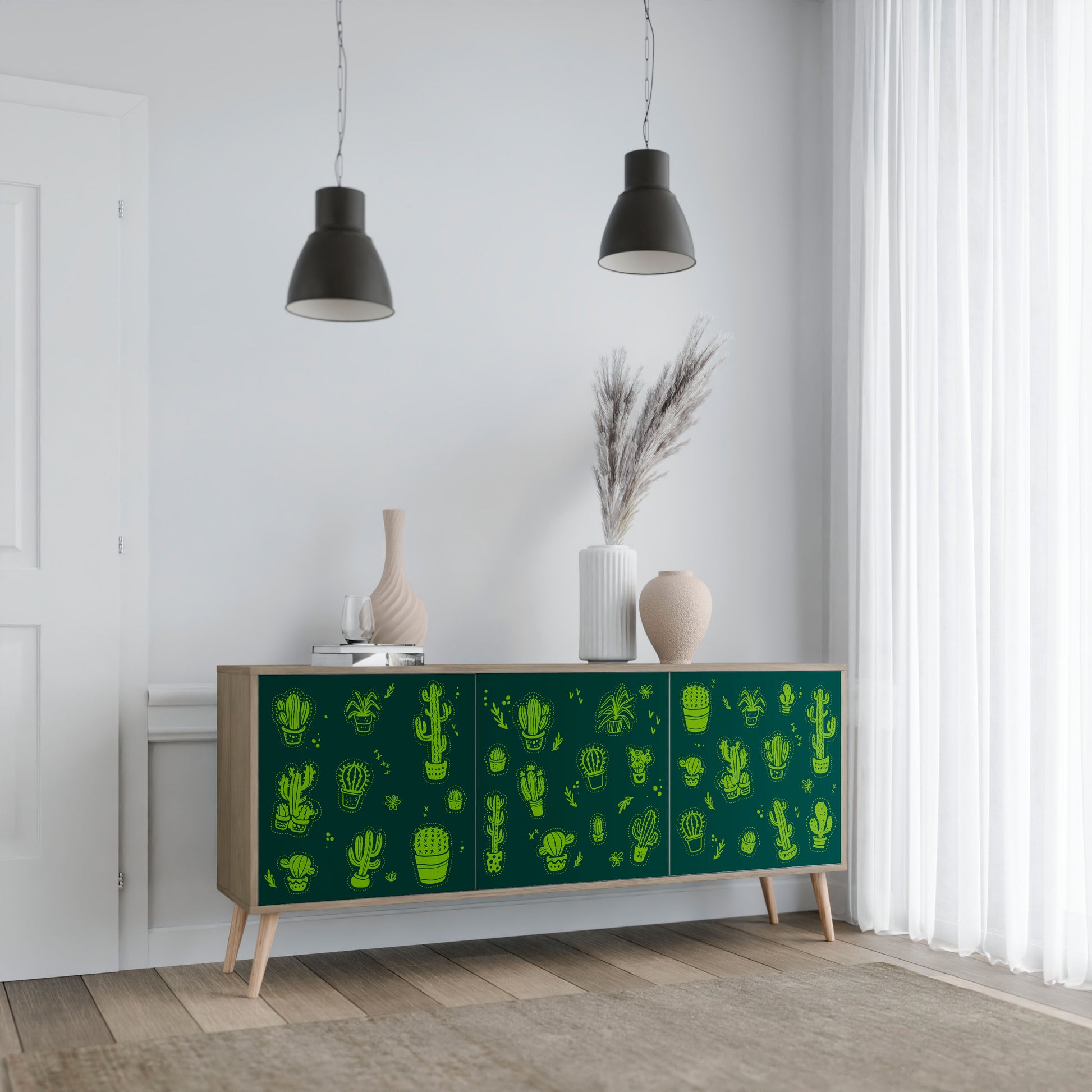 DESERT GREEN 3-Door Sideboard in Oak Effect