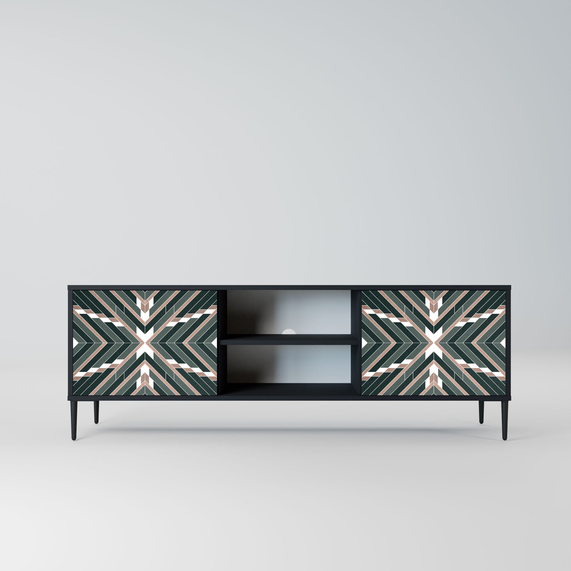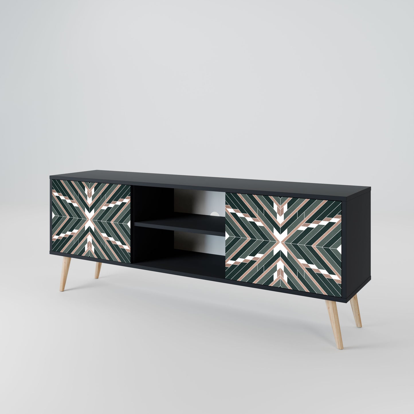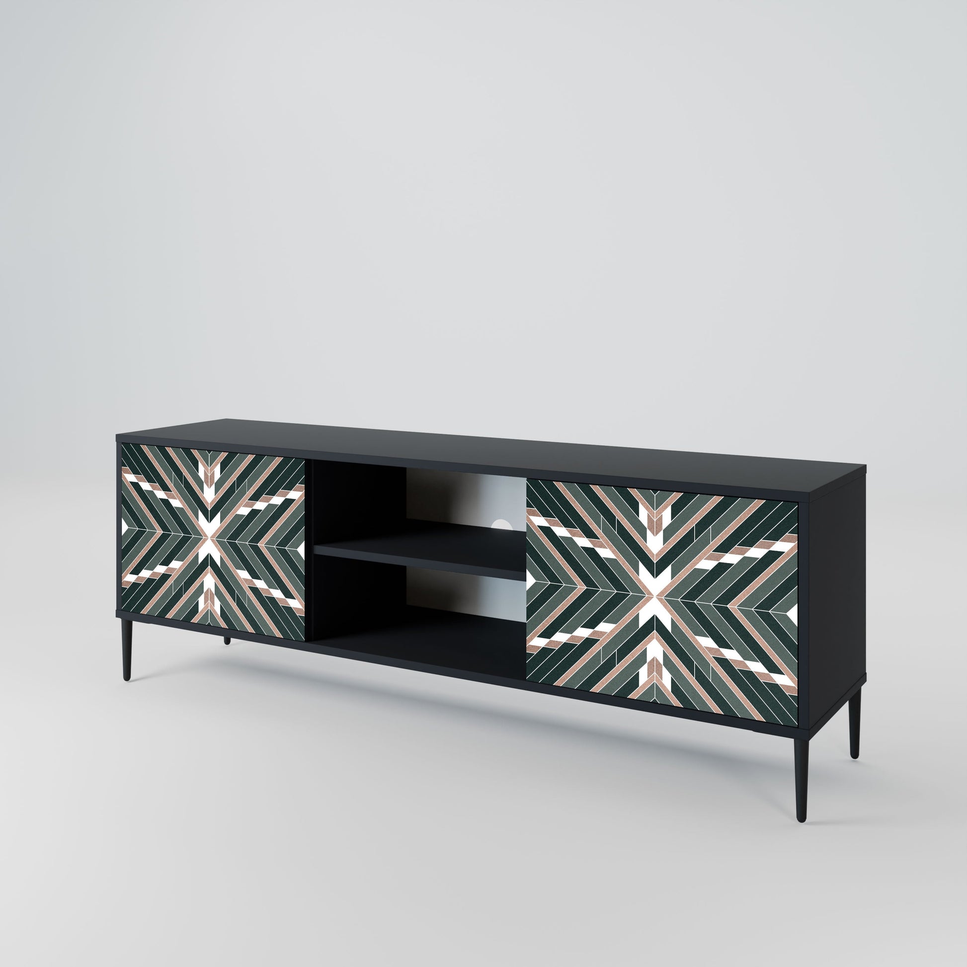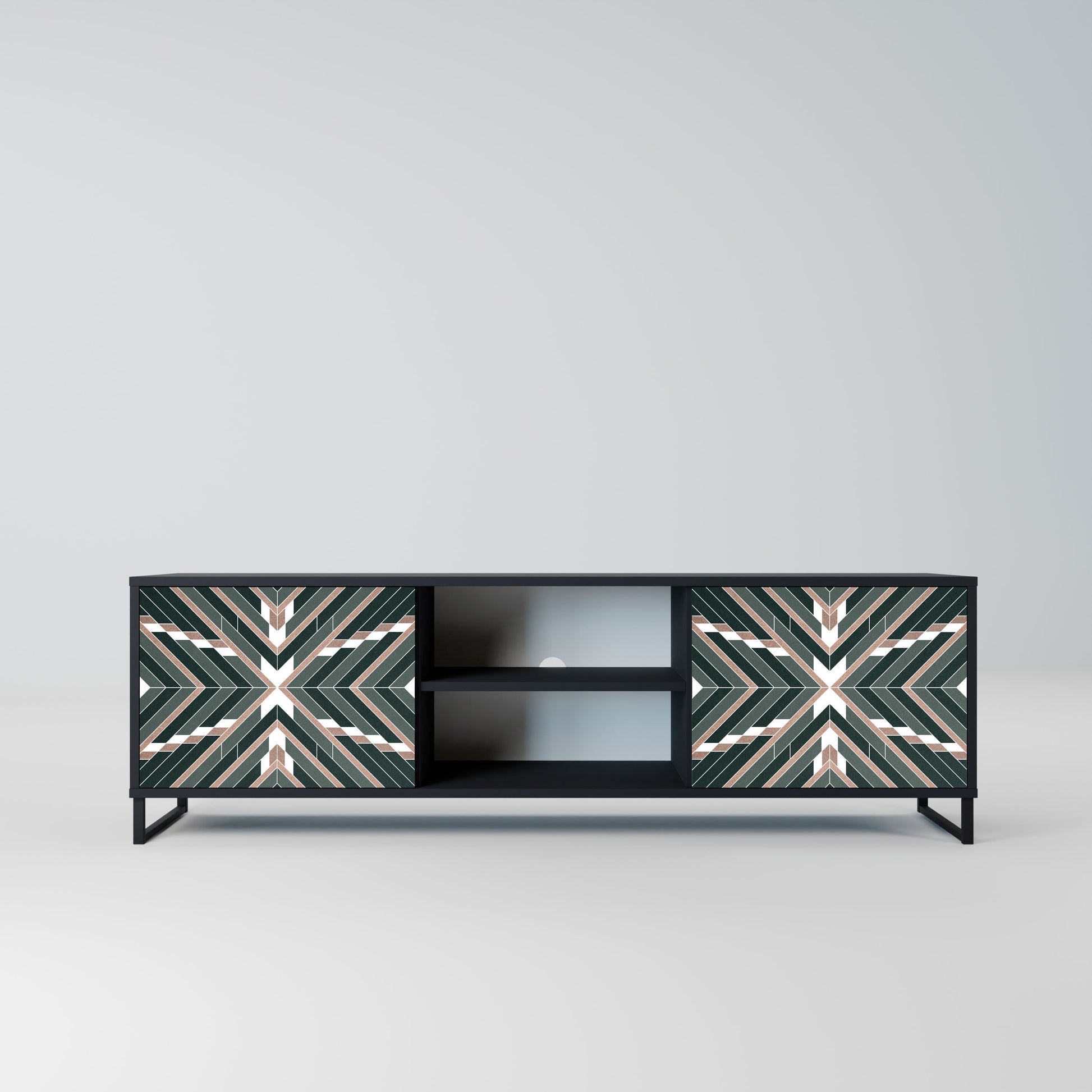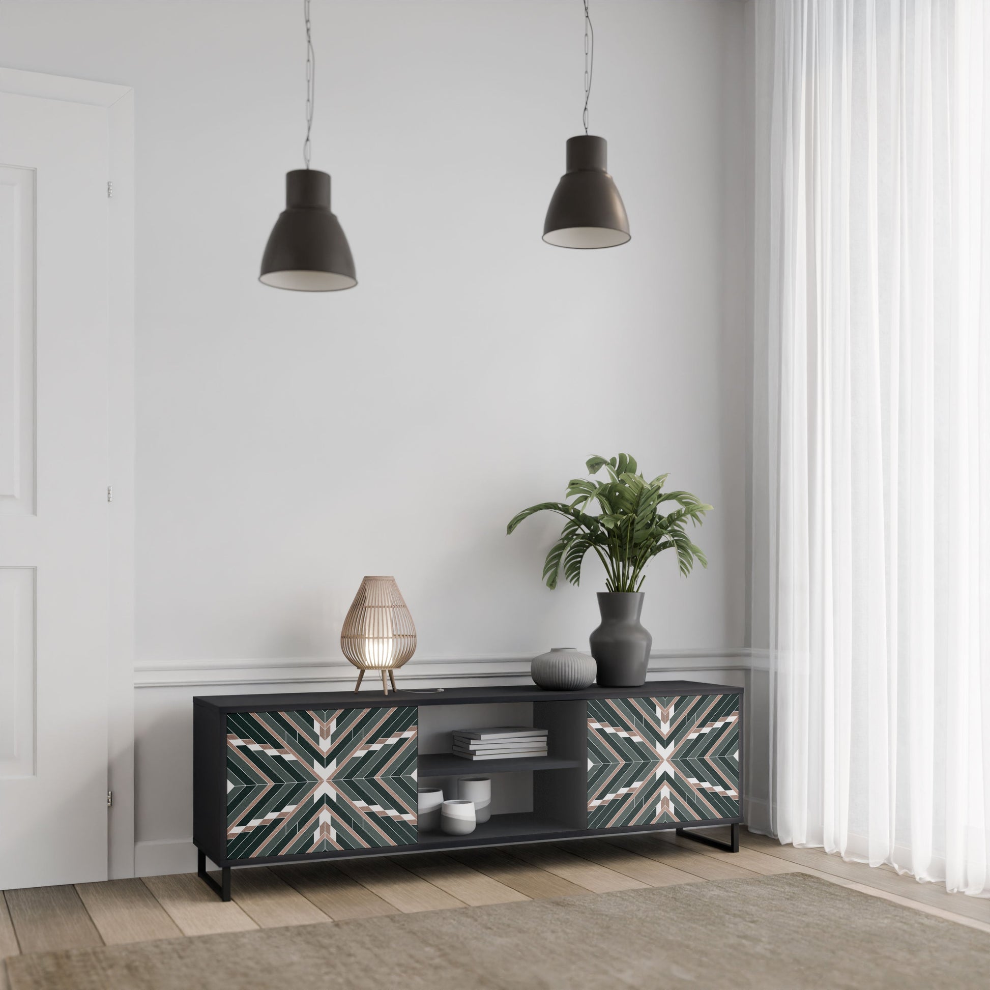 The black body gives the TV stand an elegant, modern look, while the fronts with an exceptional print draw attention, making it the focal point of any room. The spacious interior provides room for electronic devices, cables, remotes, and other accessories, helping you maintain order and organization.