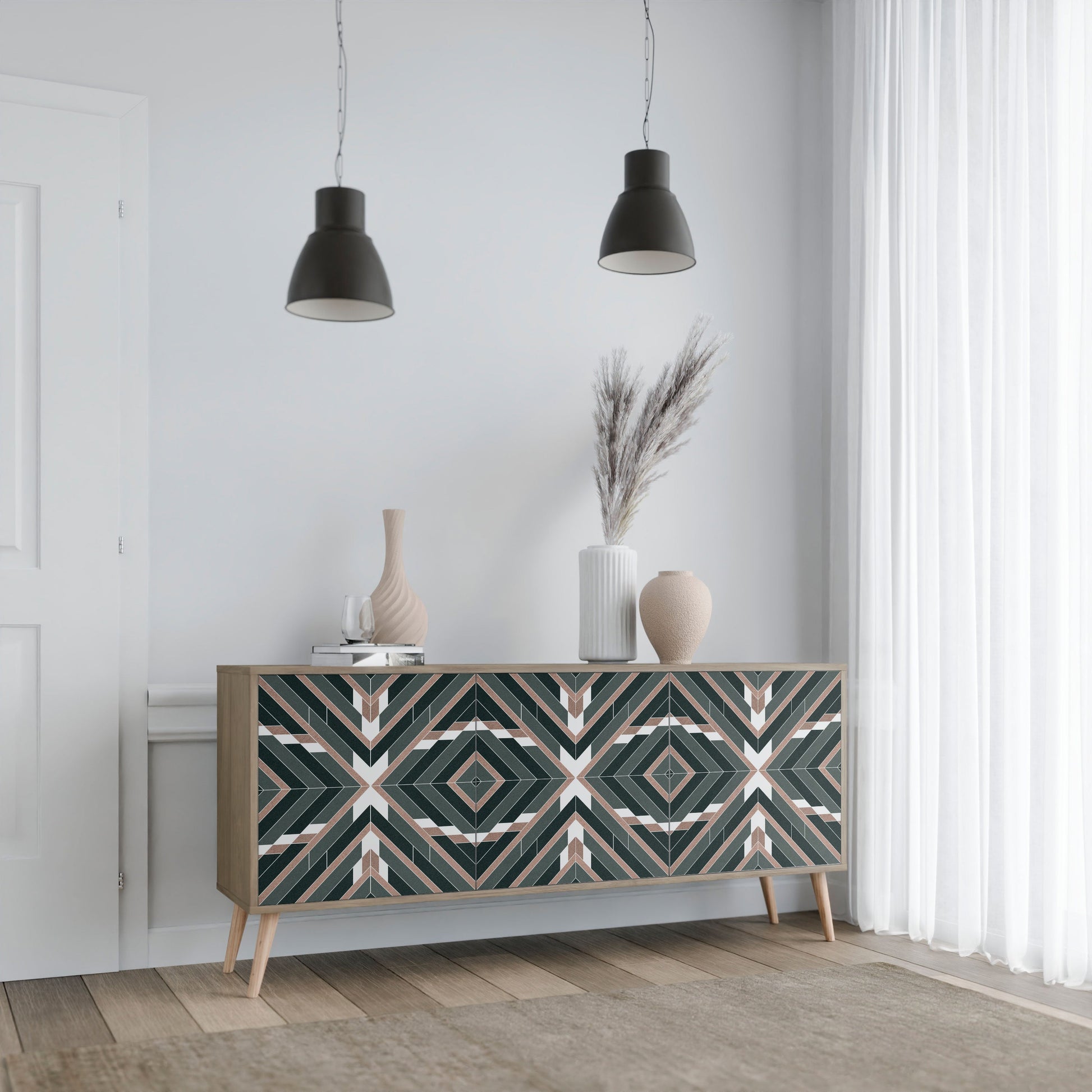 Discover the elegance and natural beauty of wood with our 3-door sideboard in oak finish. This stylish piece combines the sturdiness of a wooden body with the aesthetic detail of printed front doors, creating a cohesive and attractive design. Perfect for both the living room and bedroom, this sideboard adds a touch of class and functionality to any interior.