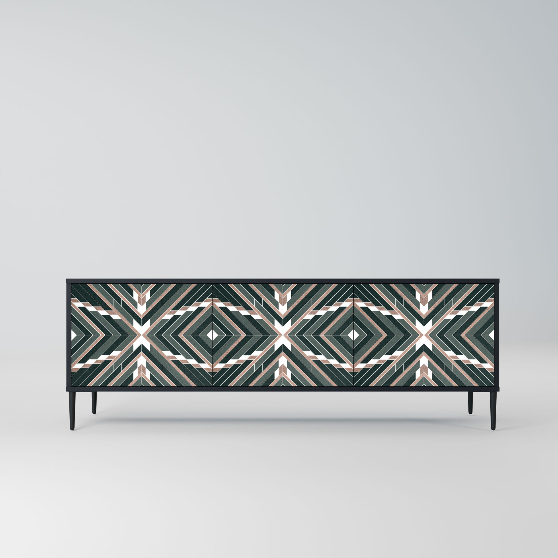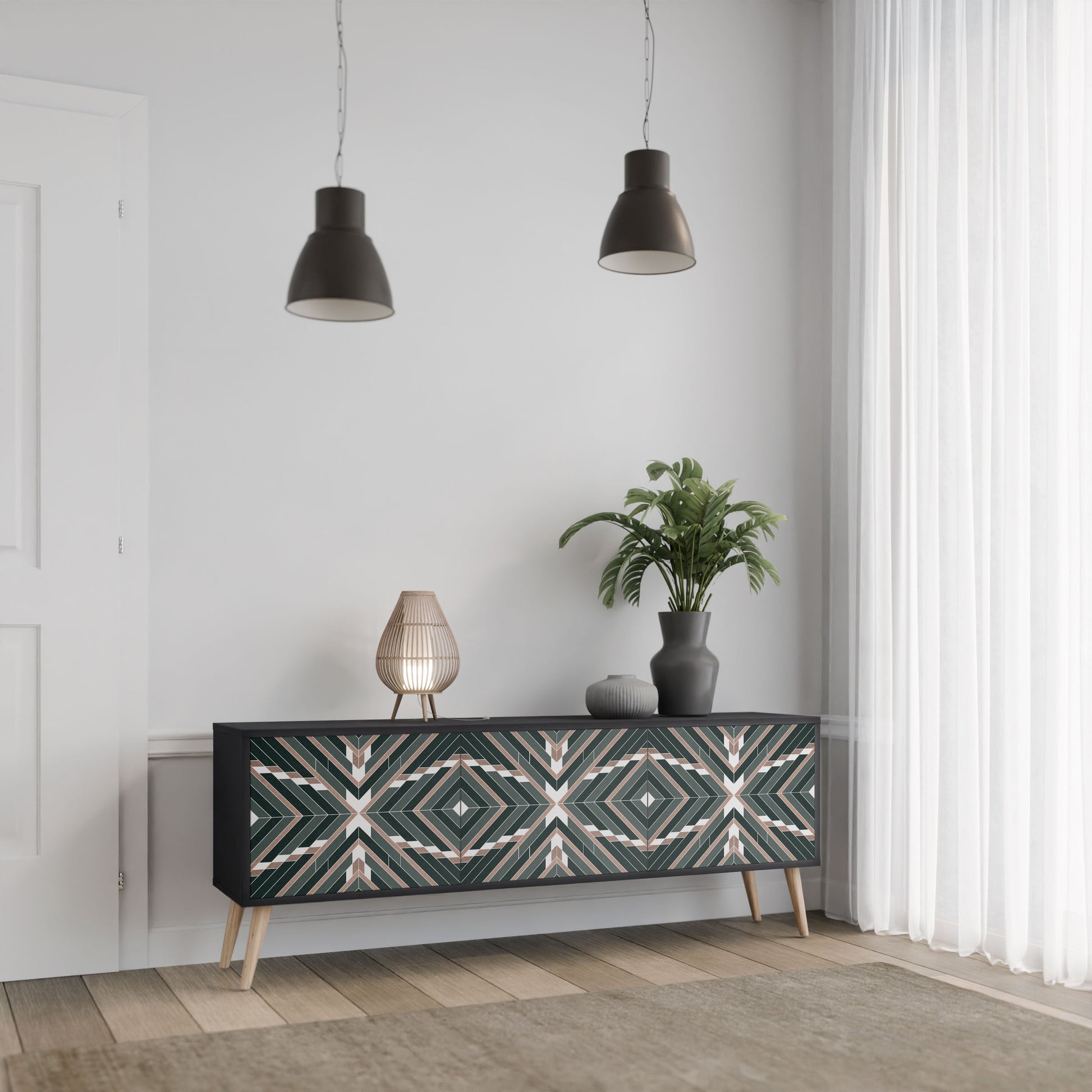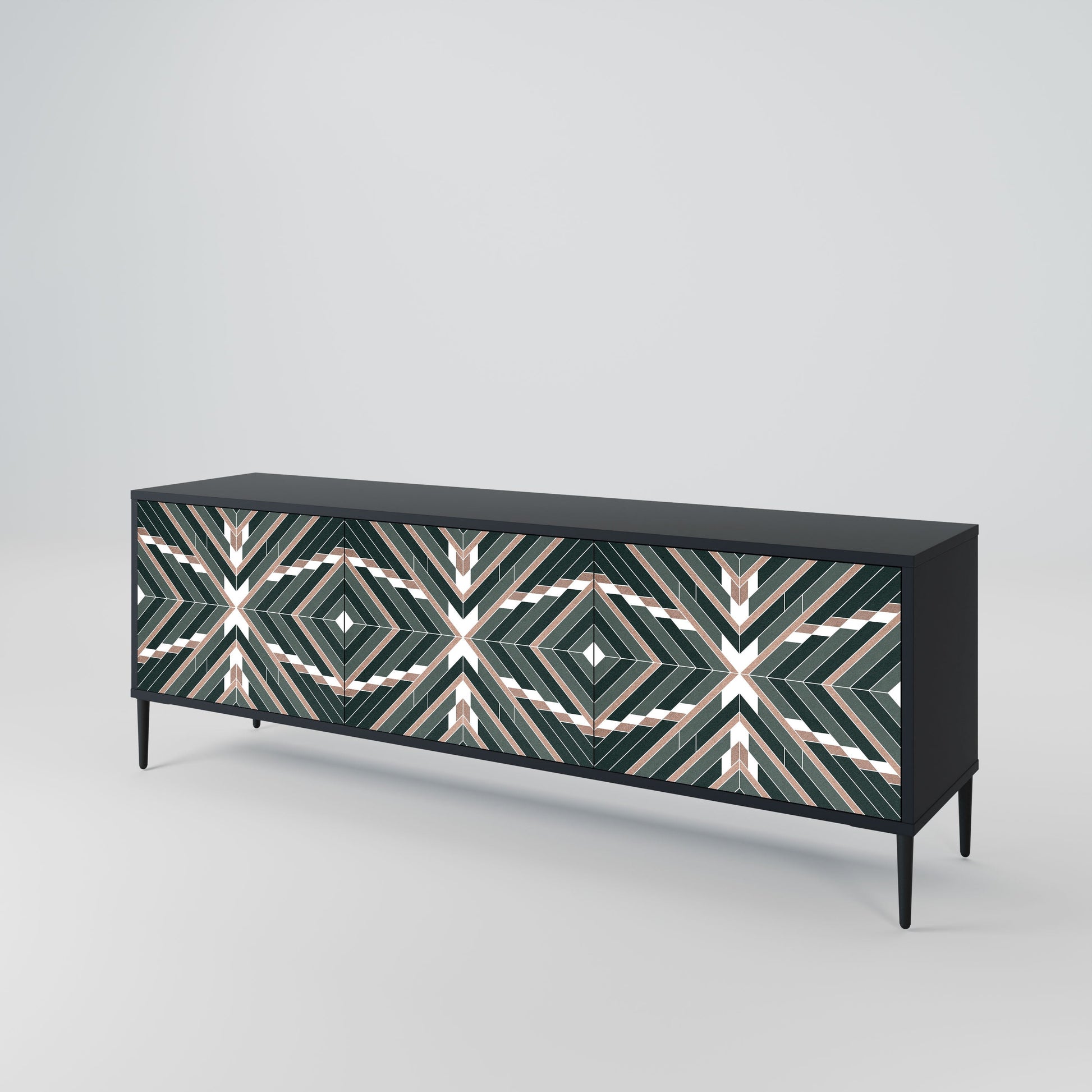 The black body of the stand creates a bold, modern accent that pairs beautifully with industrial and minimalist arrangements. The fronts with a designer print add character and uniqueness, making this piece not only practical but also a standout decorative element.